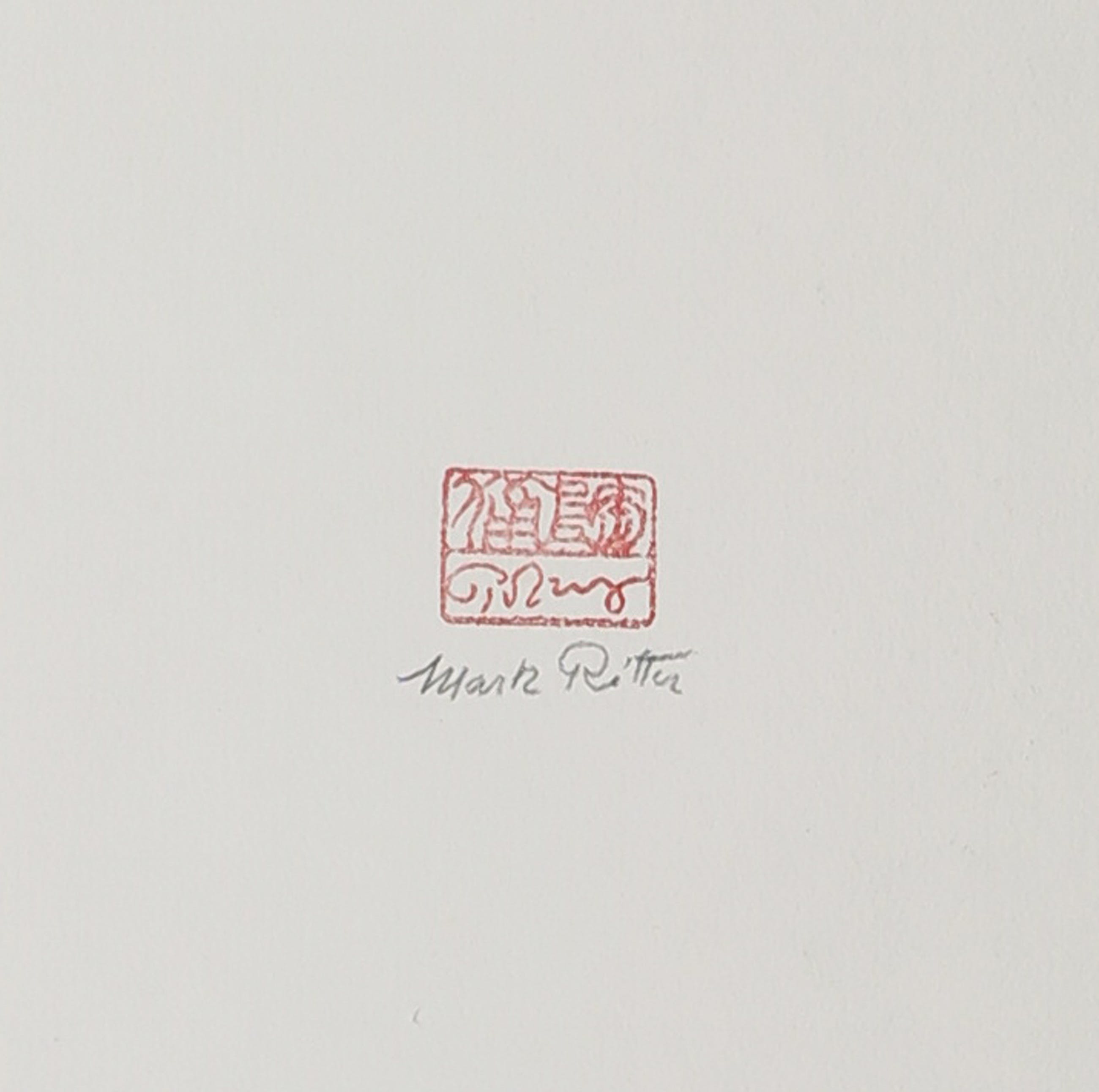 Rechtsonder voorzien van kunstenaarsstempel. Verso ook gestemd met de signatuur van de uitgeven.