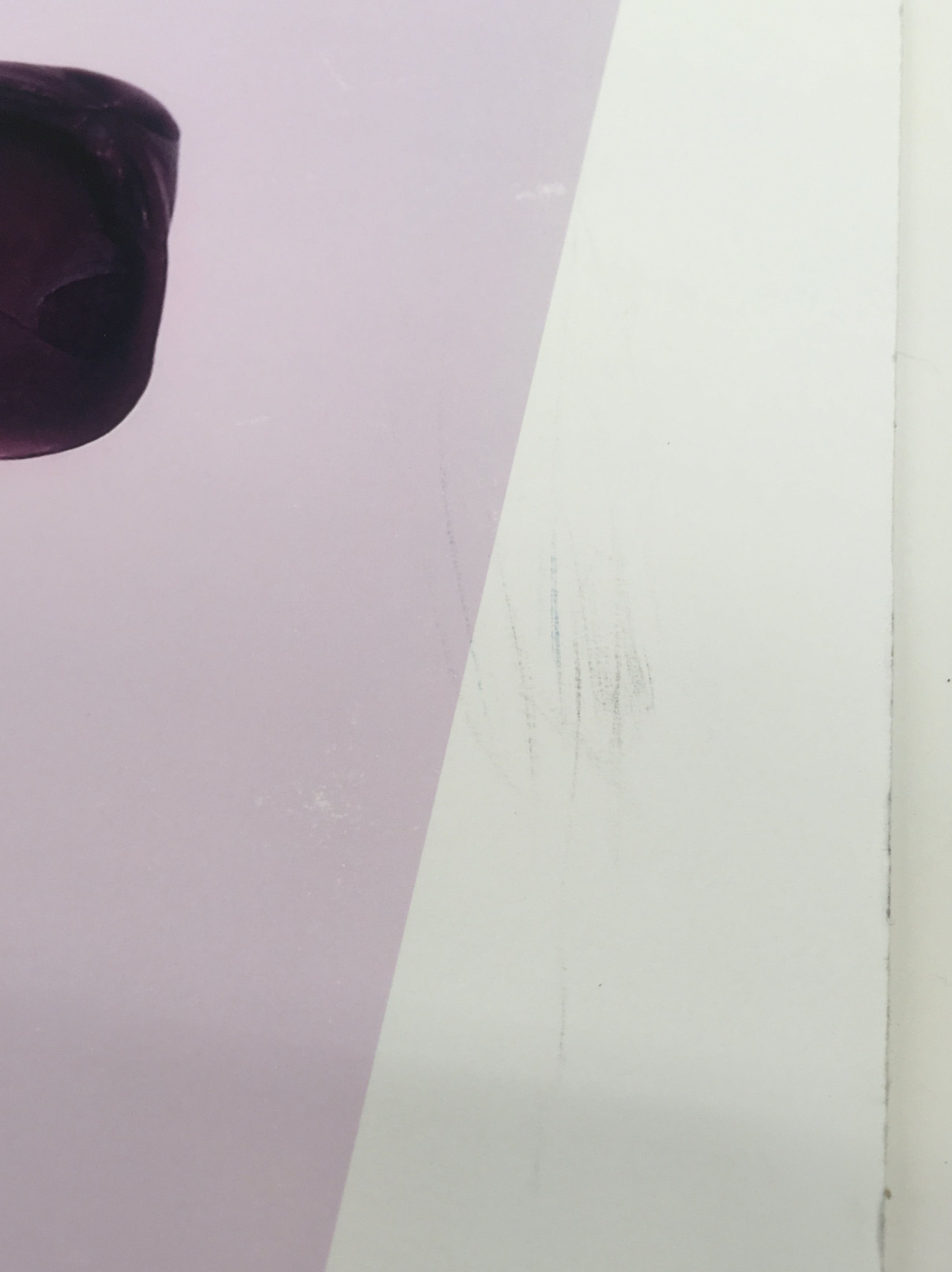 | Aantal vouwtjes in het blad, lichte krasjes in het beeld en wat vlekjes in de witrand. | |||