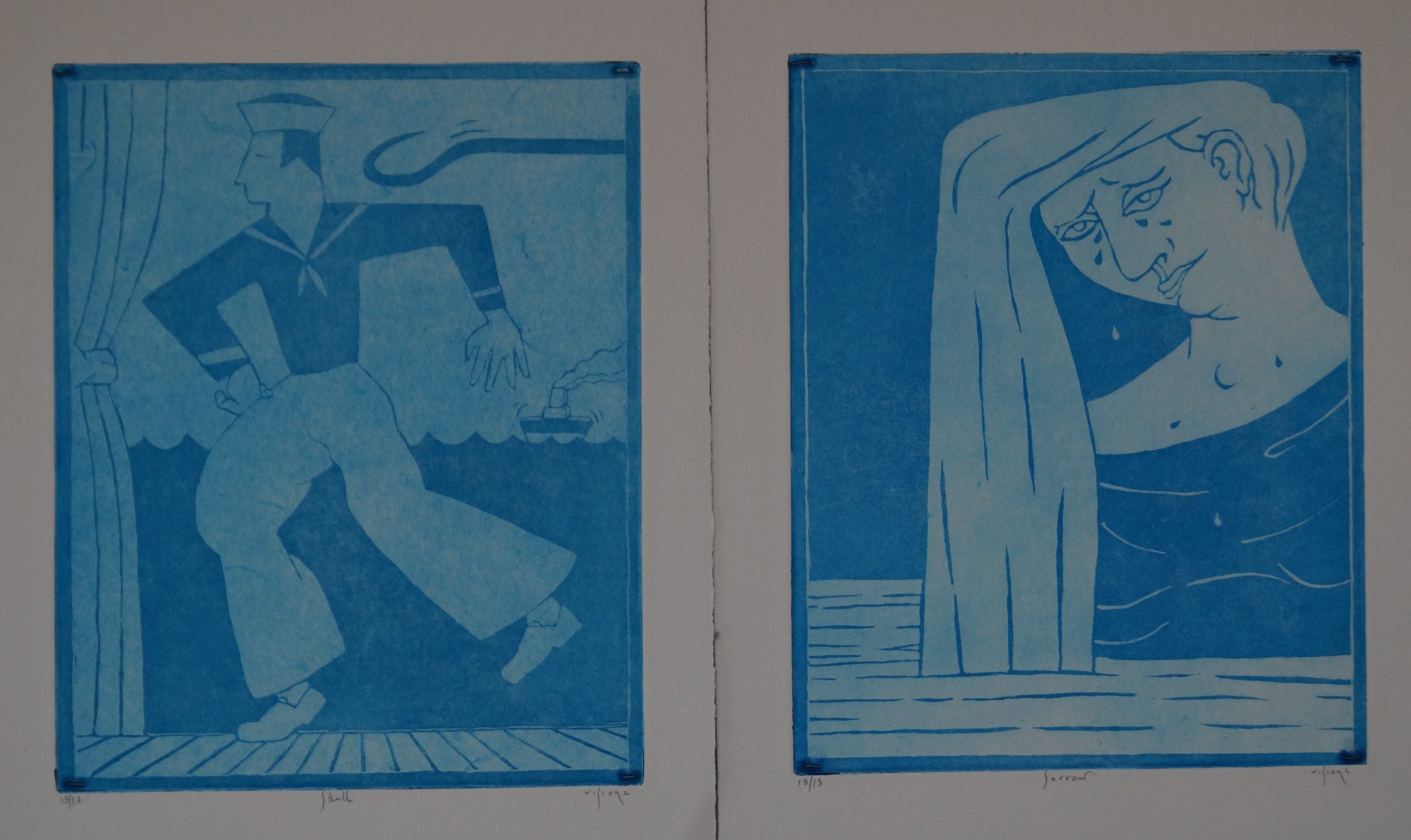 Twee gesigneerde etsen van Mark Visione Titel: Skill en Sorrow Oplage beide etsen: 13/ 13 Afmeting afbeelding: 25 x 20 cm In zeer goede conditie