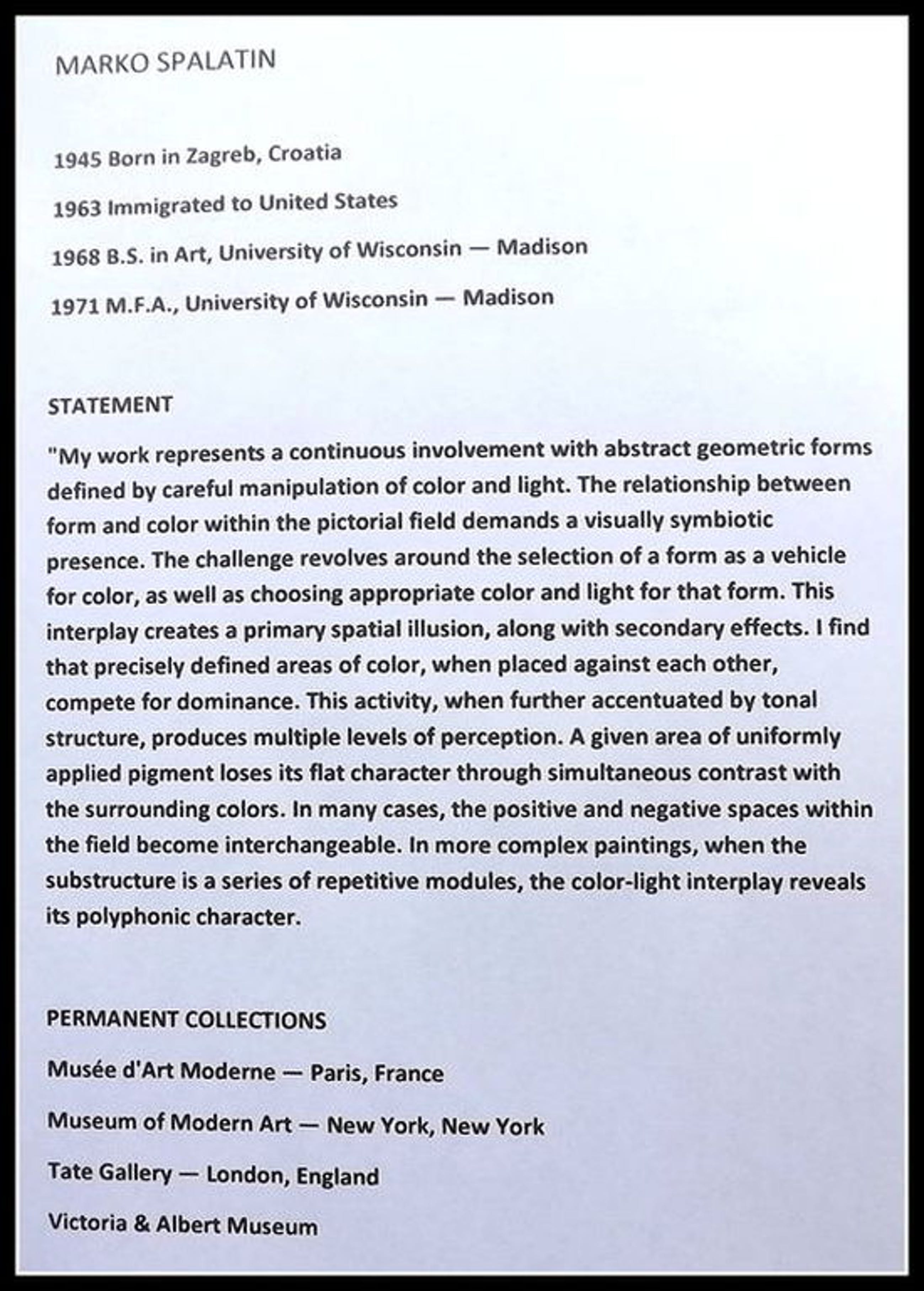 Het werk van deze veelzijdige toonaangevende kunstenaar wordt veel gevraagd (zie markospalatin.com en o.a. rogallery.com)