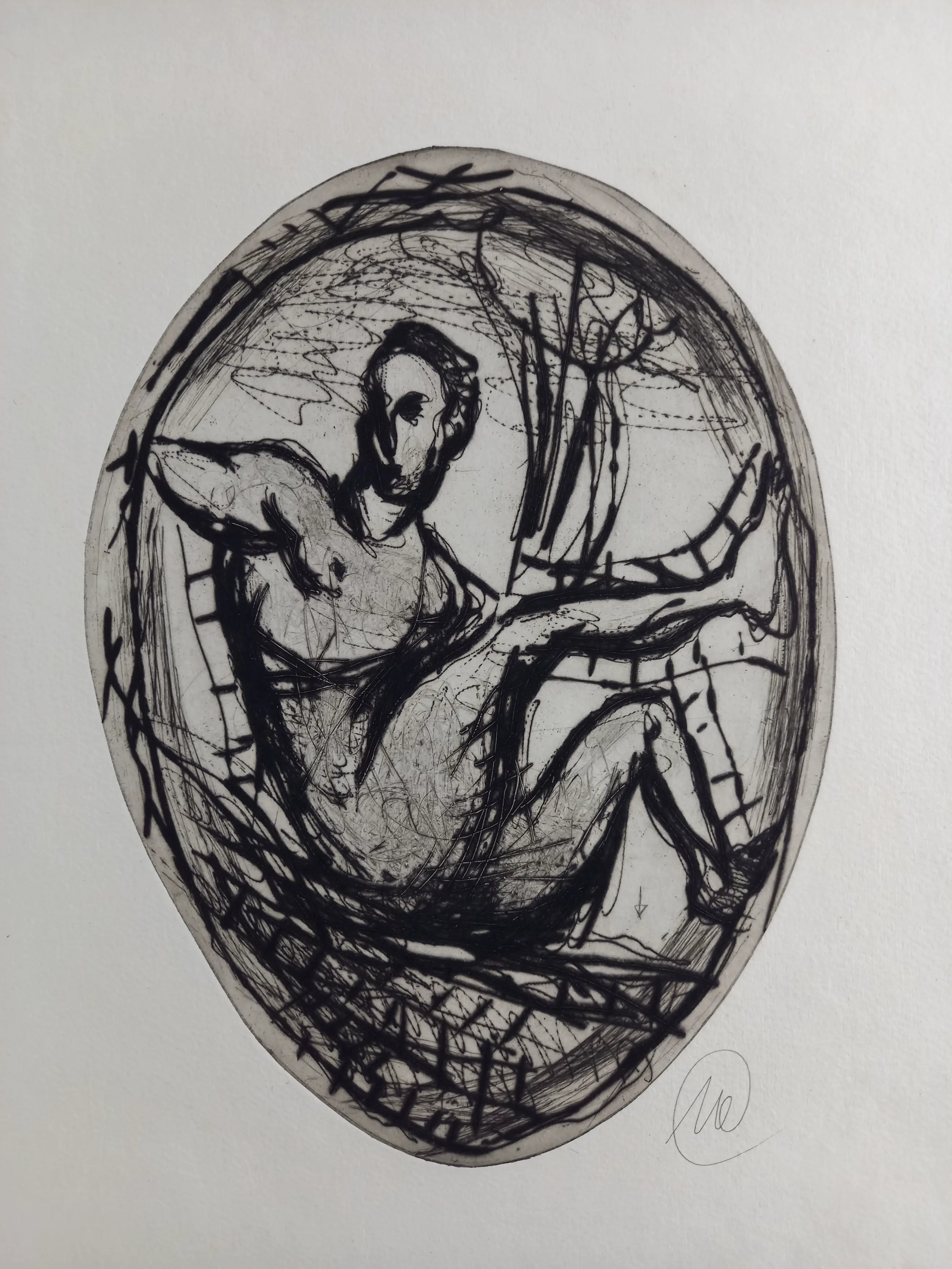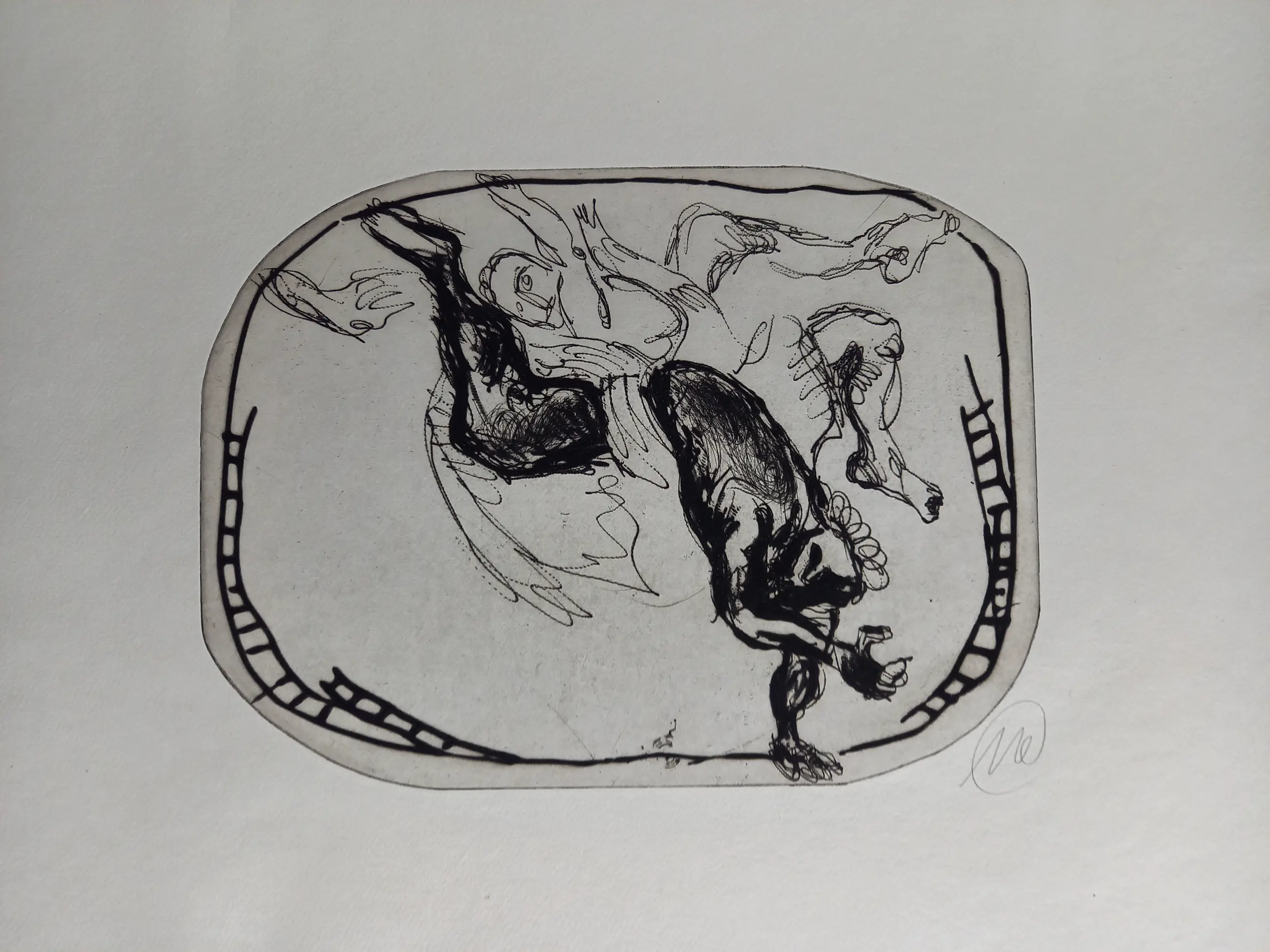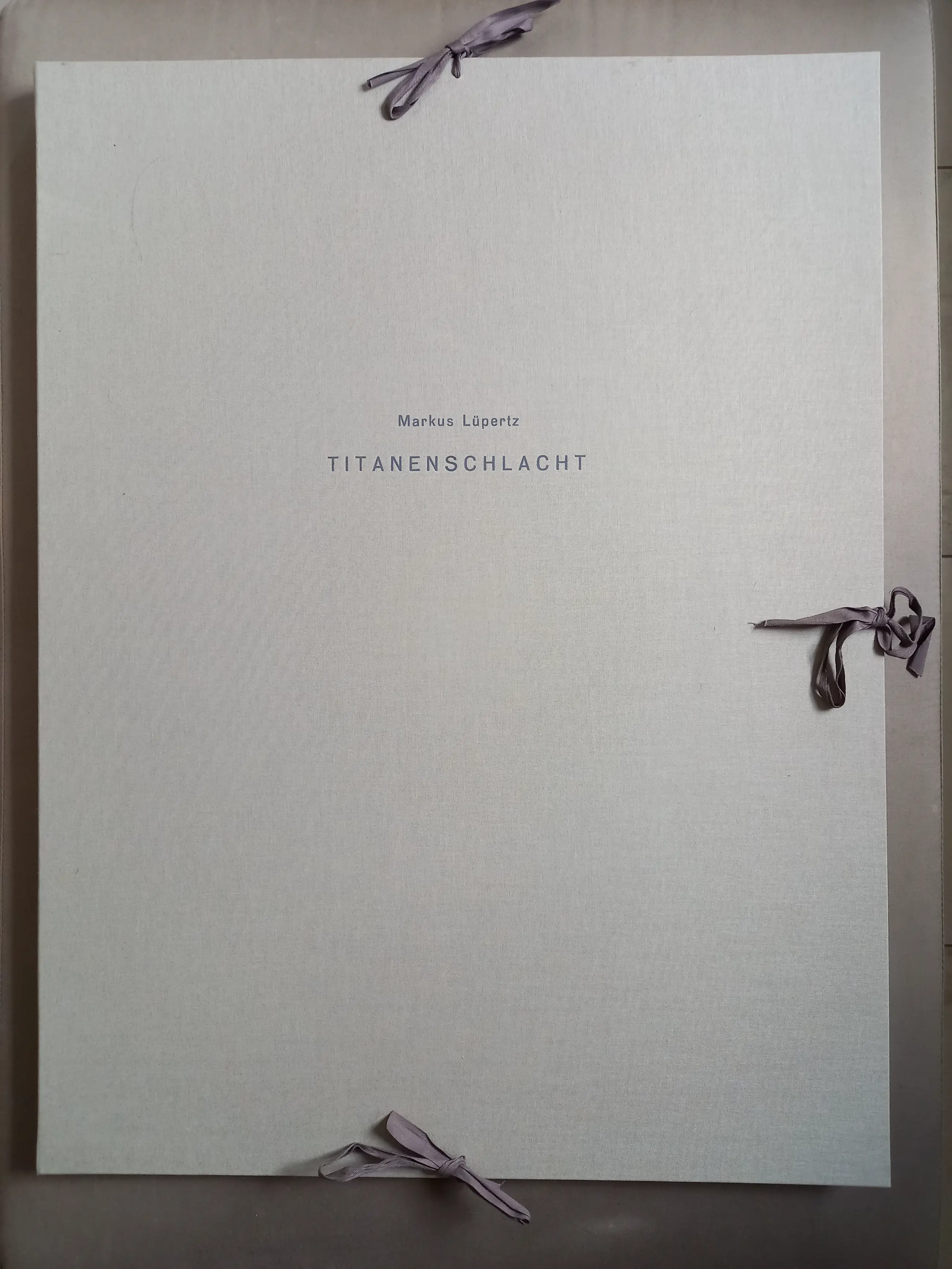 Titan Battle 2001 Portfolio met 12 zwarte droge naald etsen op handgeschept Nepalees papier elk ca. 77 x 57 cm of ca. 57 x 77 cm elk met monogram (samengevoegd) Achenbach + Costa Kunstverlag, Düsseldorf (red.) in zeer goede staat Map buiten de oplage van 10 gesigneerde exemplaren - losse bladen in de originele canvas map.
