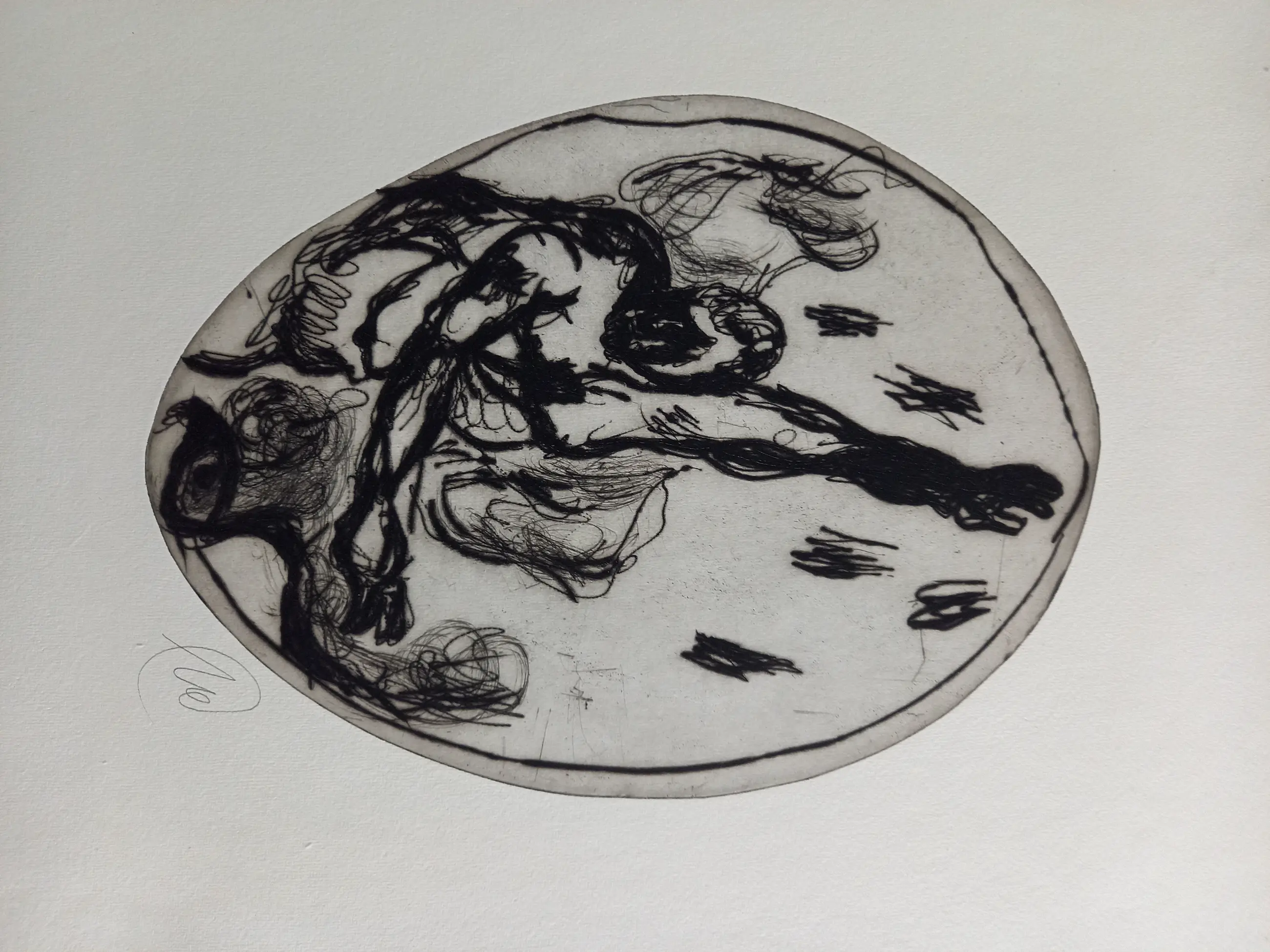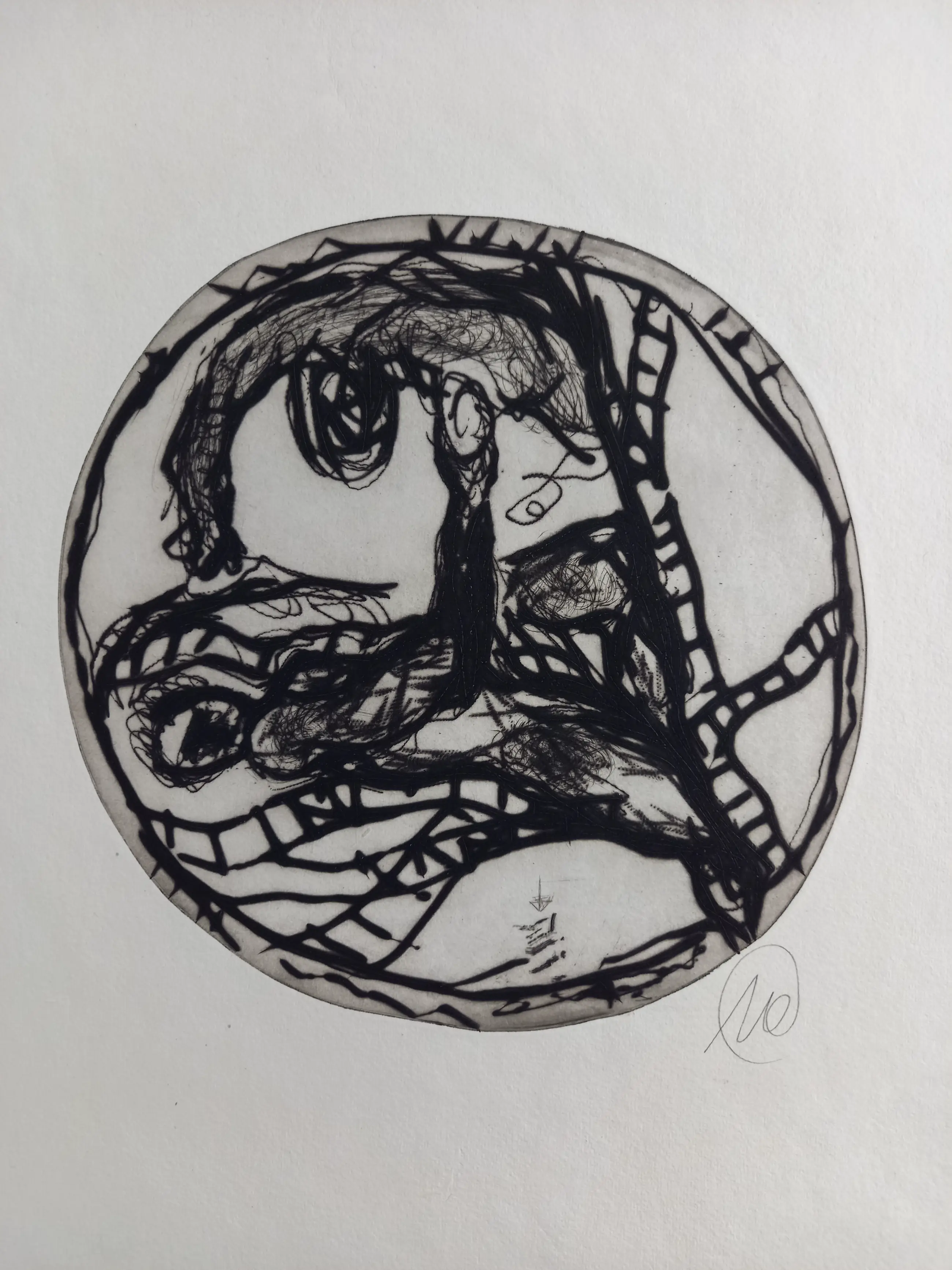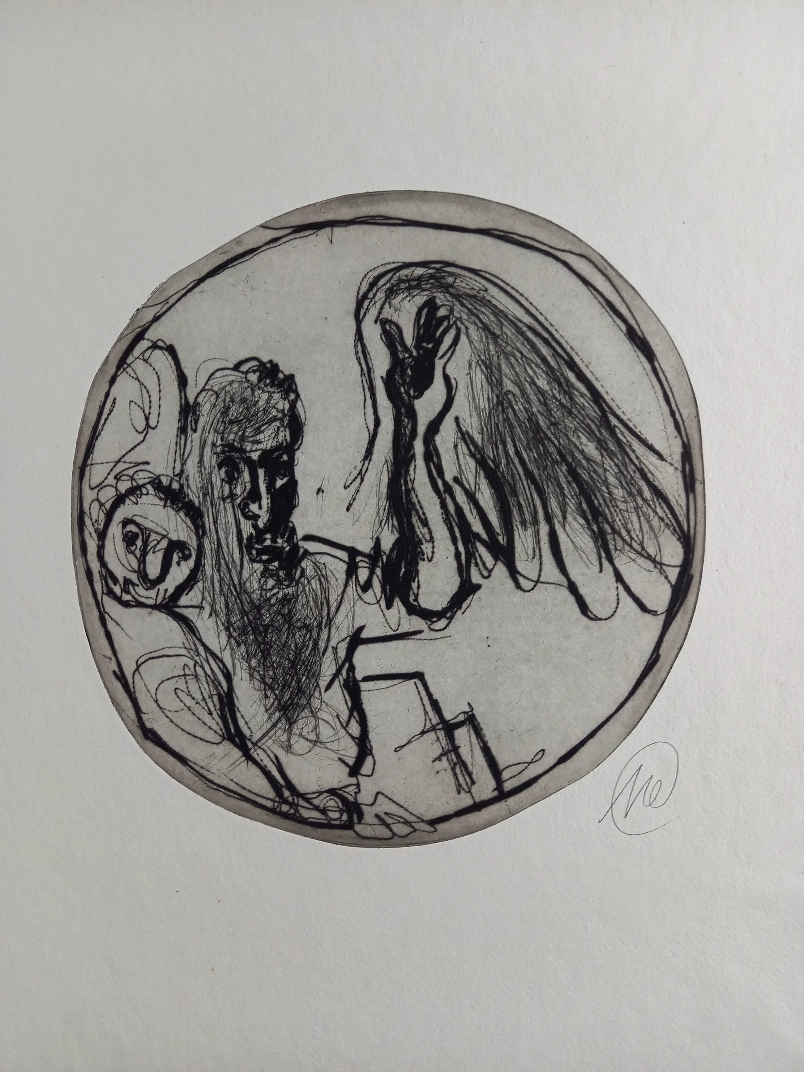 Titan Battle 2001 Portfolio met 12 zwarte droge naald etsen op handgeschept Nepalees papier elk ca. 77 x 57 cm of ca. 57 x 77 cm elk met monogram (samengevoegd) Achenbach + Costa Kunstverlag, Düsseldorf (red.) in zeer goede staat Map buiten de oplage van 10 gesigneerde exemplaren - losse bladen in de originele canvas map.