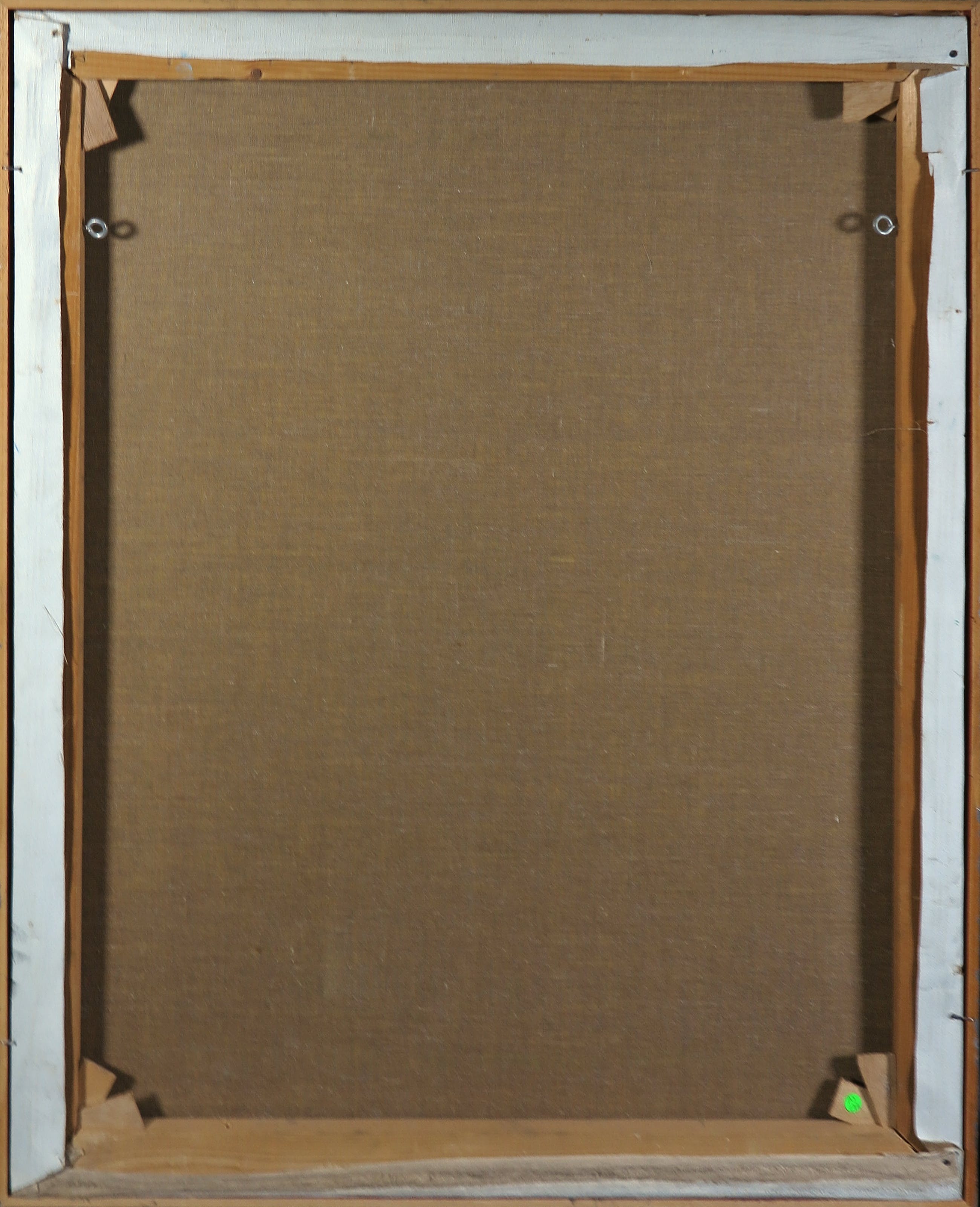 | De omlijsting zit deels los van het werk. Het doek is in zeer goede staat. | |