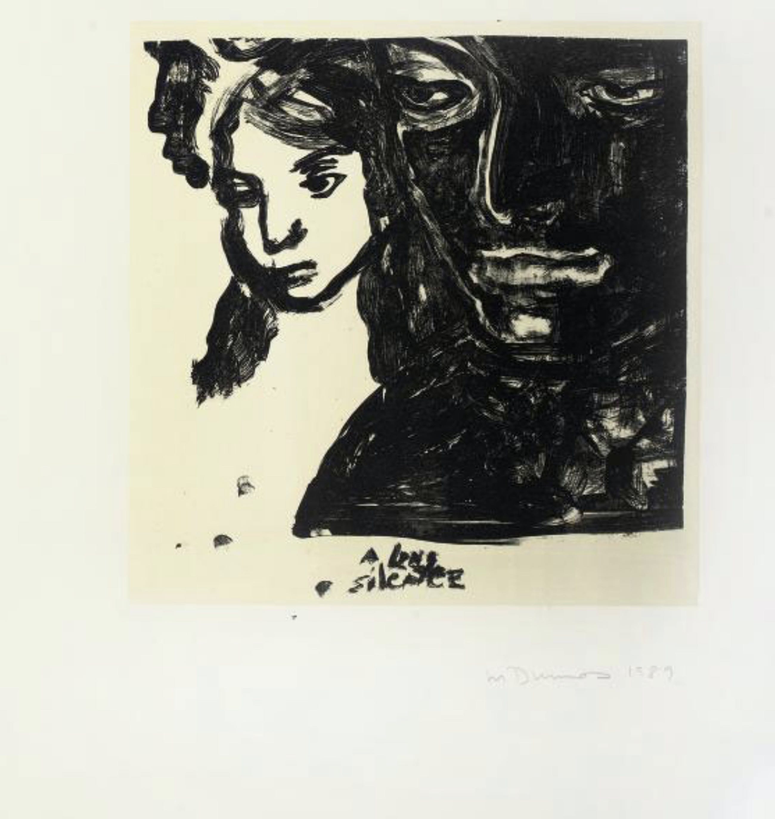 Marlene Dumas - A Long Silence Lithografie - Gesigneerd Een vroege lithografie door Marlene Dumas (1953), gepubliceerd door Griffelkunst Vereinigung, Hamburg.