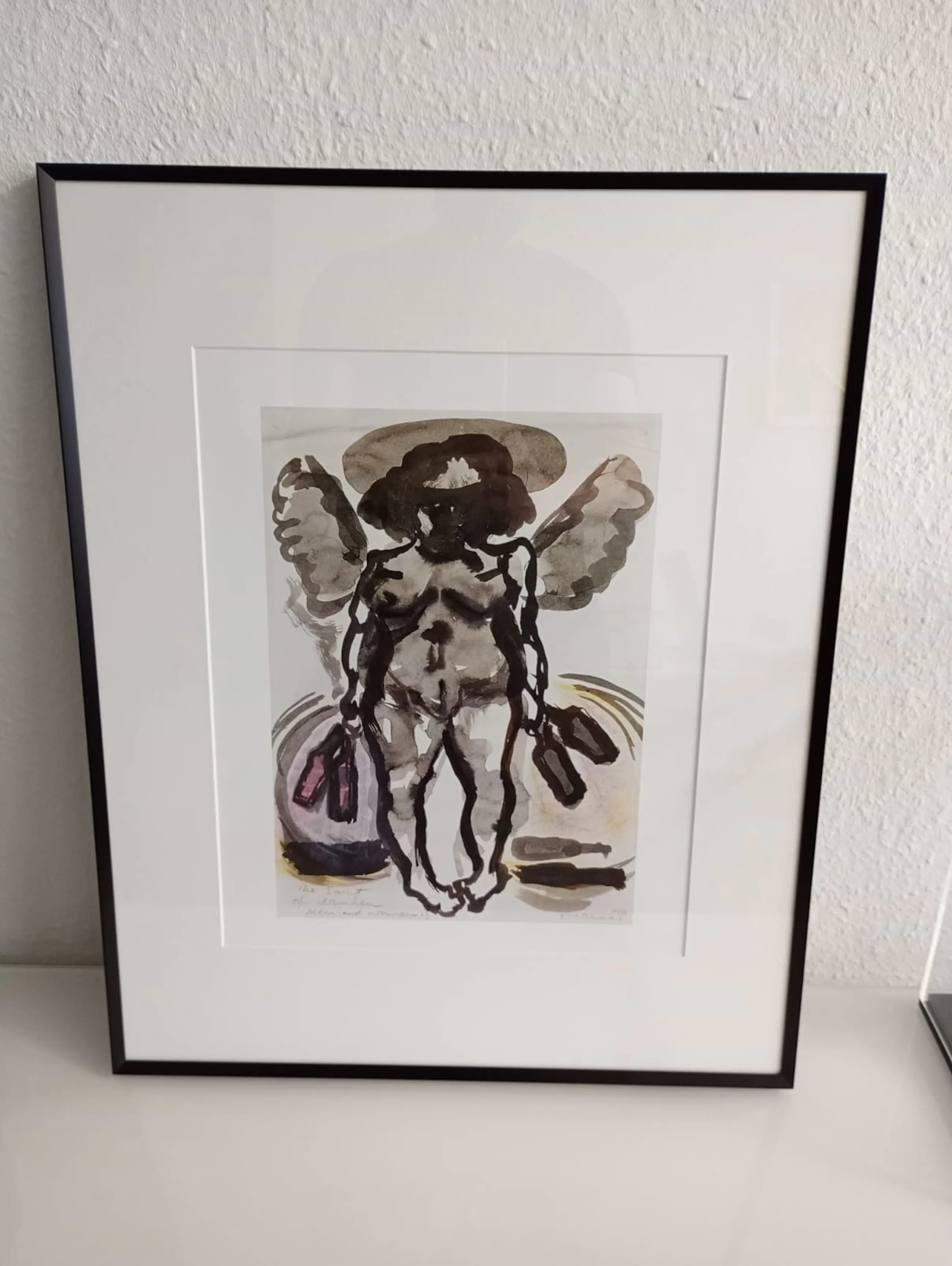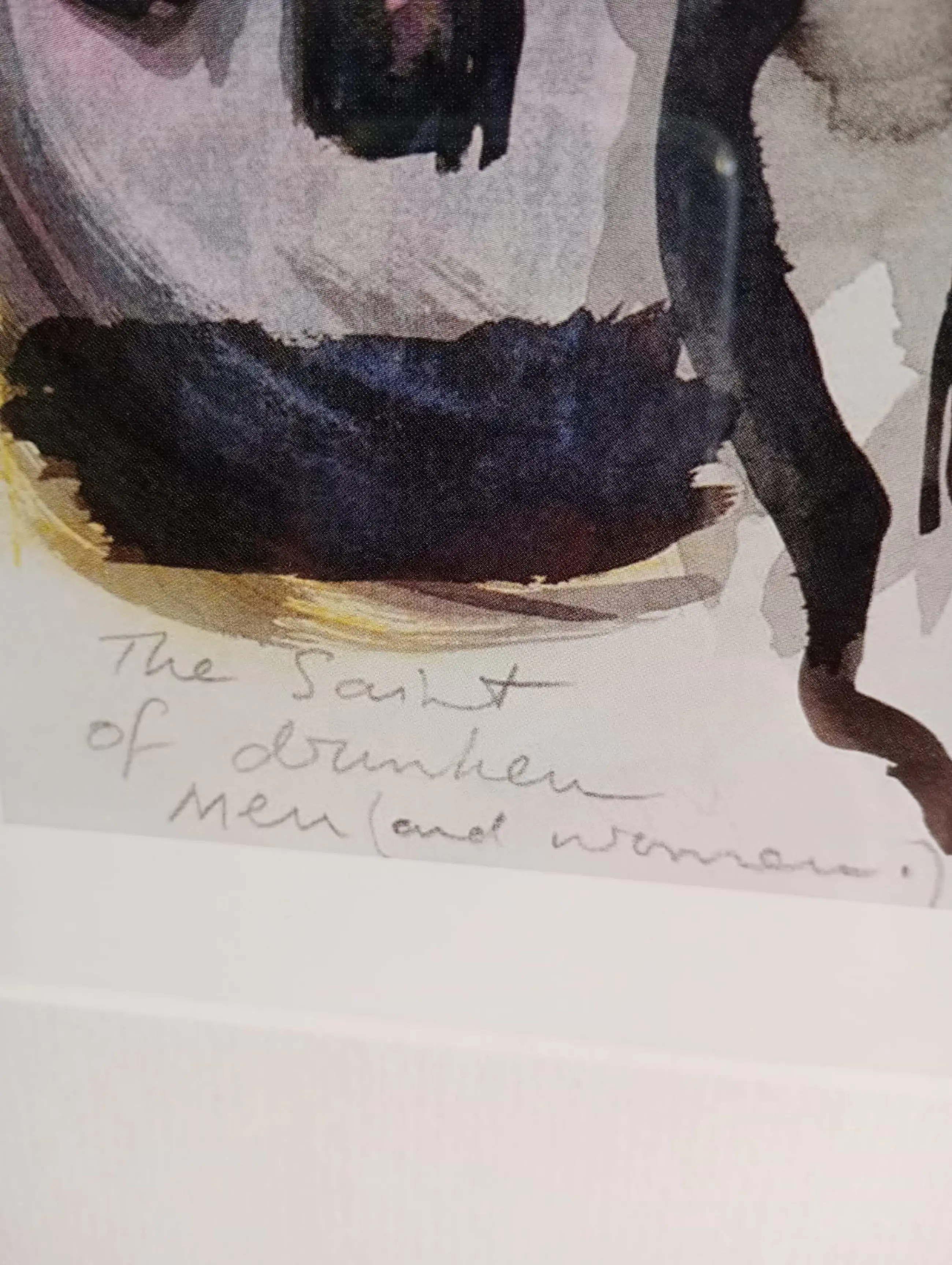 Kunstenaar: Marlene Dumas Titel: ‘The saints of drunken men and woman’ Jaar: 2014/2015 (origineel werk 1990) Techniek: Offsetdruk op papier Ingelijst: Ja, voorzien van een hoogwaardige aluminium Nielsen-lijst Formaat werk: 34x27 cm (uitsnede) Formaat ingelijst: 40x50 cm Conditie: Nieuwstaat Herkomst: particuliere collectie, Heerlen