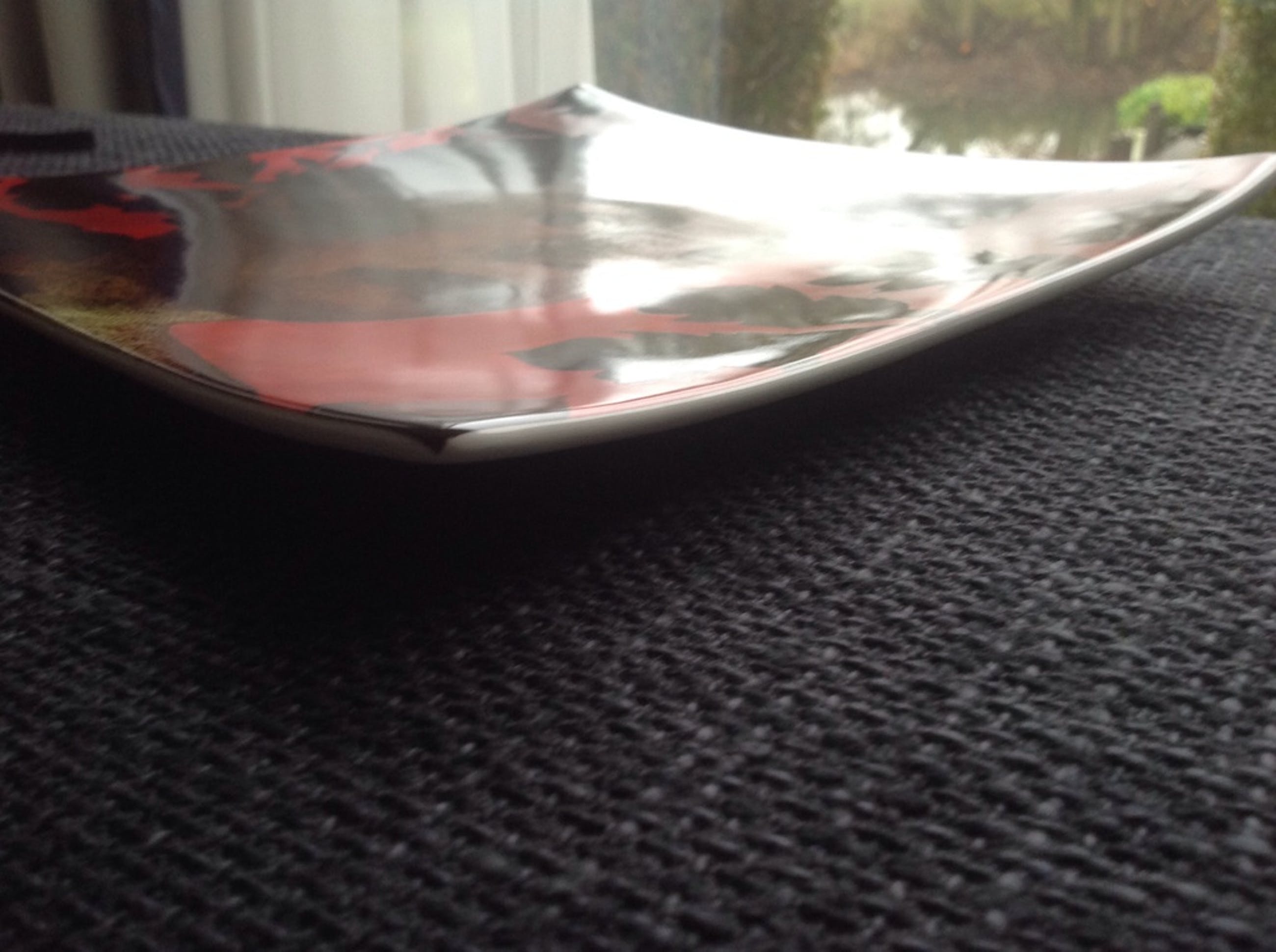 kan als schaal of wandbord fungeren, heeft meegebakken ophang gaten in voet ophoging zie foto