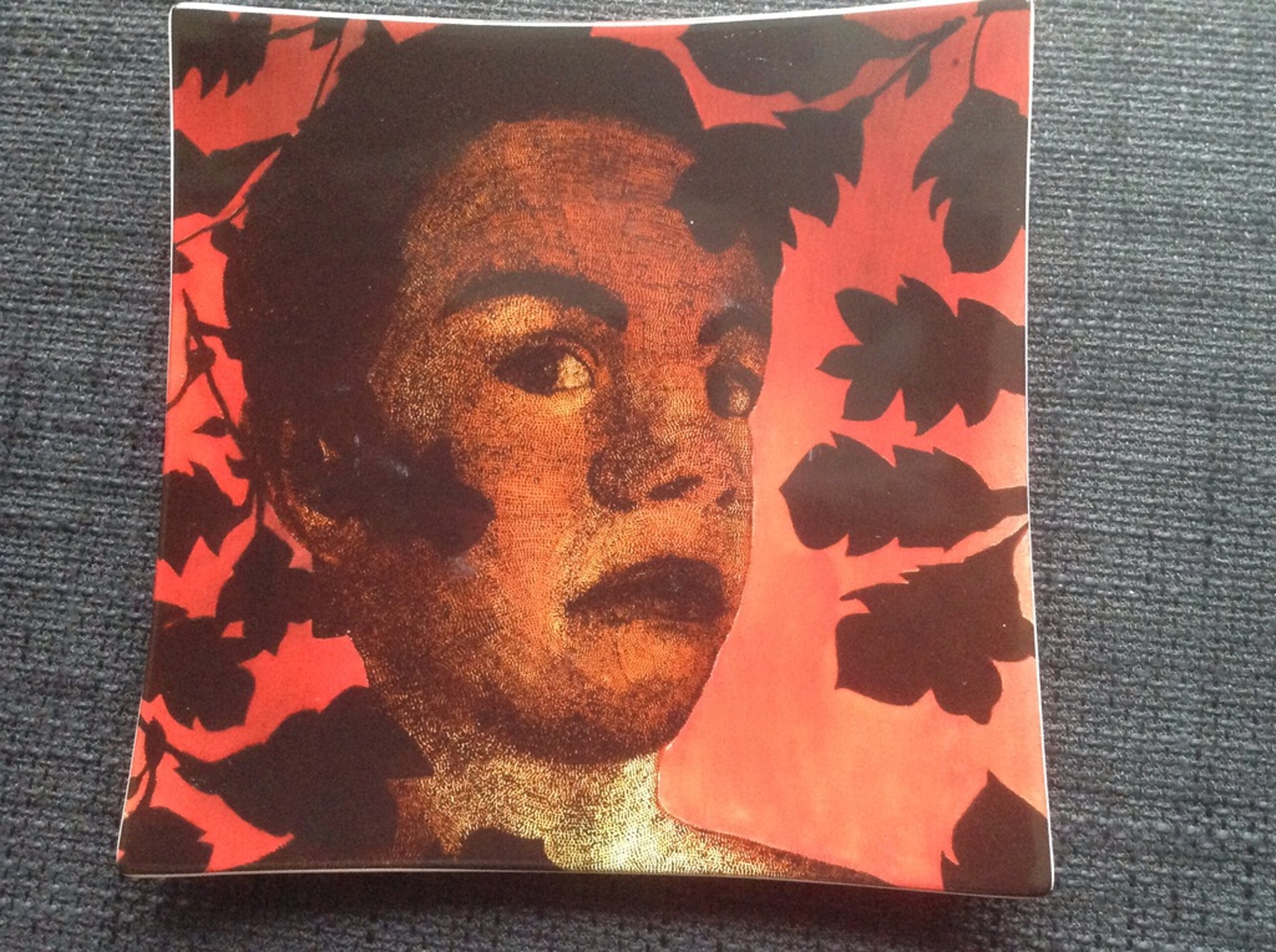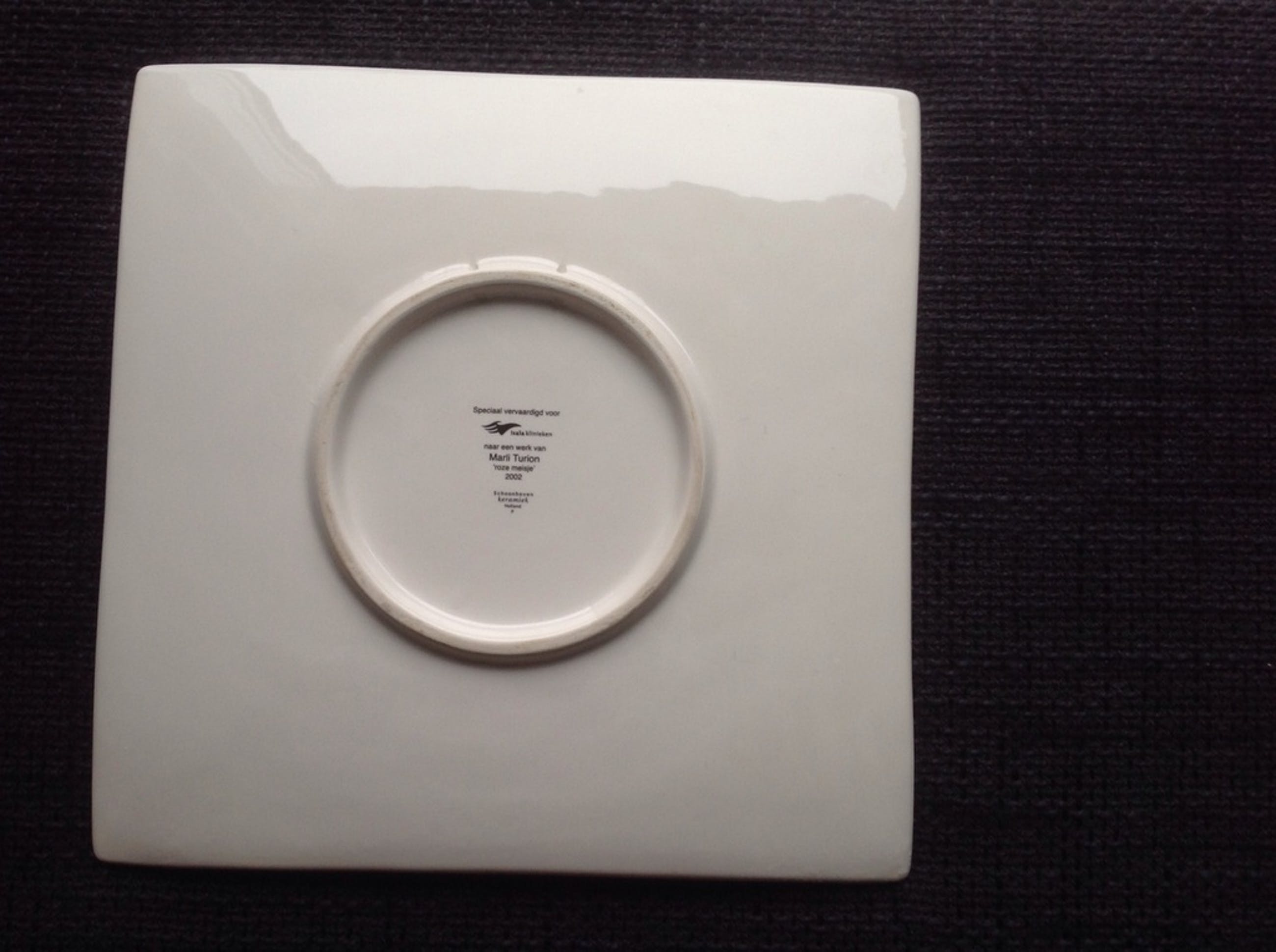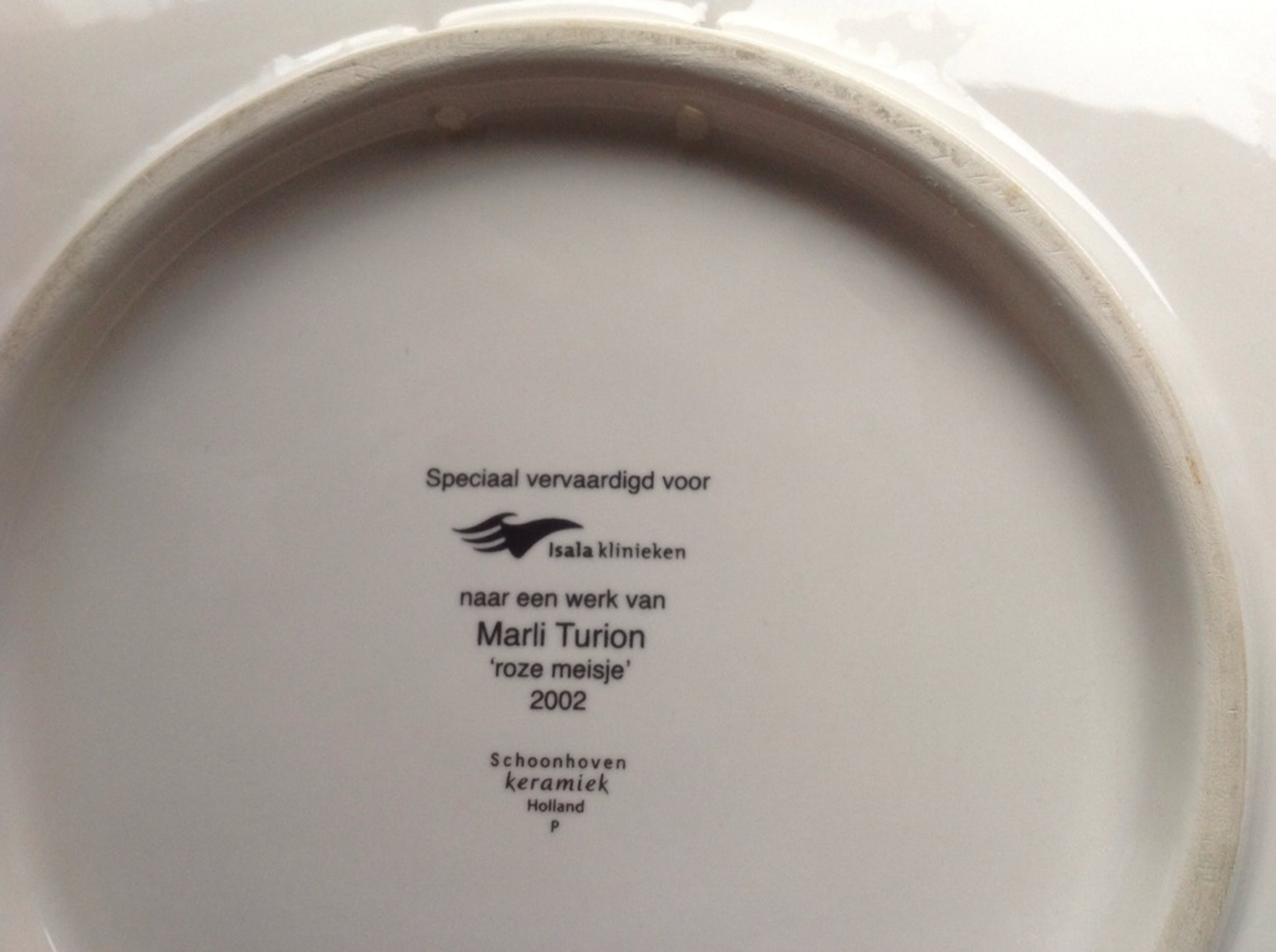 Vierkant taps oplopend wandbord gemaakt door kunstenaar Marli Turijn naar werk " roze meisje " 2002