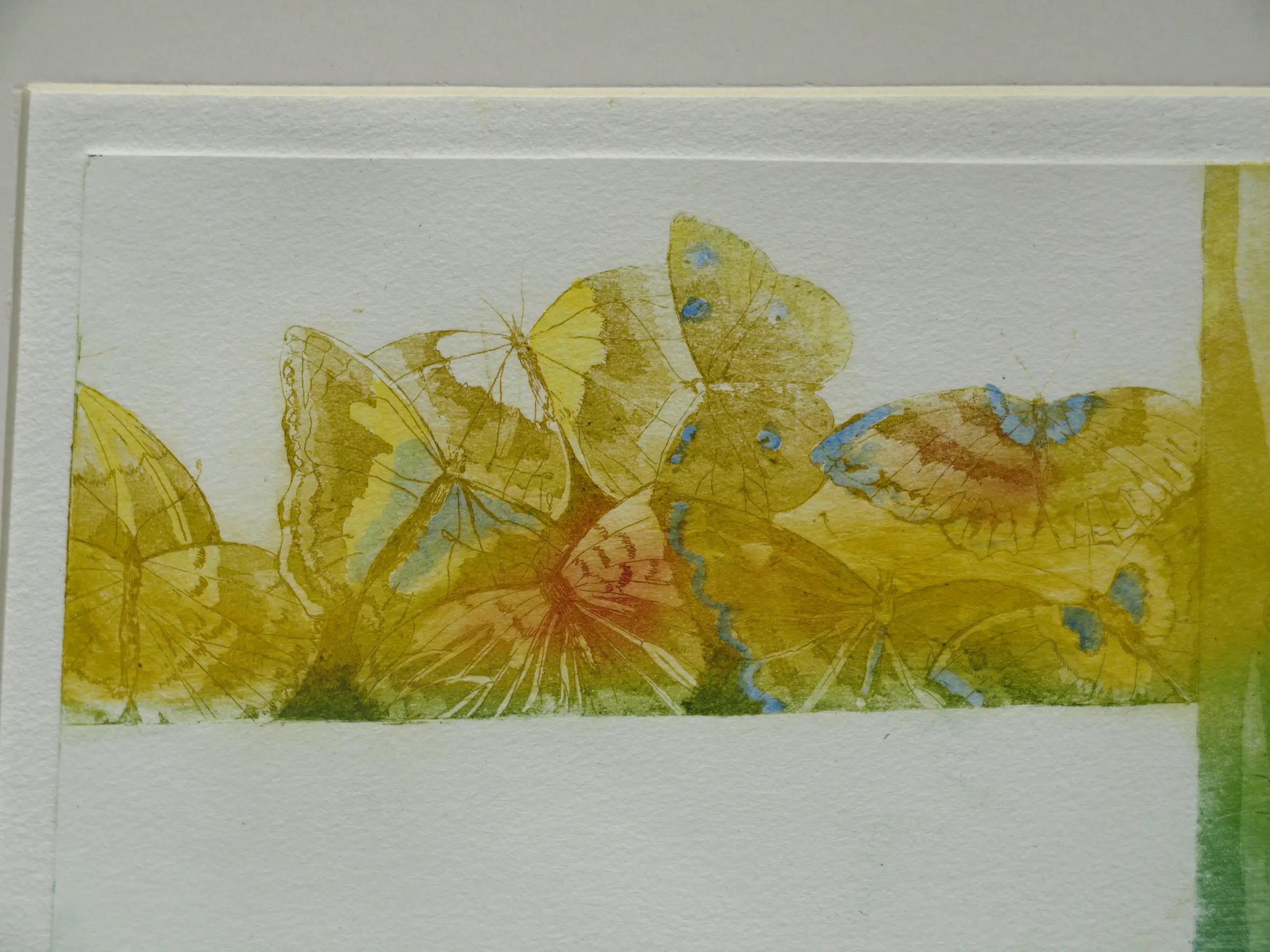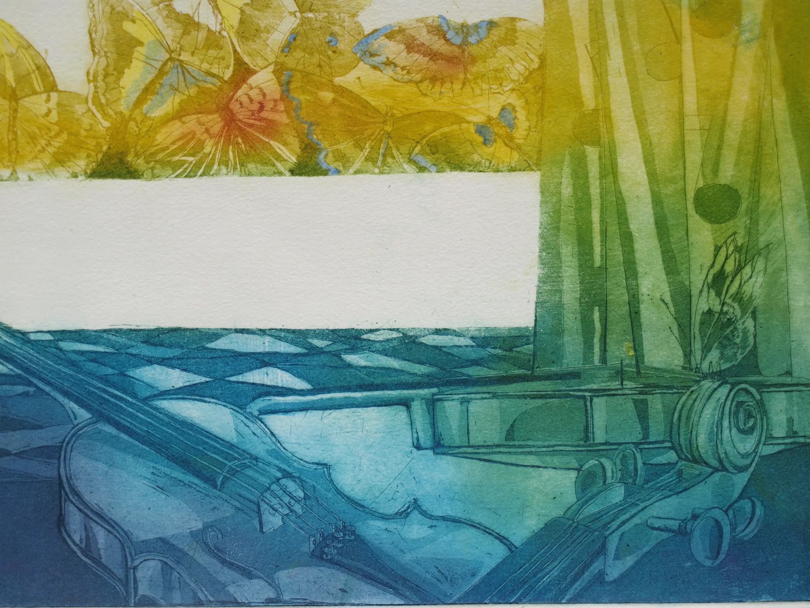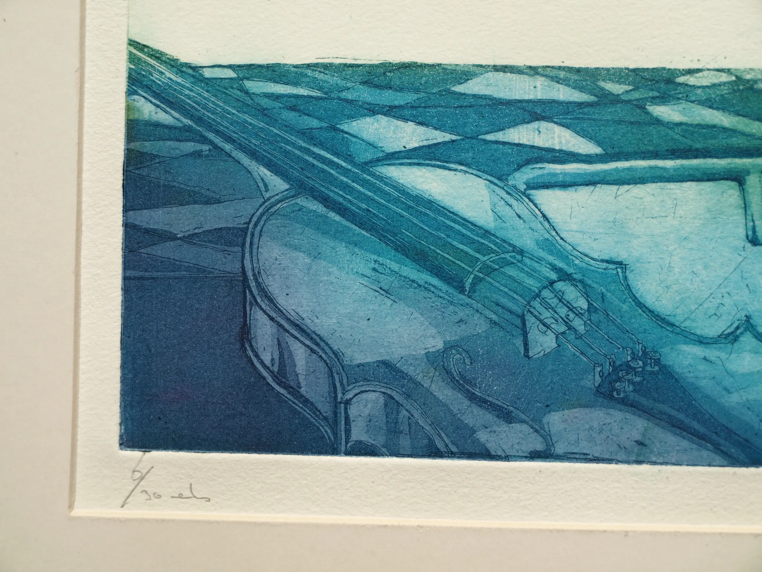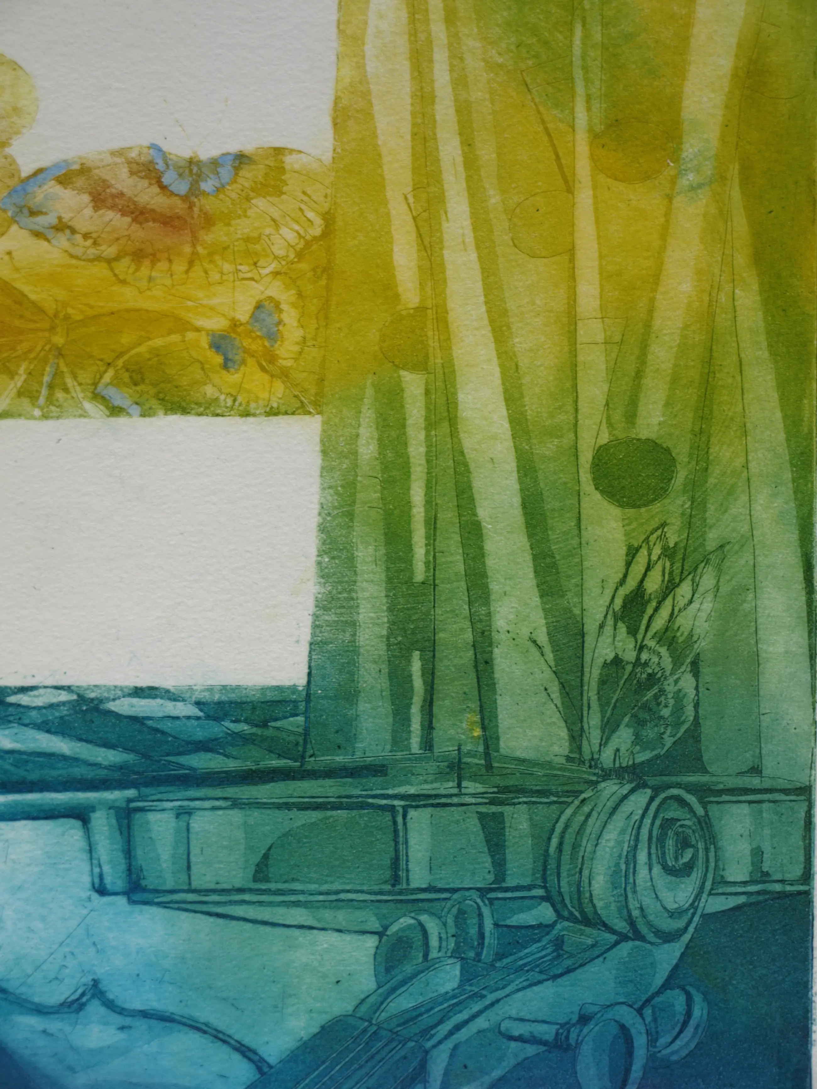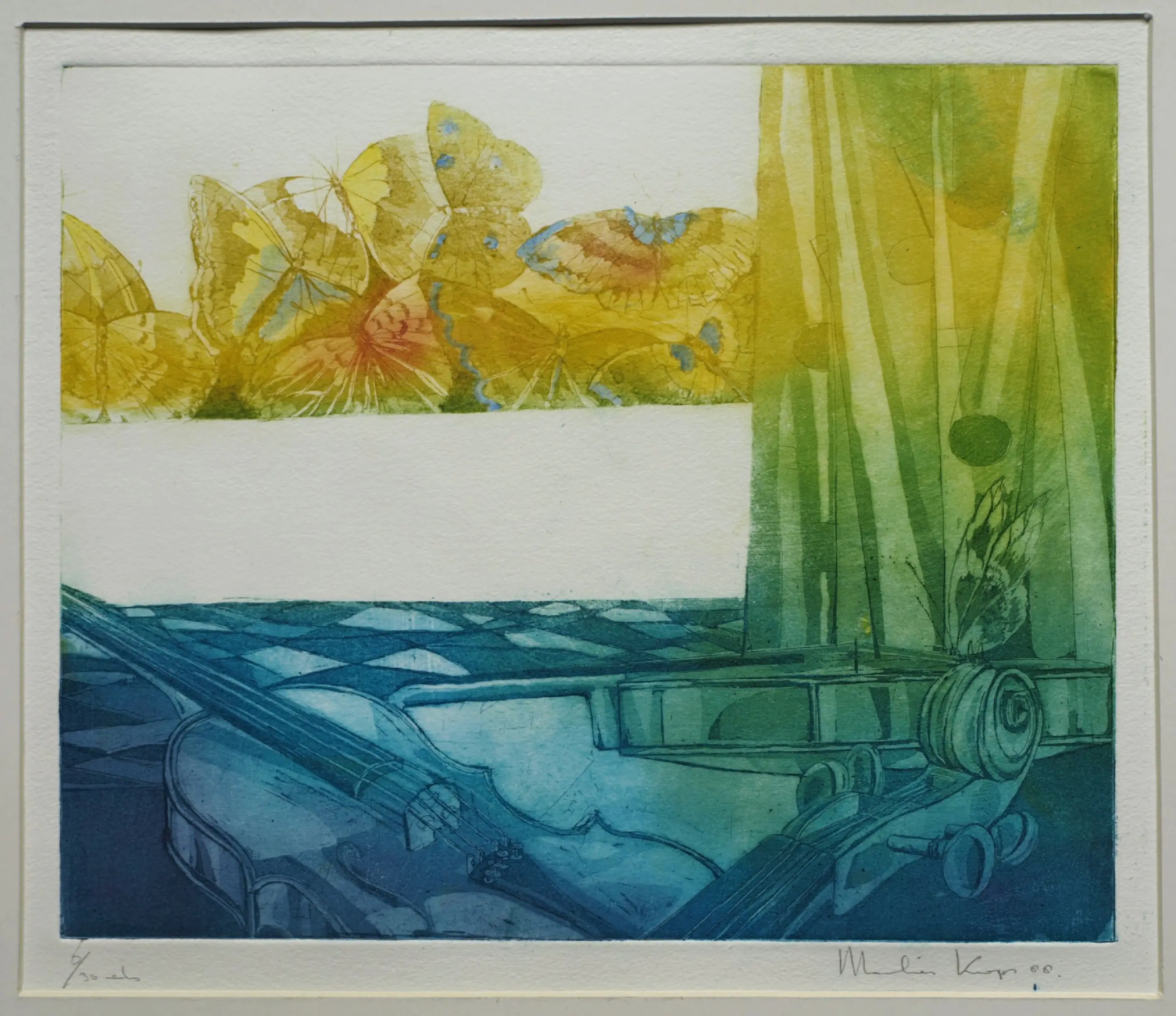 Een ingelijste ets uit 1988 van de Nederlandse / Limburgse kunstenares Marlies Knops (1950). -Handgesigneerd, -gedateerd en -genummerd met potlood. Nr. 6 van een oplage van 30. -Ingelijst in een eenvoudige witte kunststof lijst met passe-partout en plexiglasplaat. -Afmetingen: Lijst, 53½ x 43½ x 1 cm. Beeld / ets, 20 x 24½ cm. -Herkomst: Uit een inboedel. -Conditie: In zeer goede staat. Zie ook alle foto’s. Kan zo aan de muur.