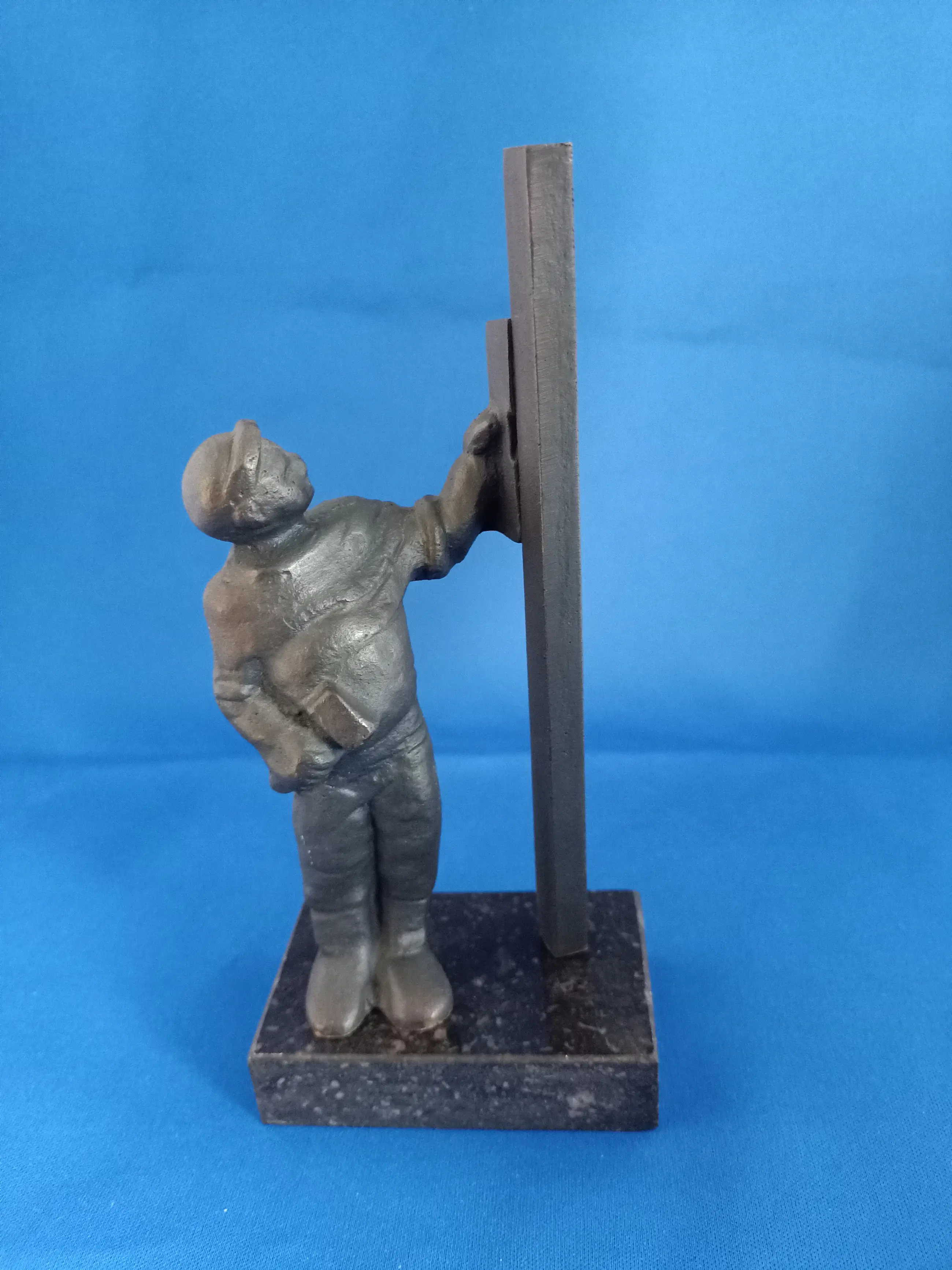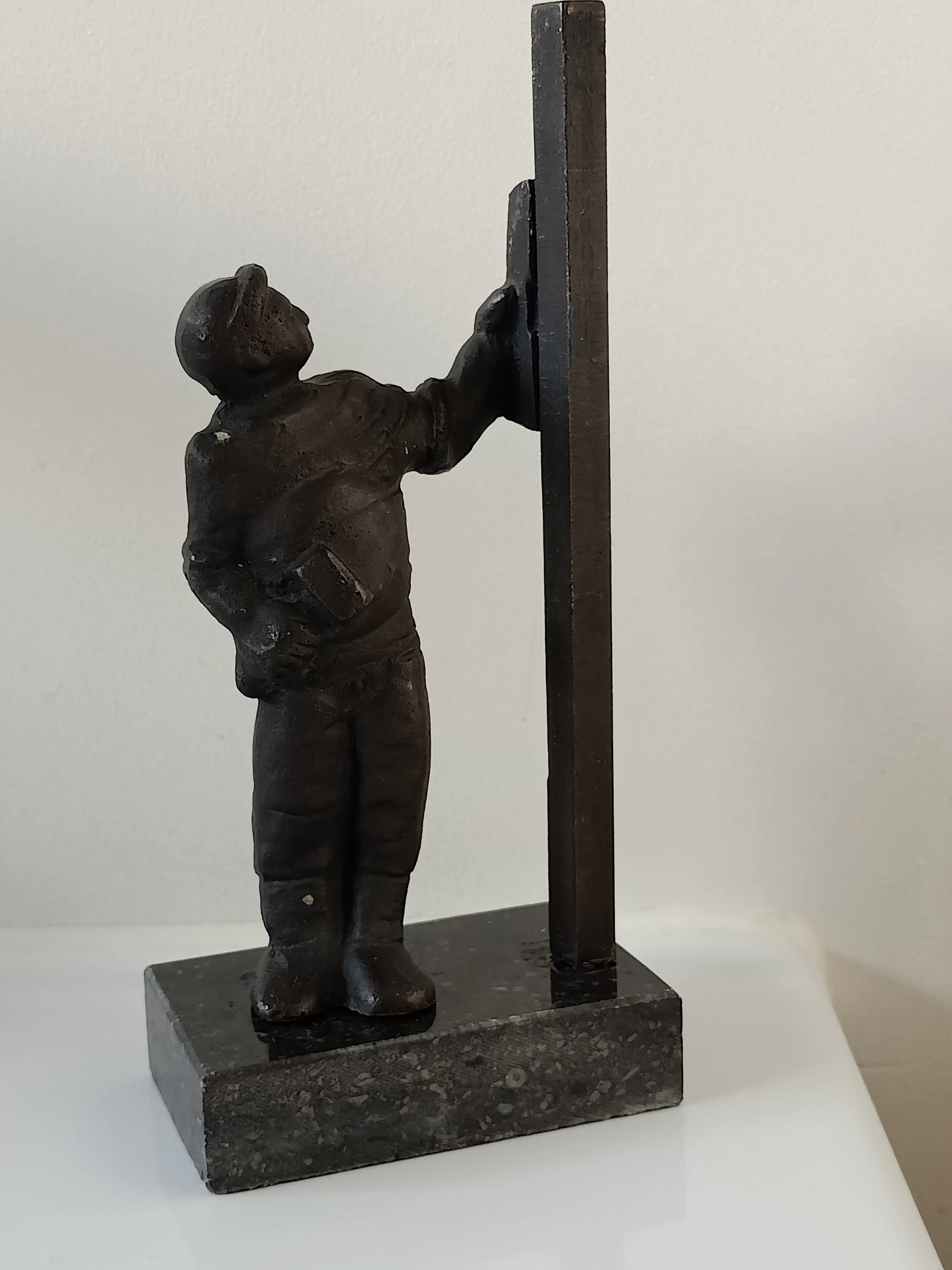 Dit beeldje is één uit een serie van 17 stuks bronzen beeldjes, voorstellende diverse beroepen in de bouwwereld.