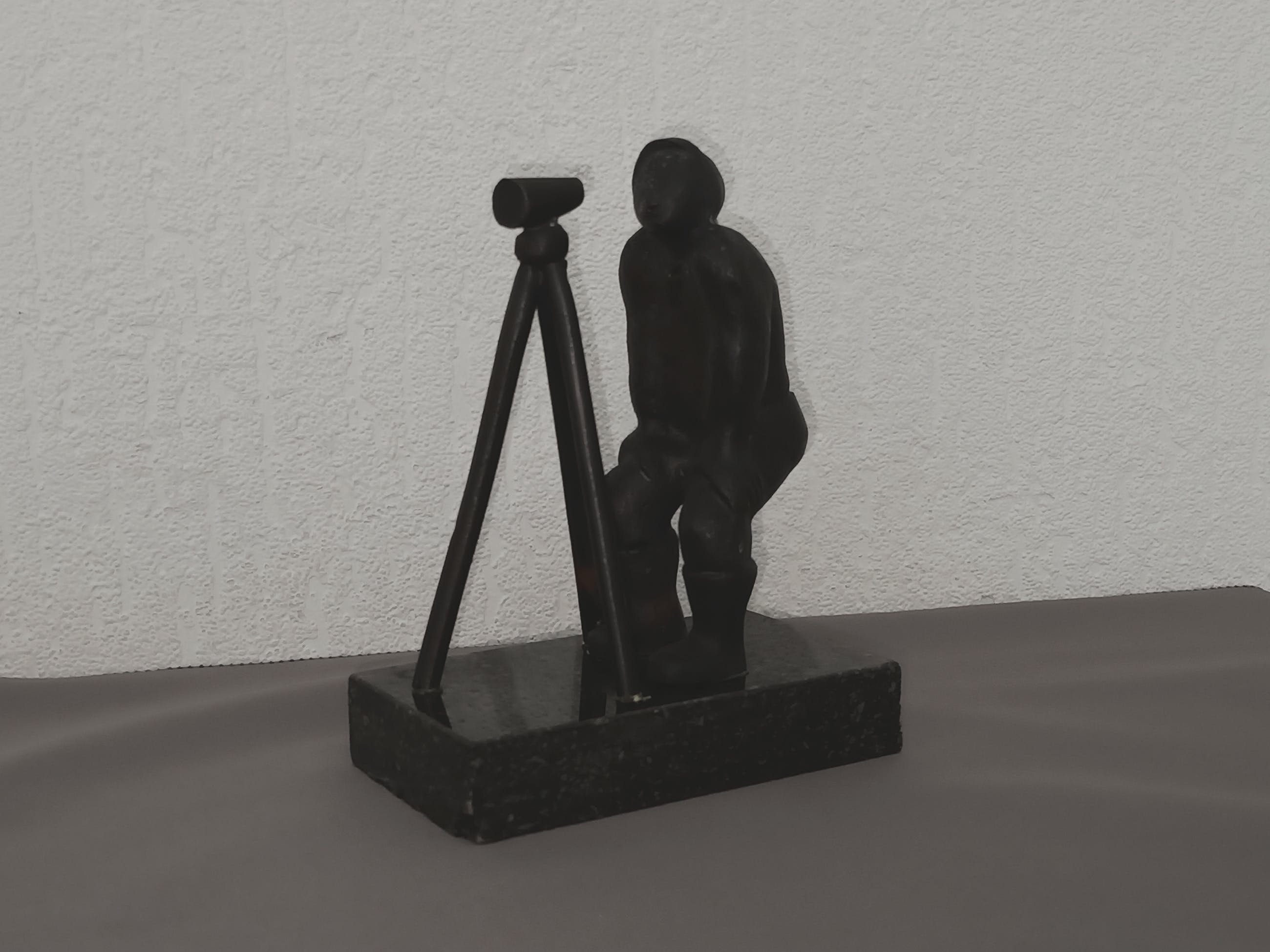 Een beeldje uit een serie van 17 uitgegeven door Bouwbedrijven Jongen bv. Dit beeldje stamt uit 1998 en stelt voor "de landmeter".