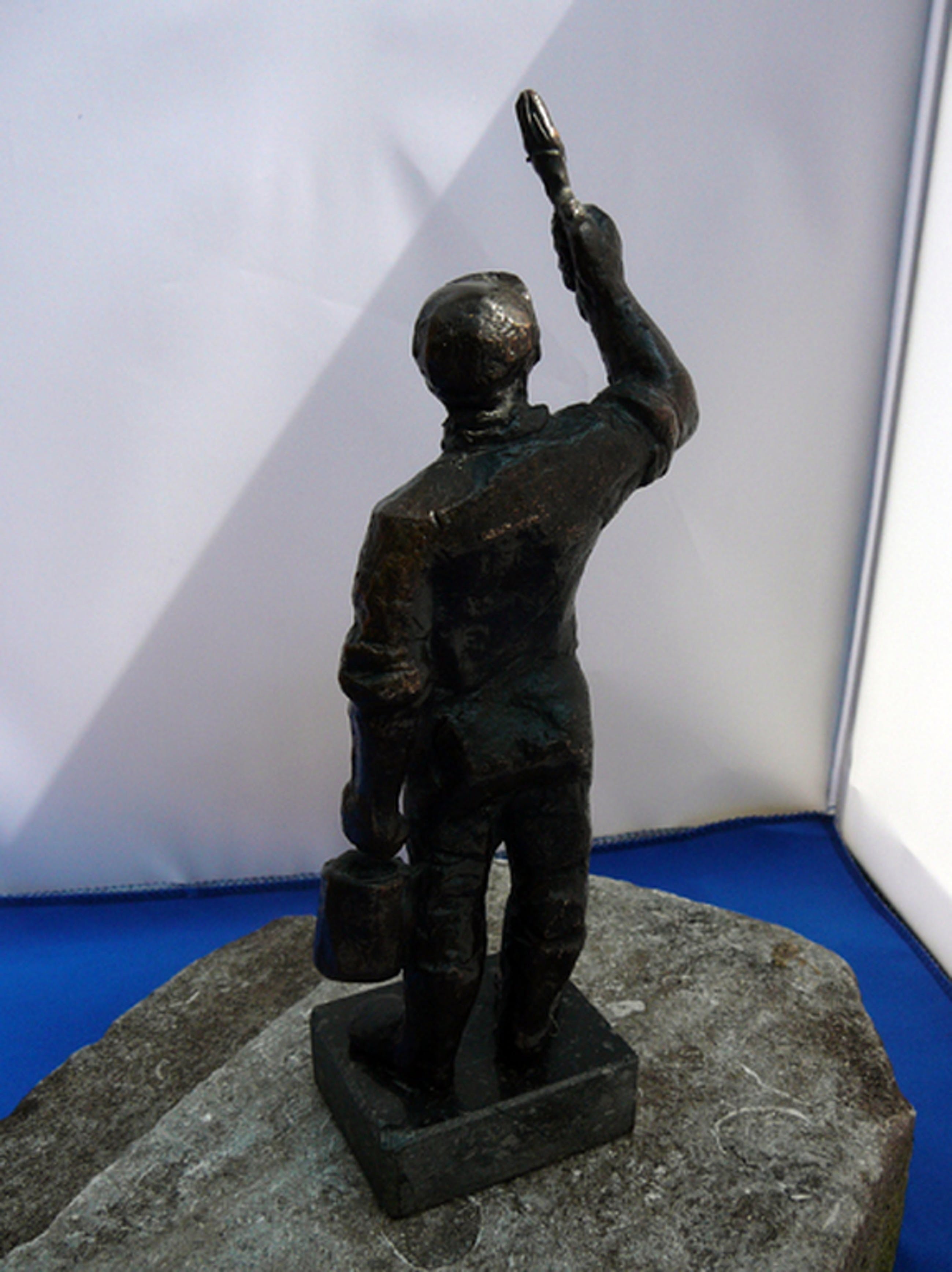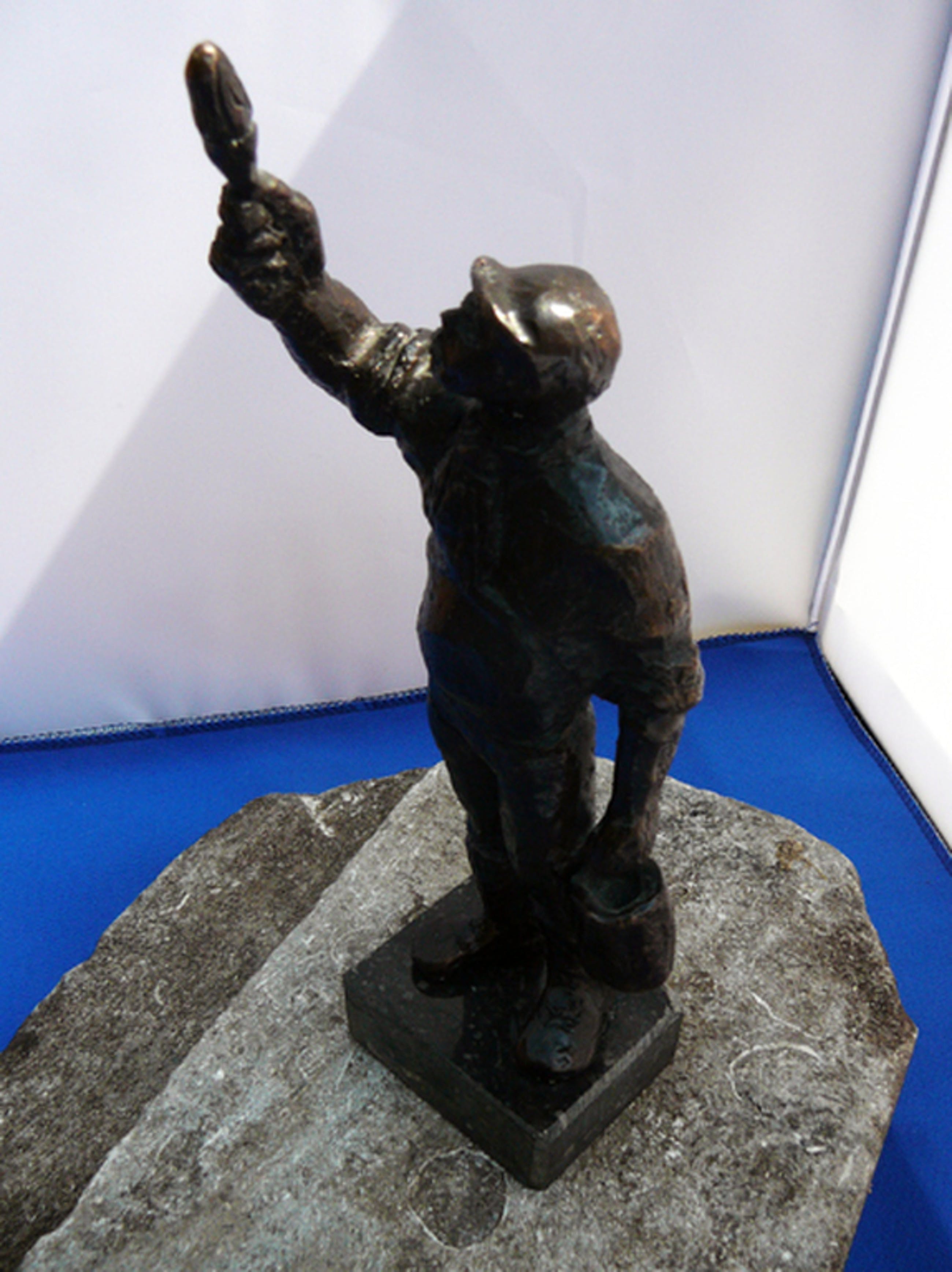 Bronzen beeldje van Marlies Noordkamp op basement van marmer/graniet. In licentie uitgegeven door bouwbedrijf Jongen.