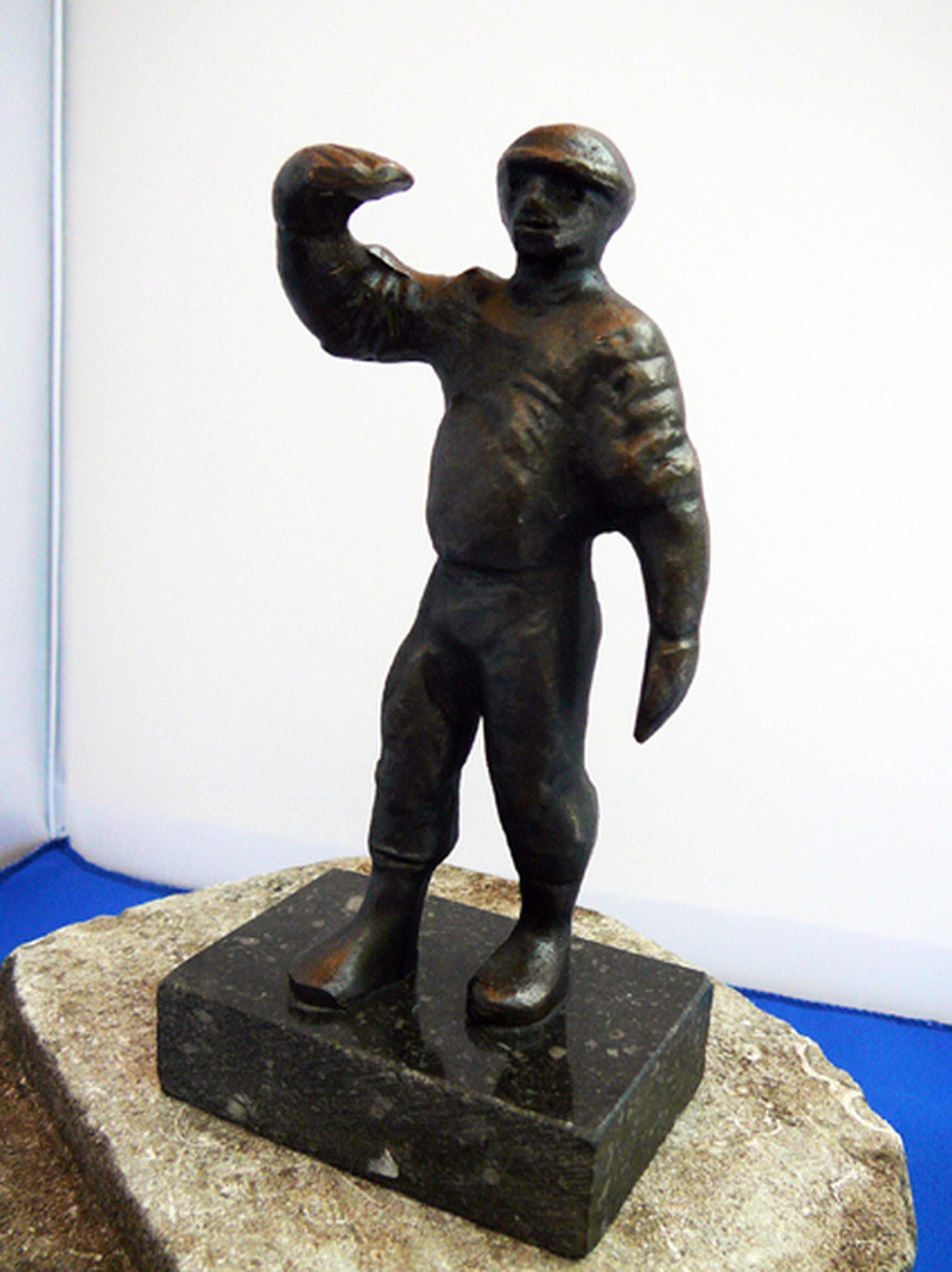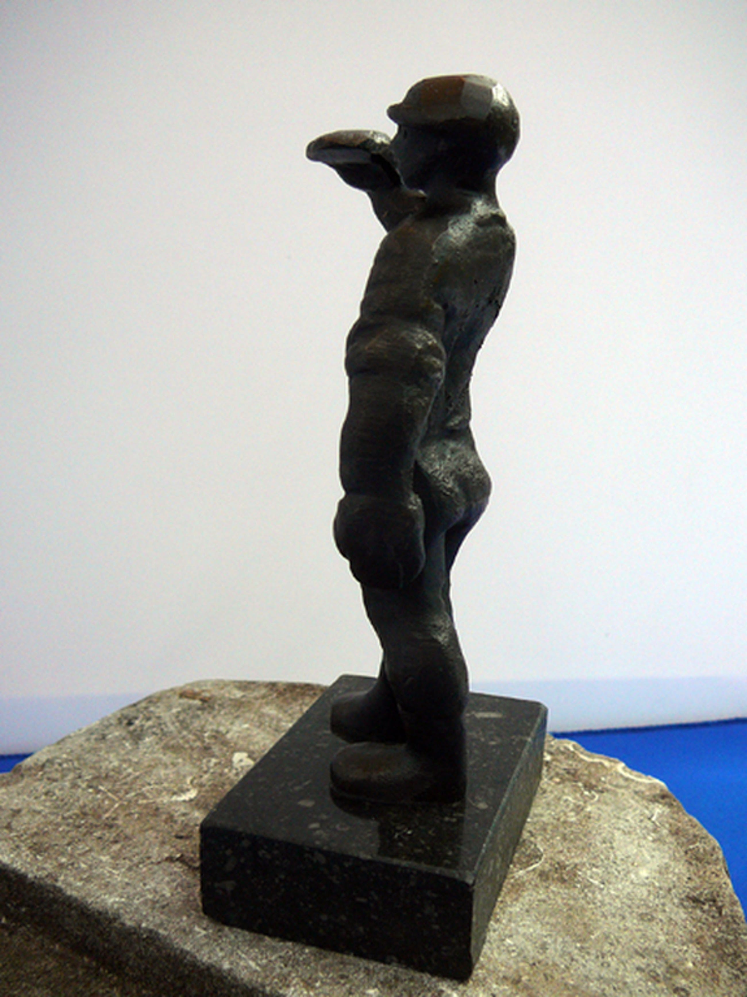 Bronzen beeldje van Marlies Noordkamp op basement van marmer/graniet. In licentie uitgegeven door bouwbedrijf Jongen.