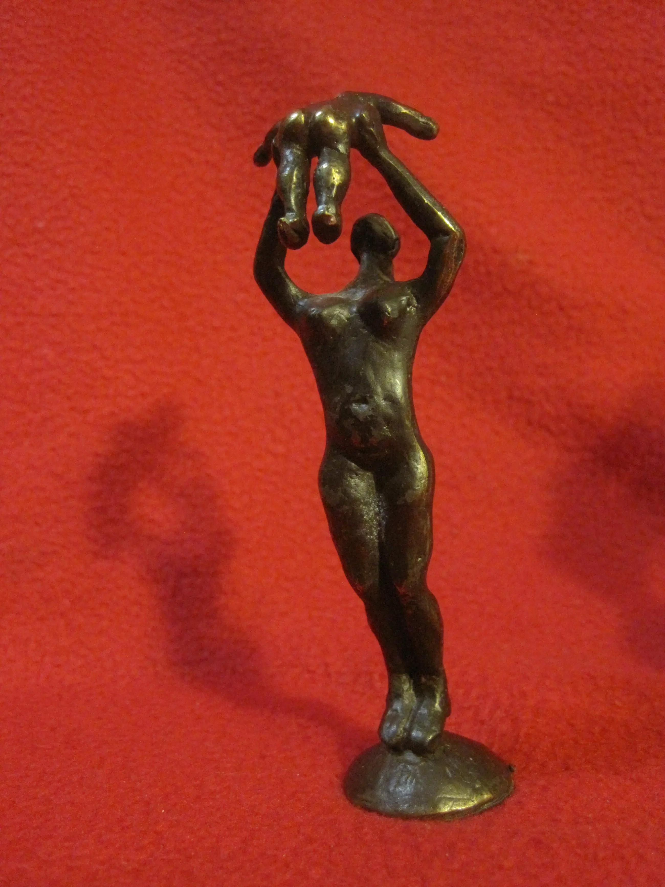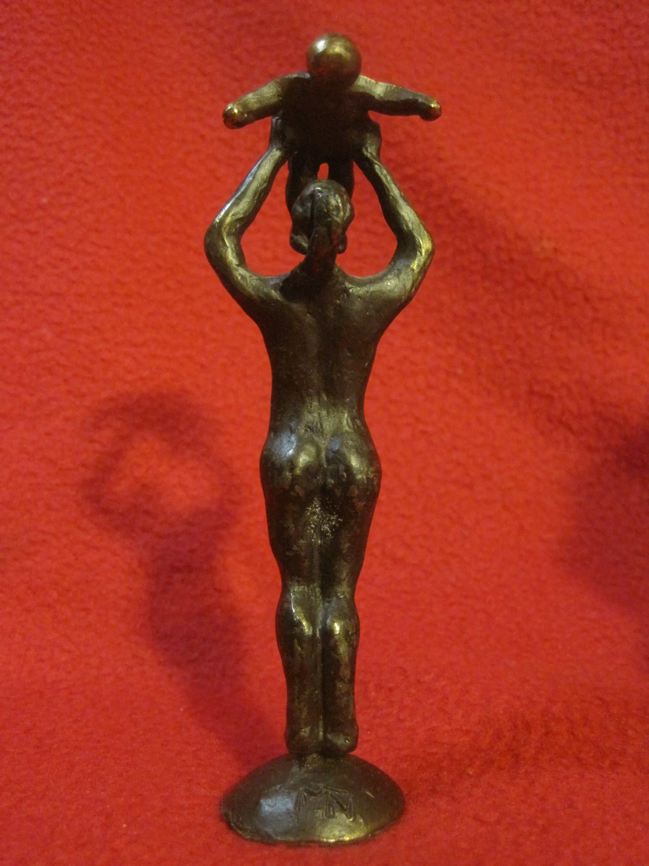 De beeldjes zijn op het voetje gesigneerd. Het beeldje moeder met kind is 12,5 cm hoog, 4 cm breed en 3,5 cm diep. het weegt 150 gram. Marlies Noordkamp -Drummen is vooral bekend door haar mooie beeldjes die verschillende beroepen uitbeelden.