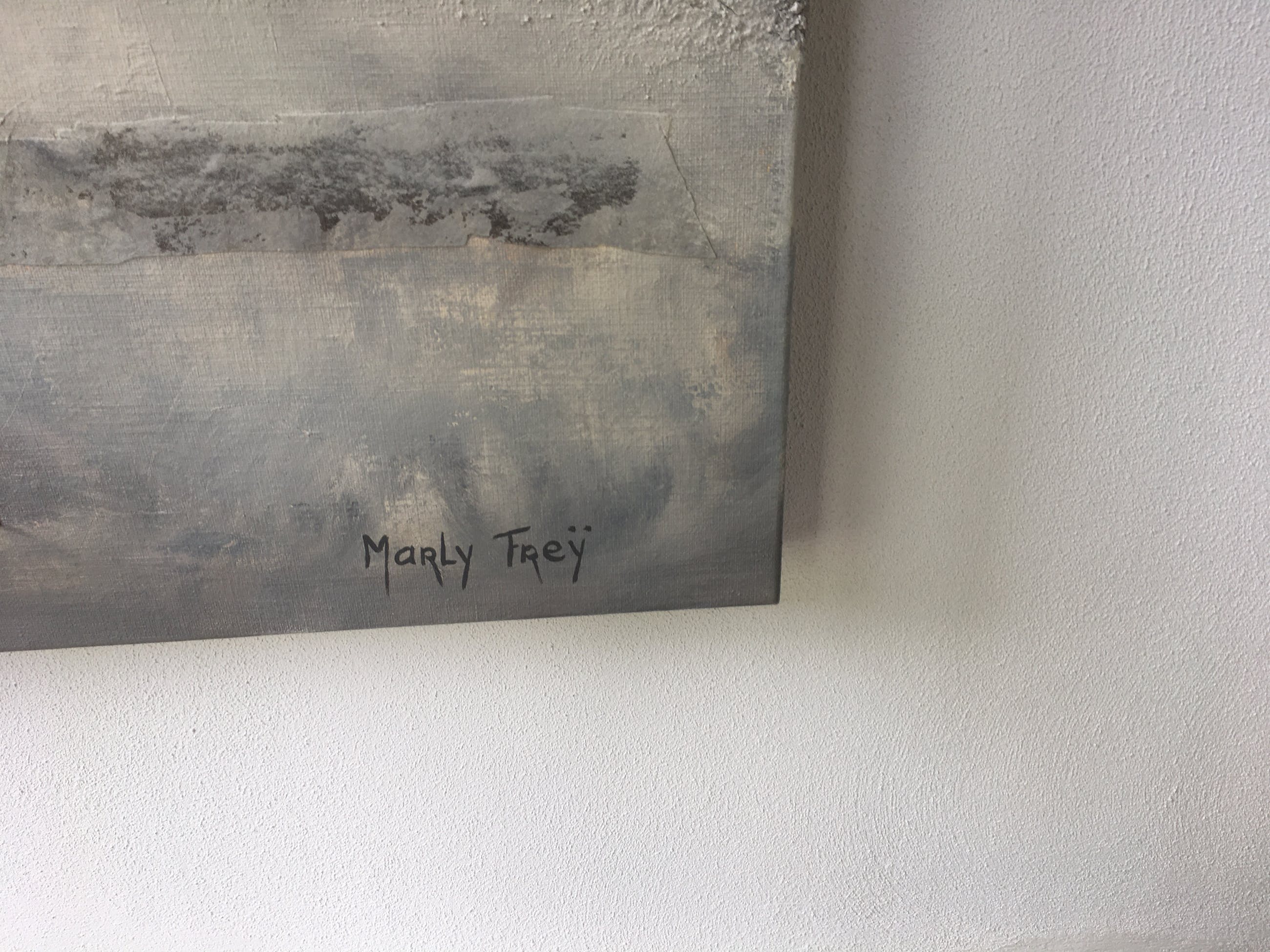 Prachtig materieschilderij in aardse kleuren. Op aluminium spieraam. Zijkanten (5cm) in werk meegenomen. Rechtstreeks van Marly Freij betrokken. Bezorging/afhalen in overleg.