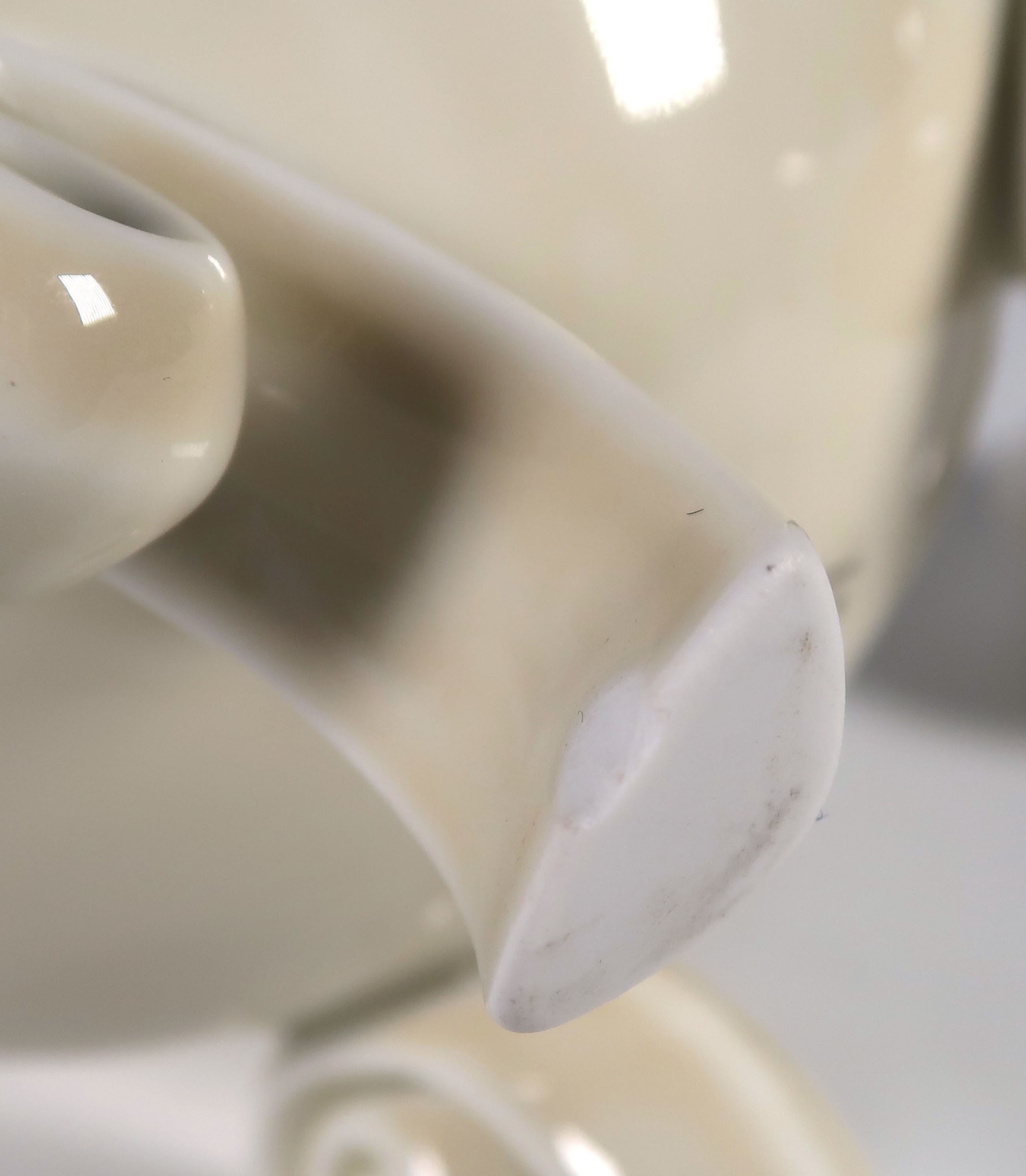 | Twee van de drie pootjes zijn beschadigd: ze missen alle twee een scherf. | |||