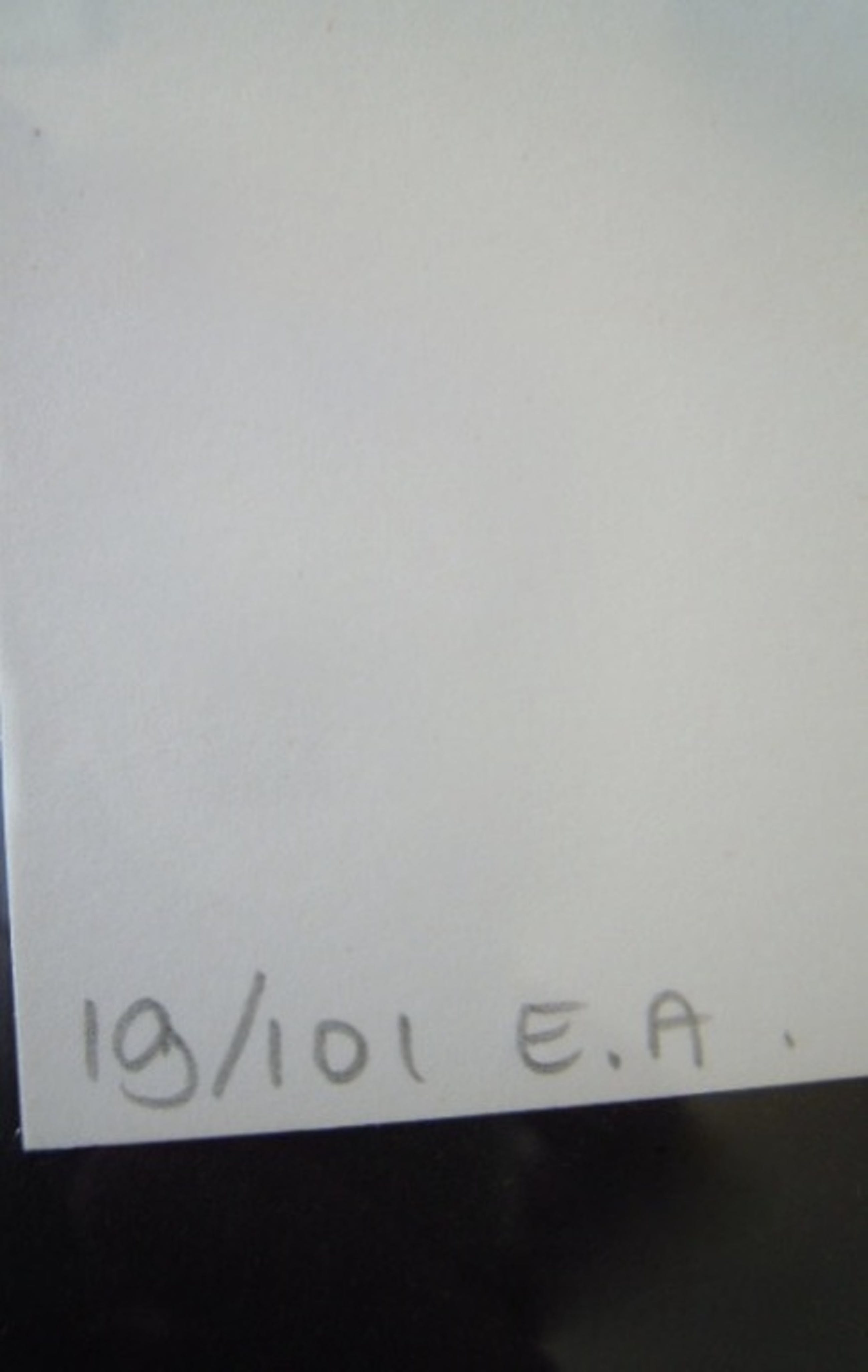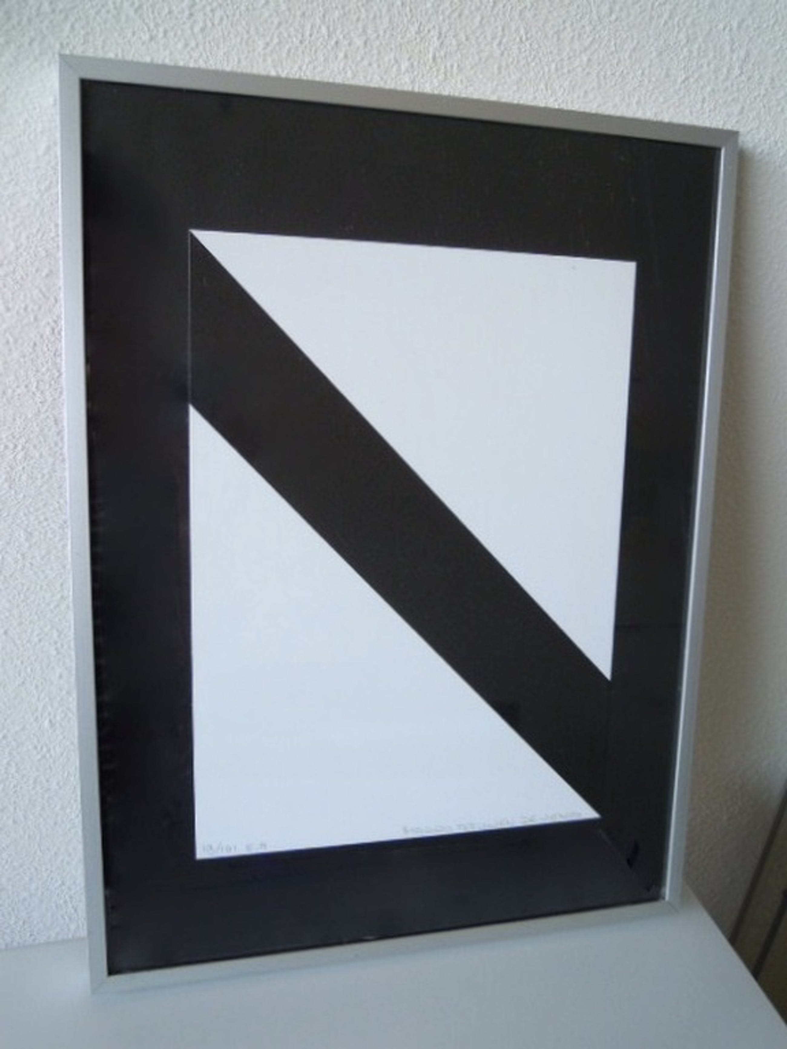 Hand gesigneerde en genummerde zeefdruk die met de hand is gedrukt.