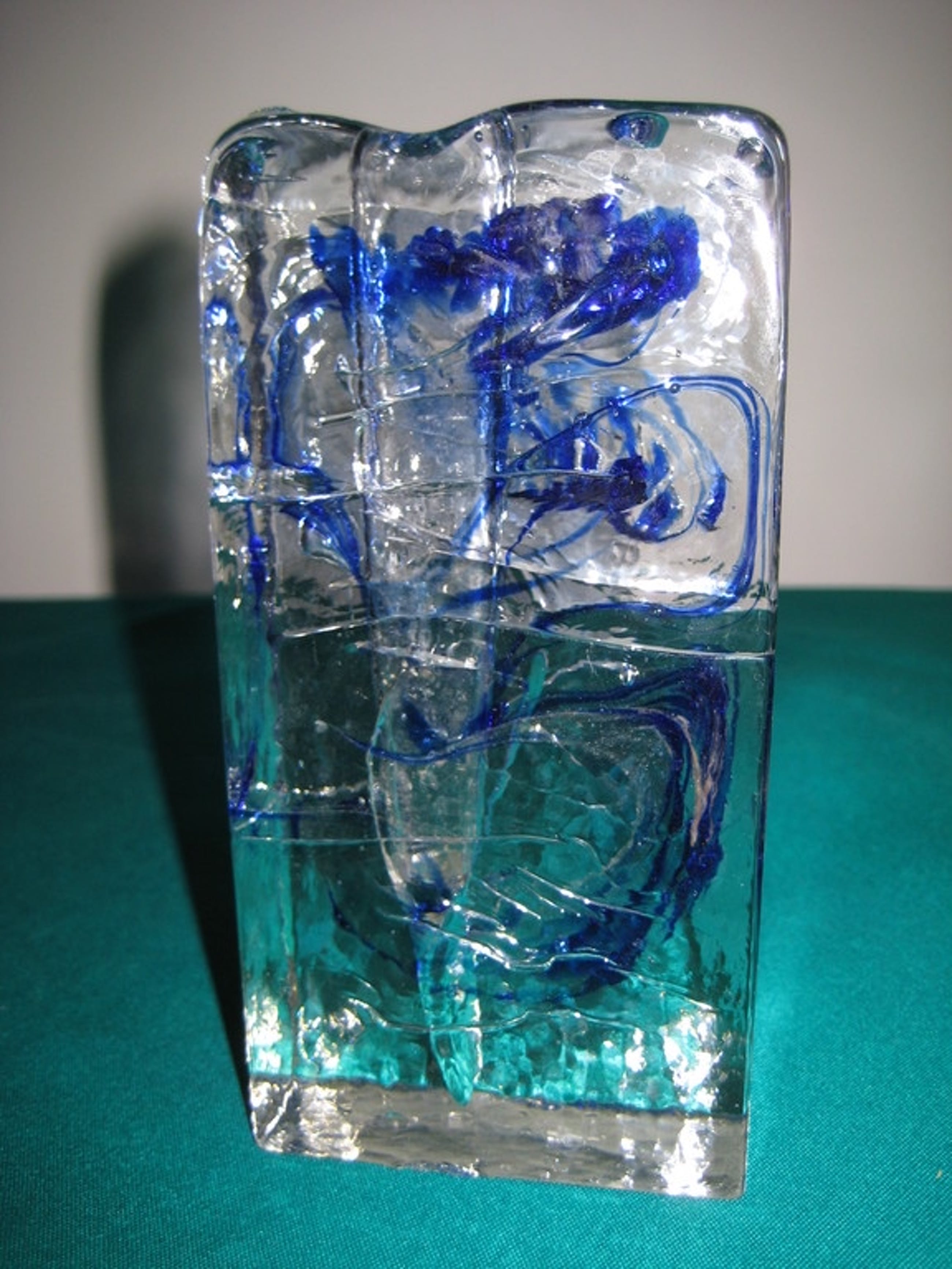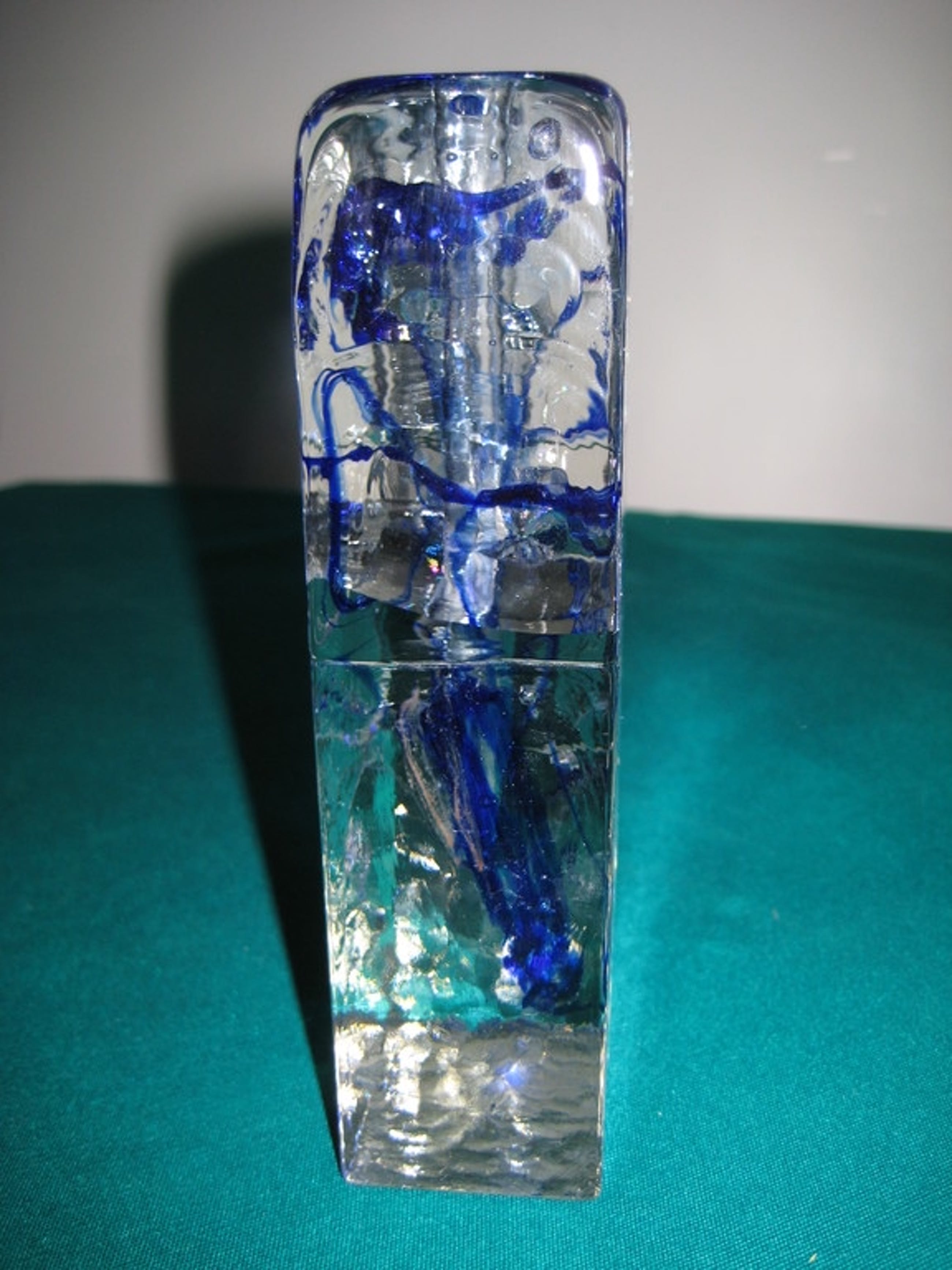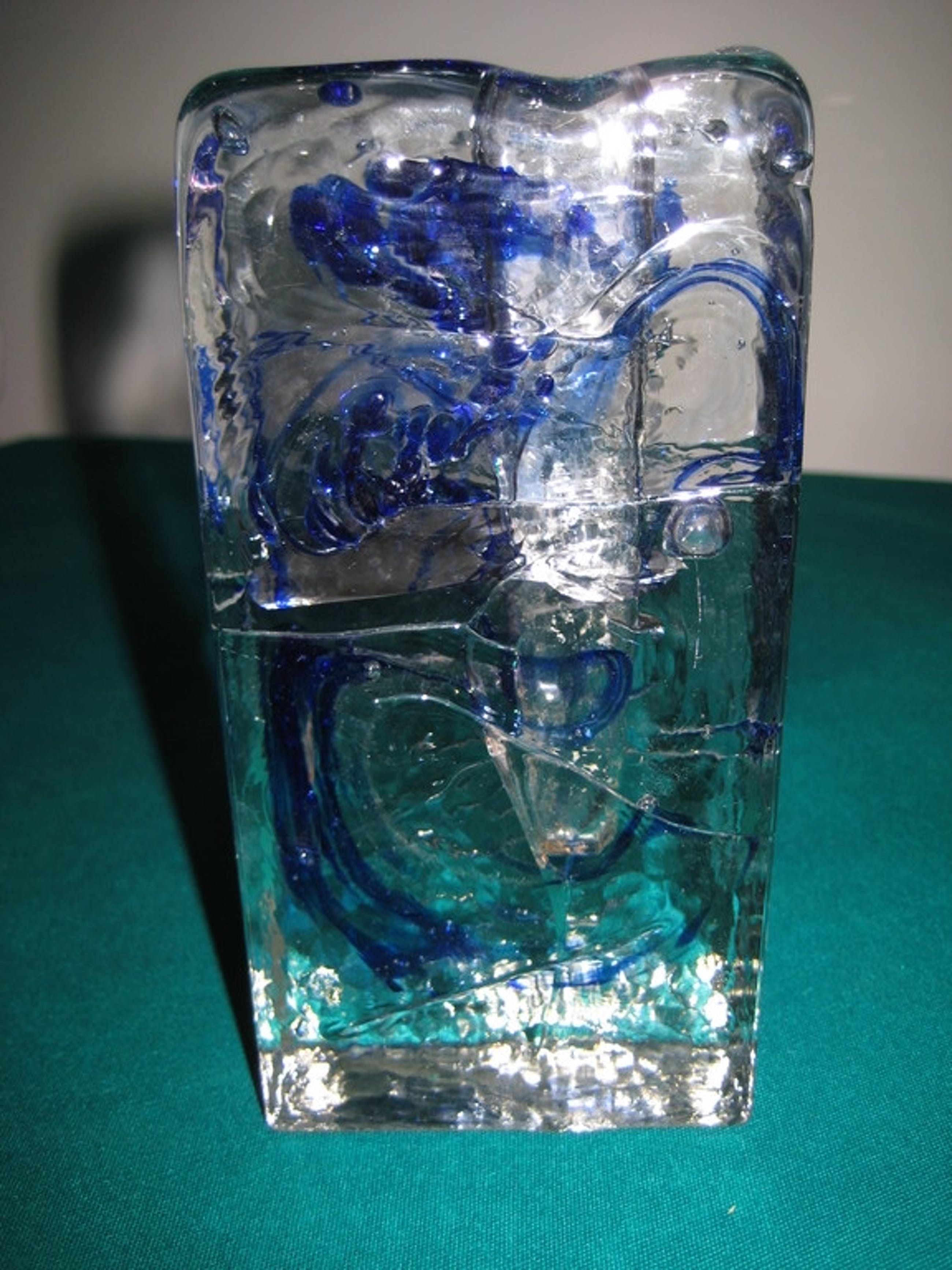 Glazen Solifleur door MG - Marsberger Glaswerke Ritzenhoff , Niedermarsberg (Westfalen, Duitsland) Deze solifleur (een bloemenvaas) heeft een texured oppervlak met blauwe swirles