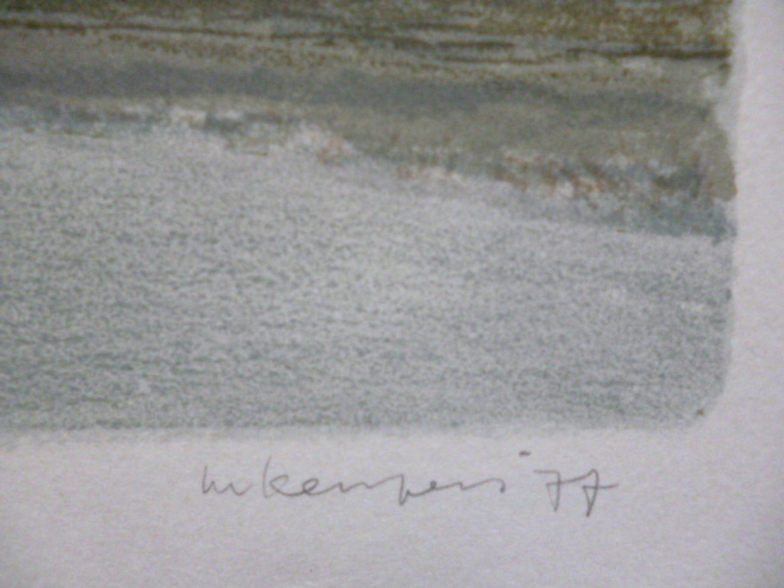 Kleurenlitho uit 1977, potlood gesigneerd en gedateerd rechtsonder. Genummerd 10/50 linksonder.