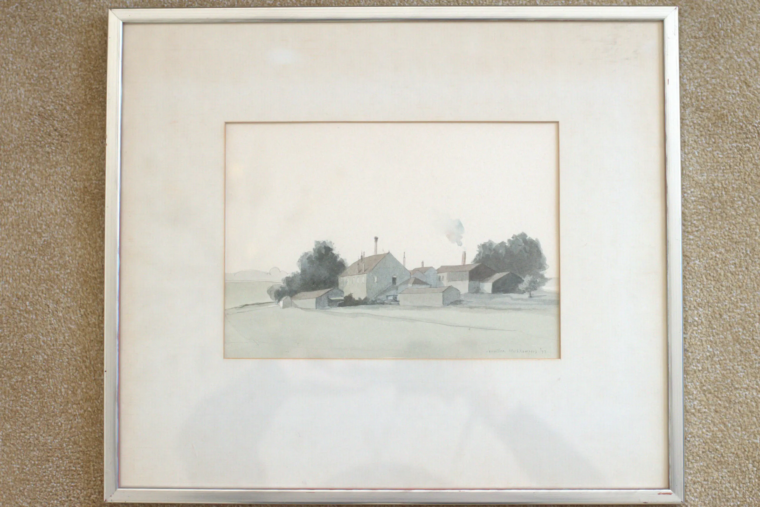 De aquarel zit in een lijst. Passepartout zie er wat minder uit. Ik heb er niet zoveel verstand van dus kan niet garanderen dat mijn meningen over de aquarel geheel kloppen.