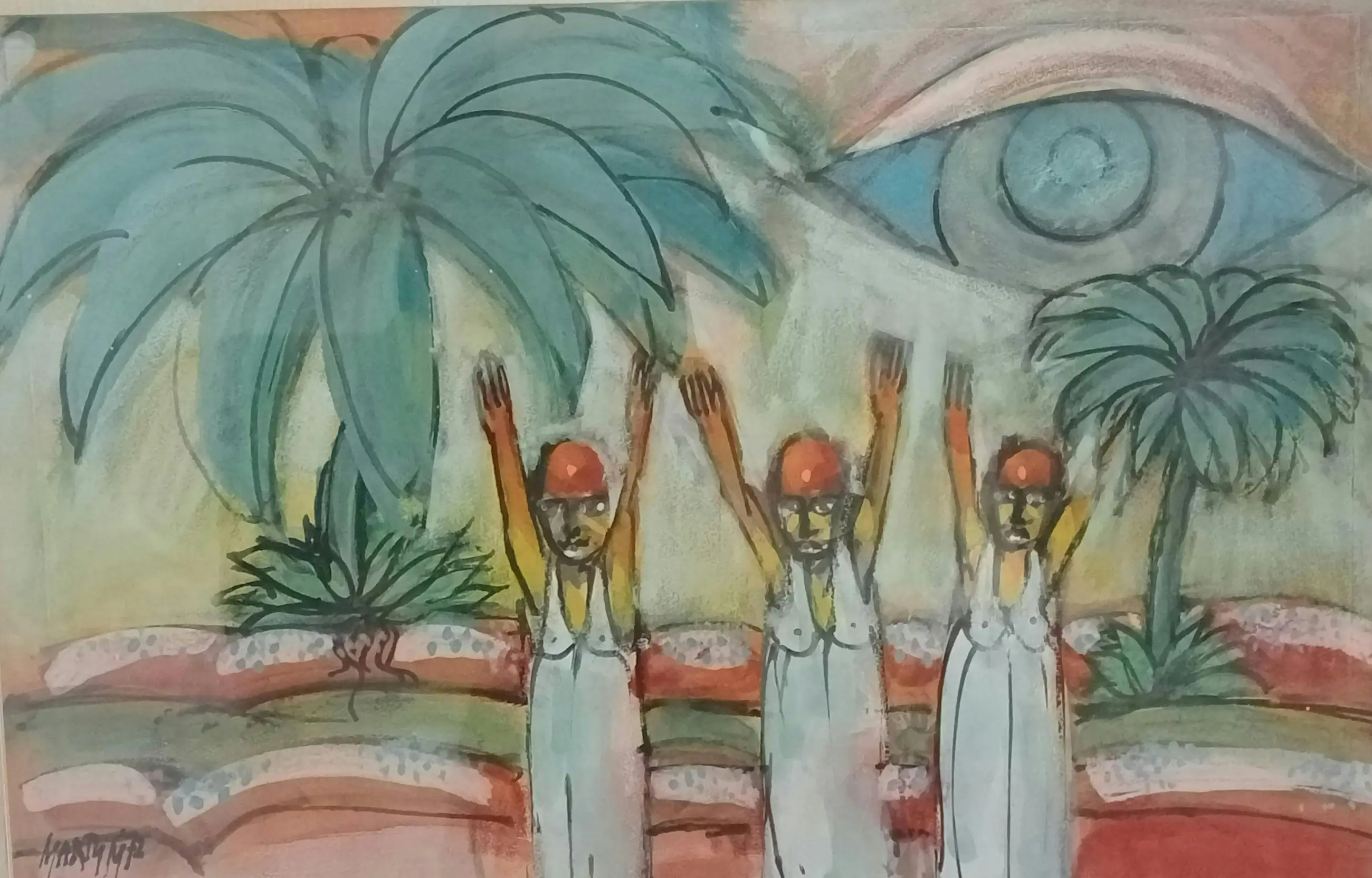 Goede staat. 2 x handgesigneerd. Lijst redelijke staat. Verkoop sticker en depot nummer achterzijde.