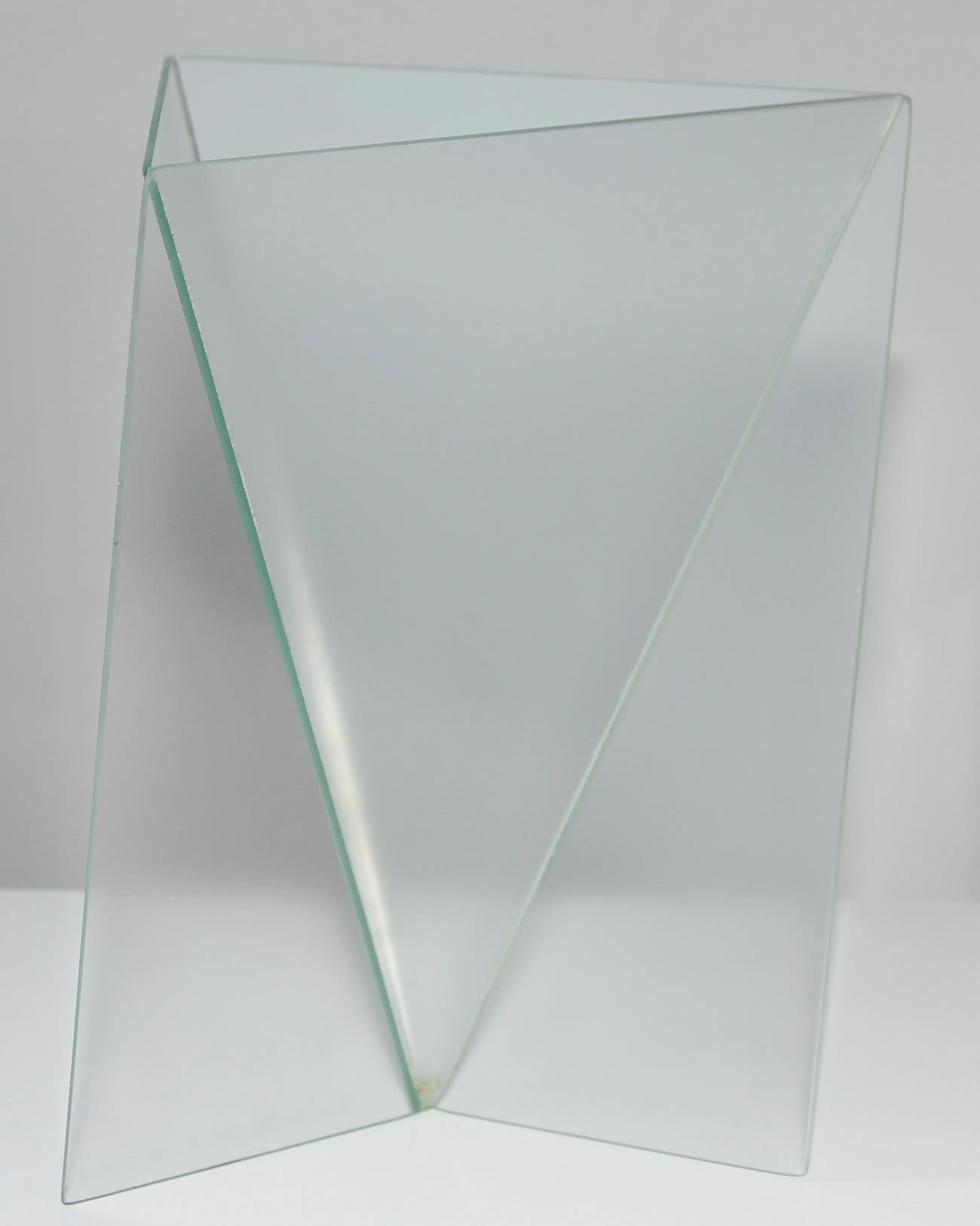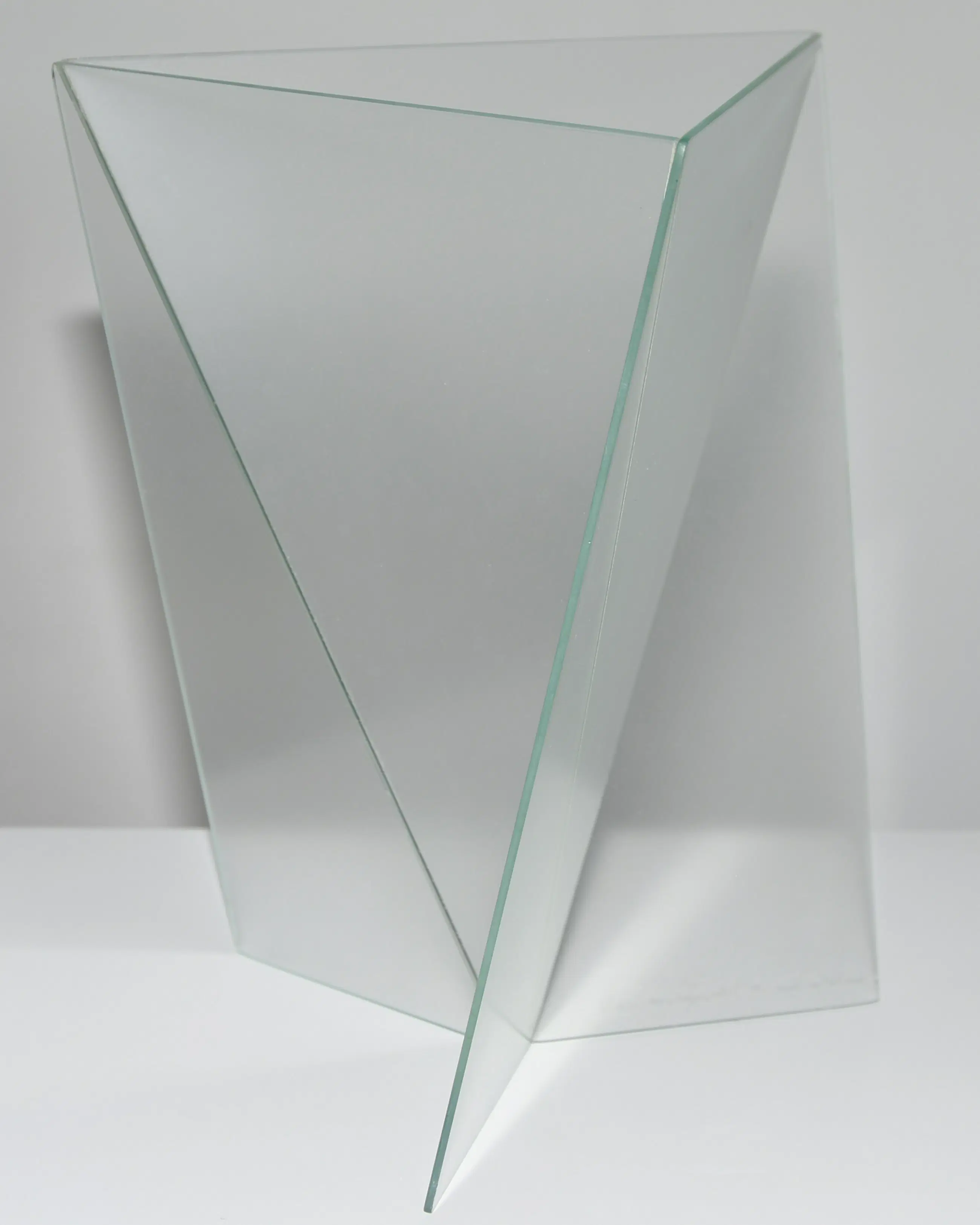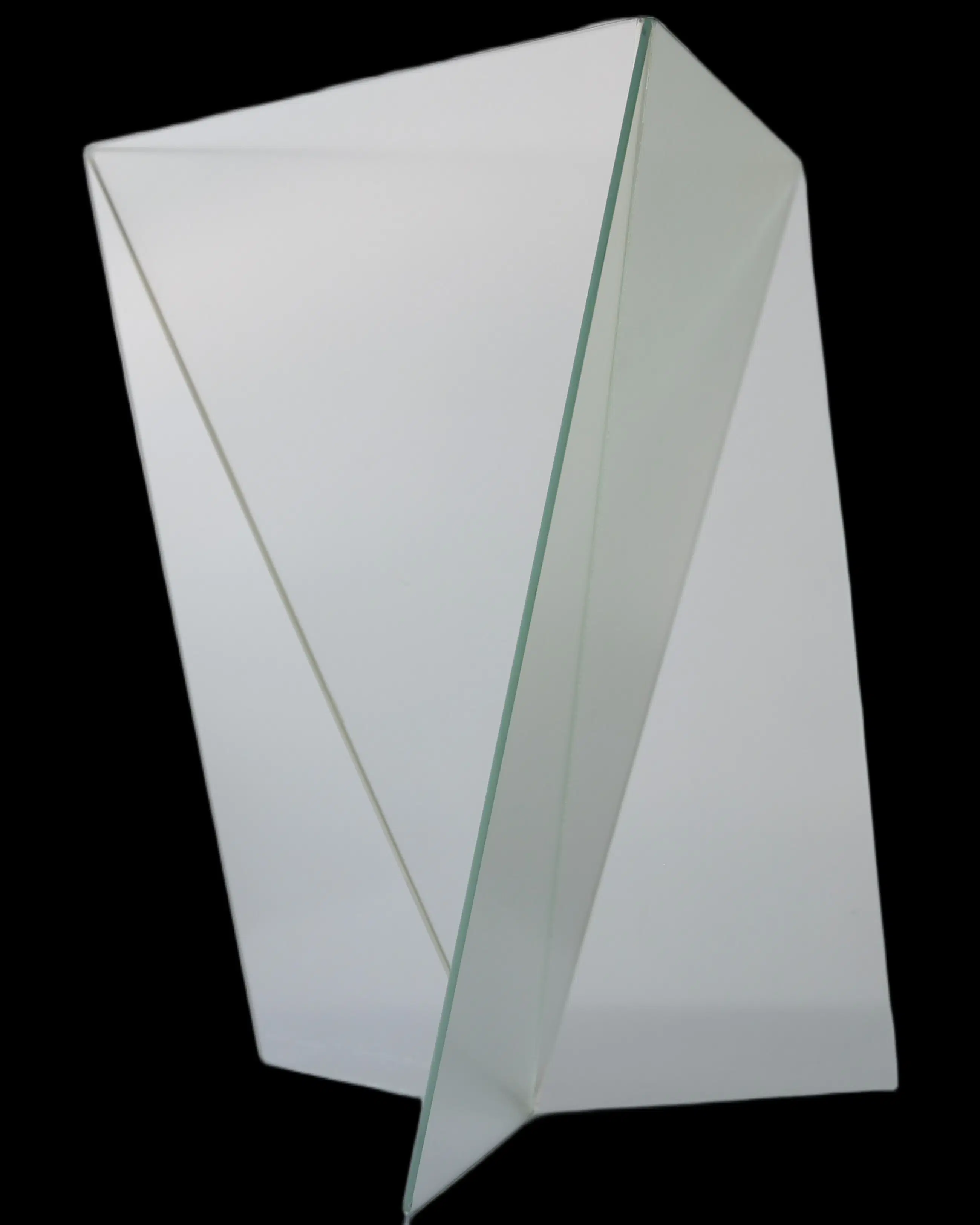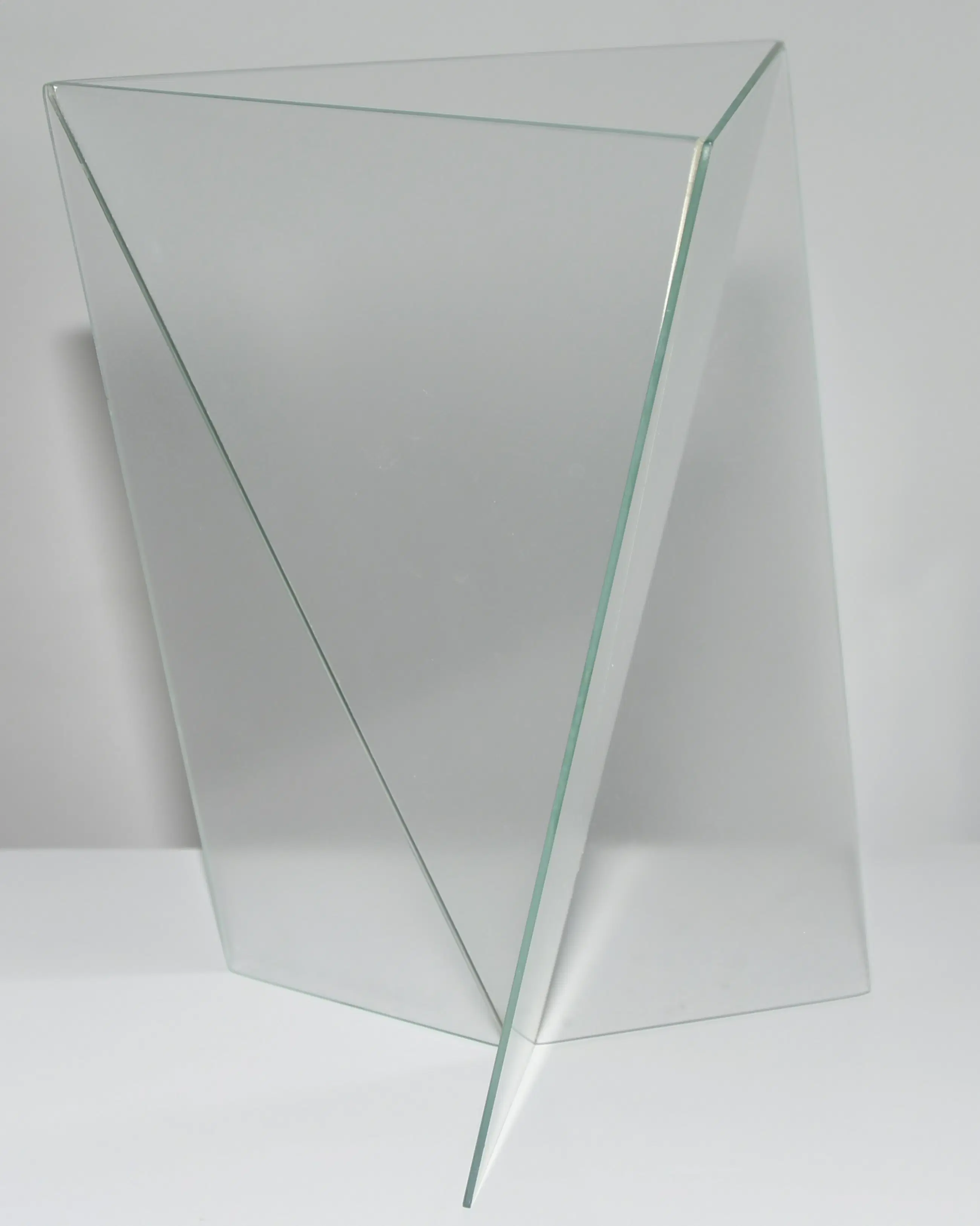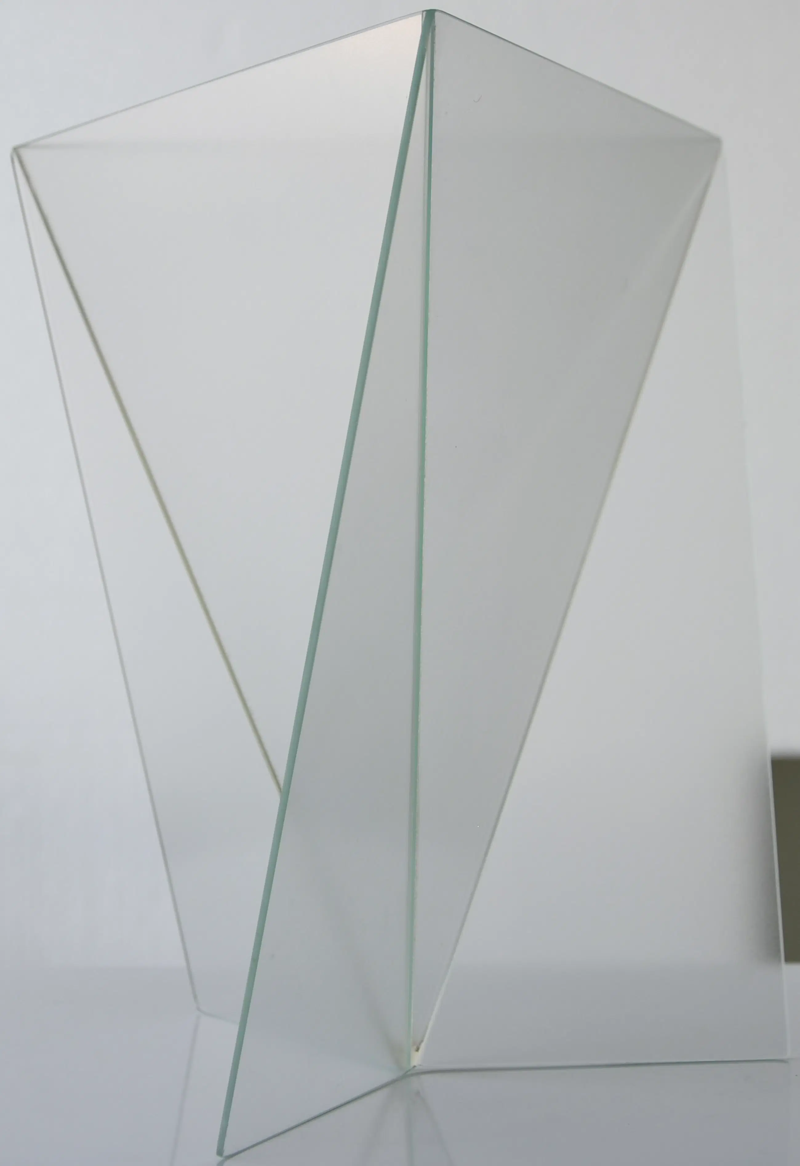 Hij had twee maanden de tijd iets te ontwerpen en uiteindelijk bleef er voor de productie slechts één week over. Glasblazen of een ander moeilijk traject was niet meer haalbaar. Hij moest anders te werk gaan, richtte zich op vlak glas en lijmde plaatjes met siliconenkit aan elkaar en daar is een prachtig en innovatief product uit ontstaan.