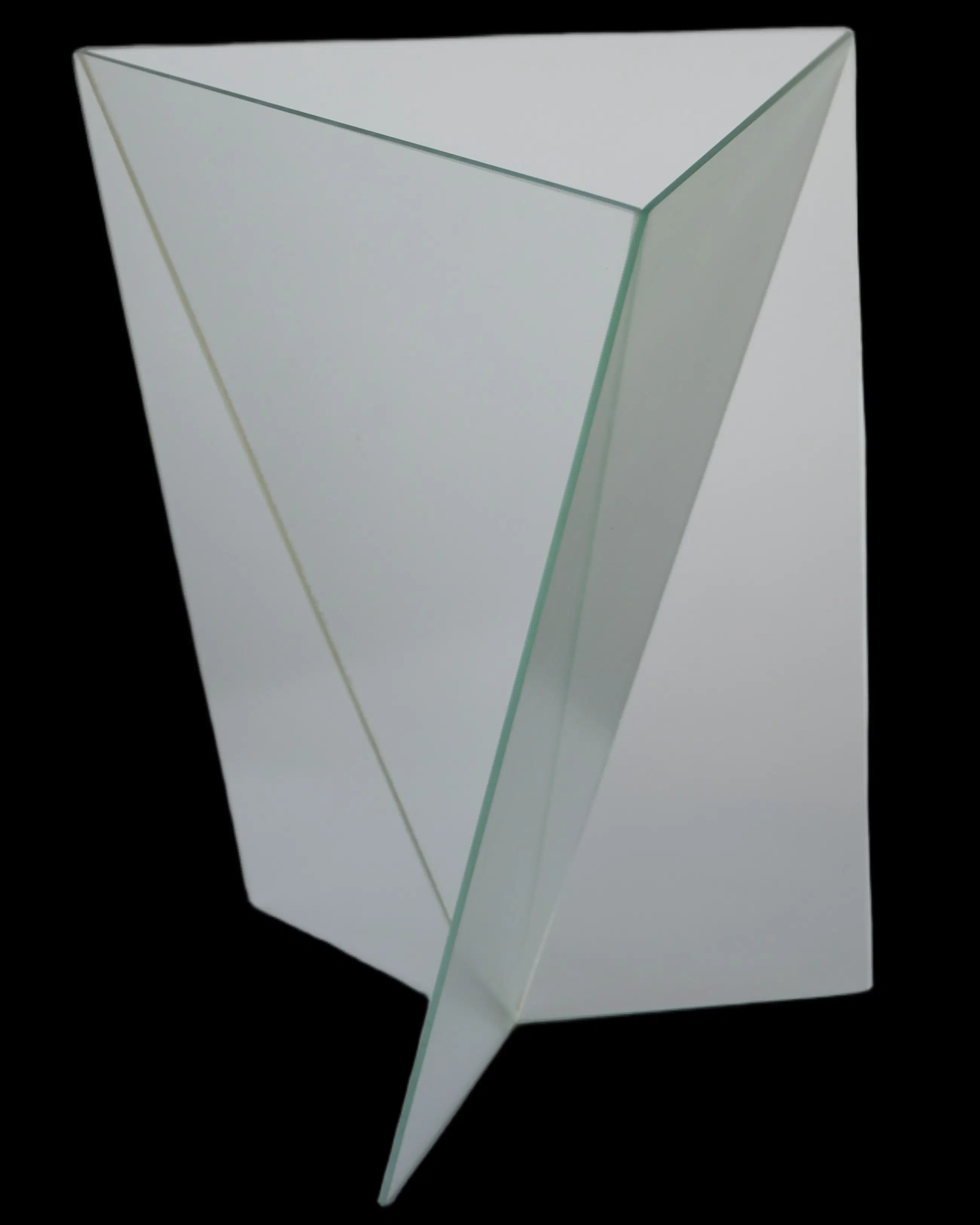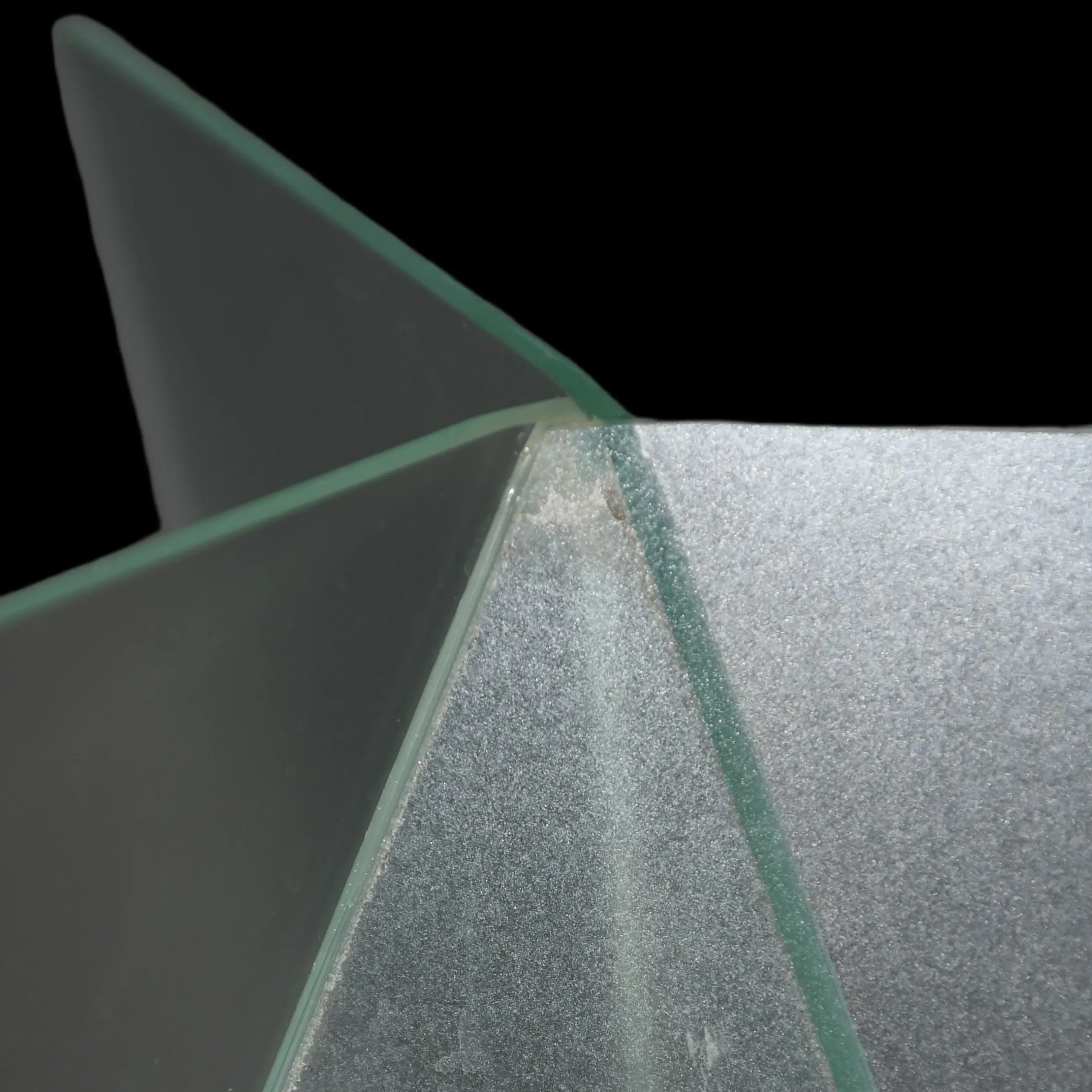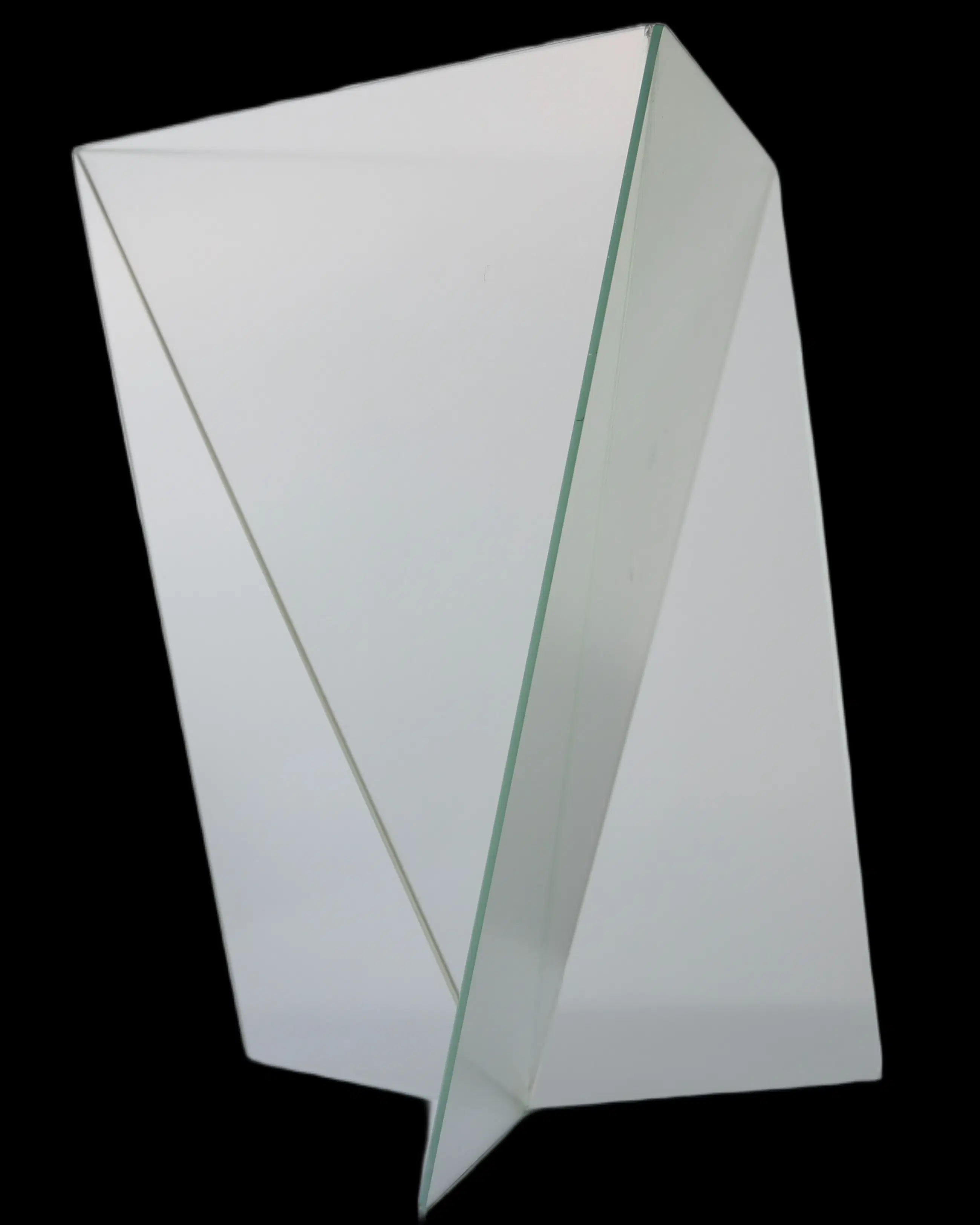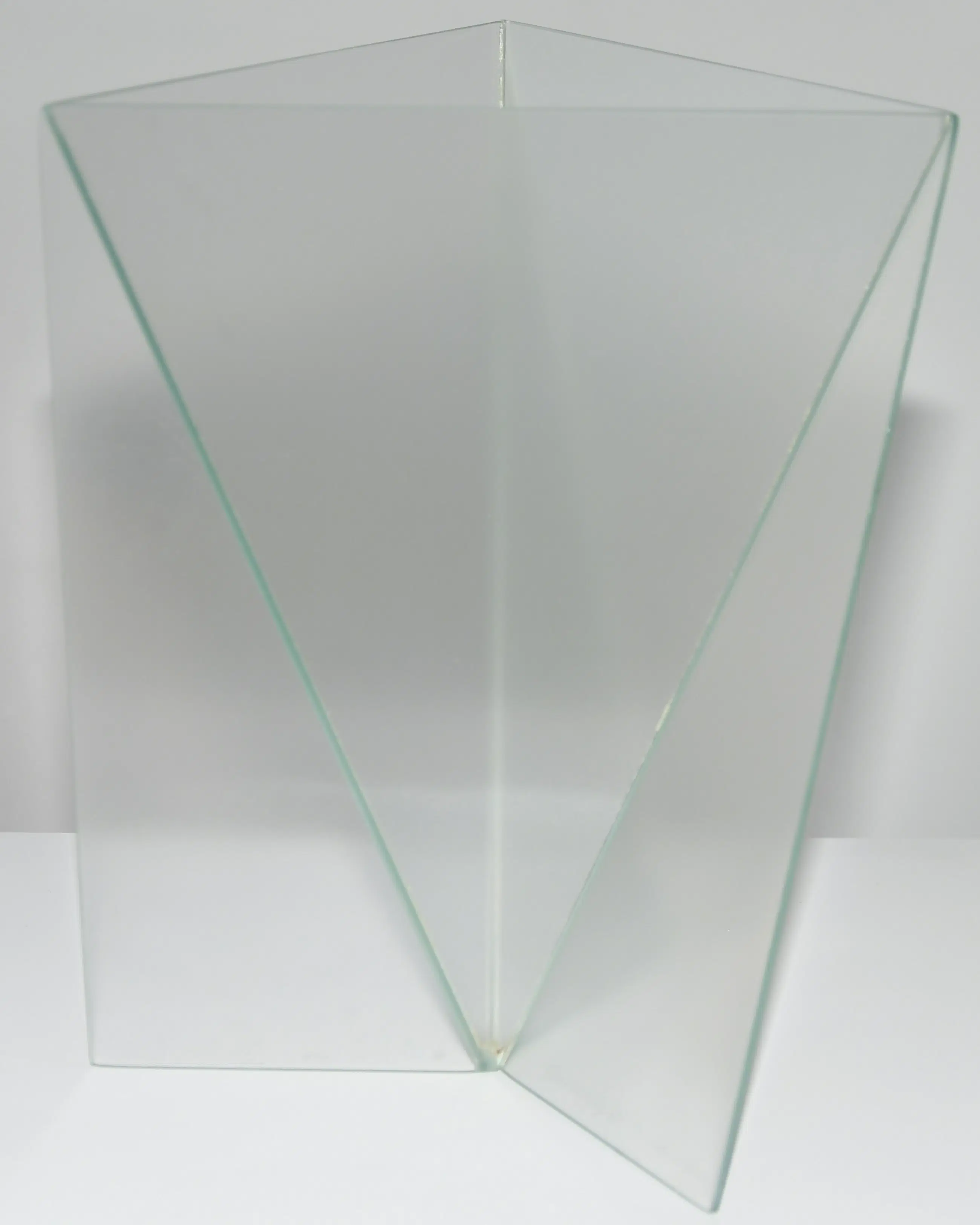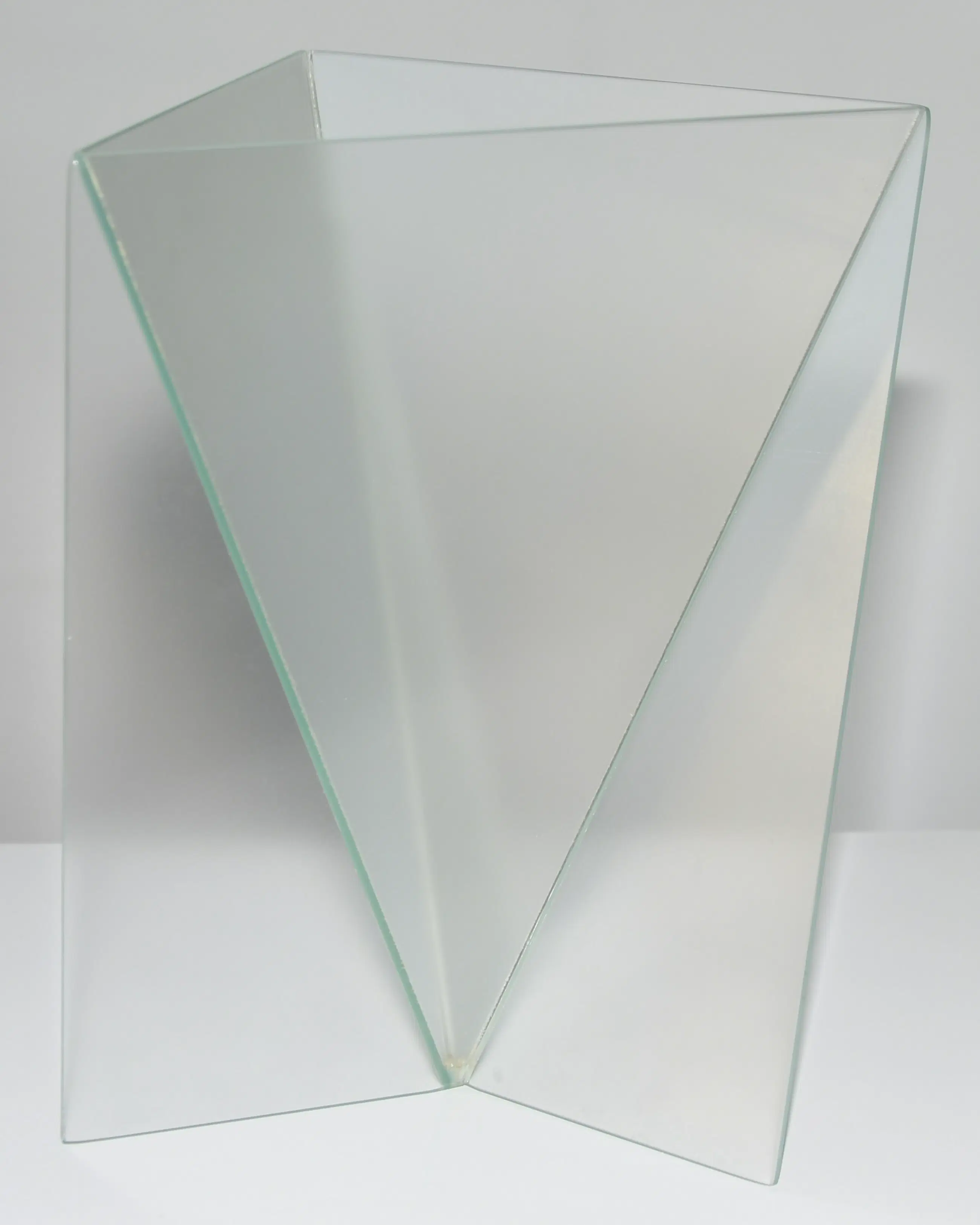 Hij had twee maanden de tijd iets te ontwerpen en uiteindelijk bleef er voor de productie slechts één week over. Glasblazen of een ander moeilijk traject was niet meer haalbaar. Hij moest anders te werk gaan, richtte zich op vlak glas en lijmde plaatjes met siliconenkit aan elkaar en daar is een prachtig en innovatief product uit ontstaan.