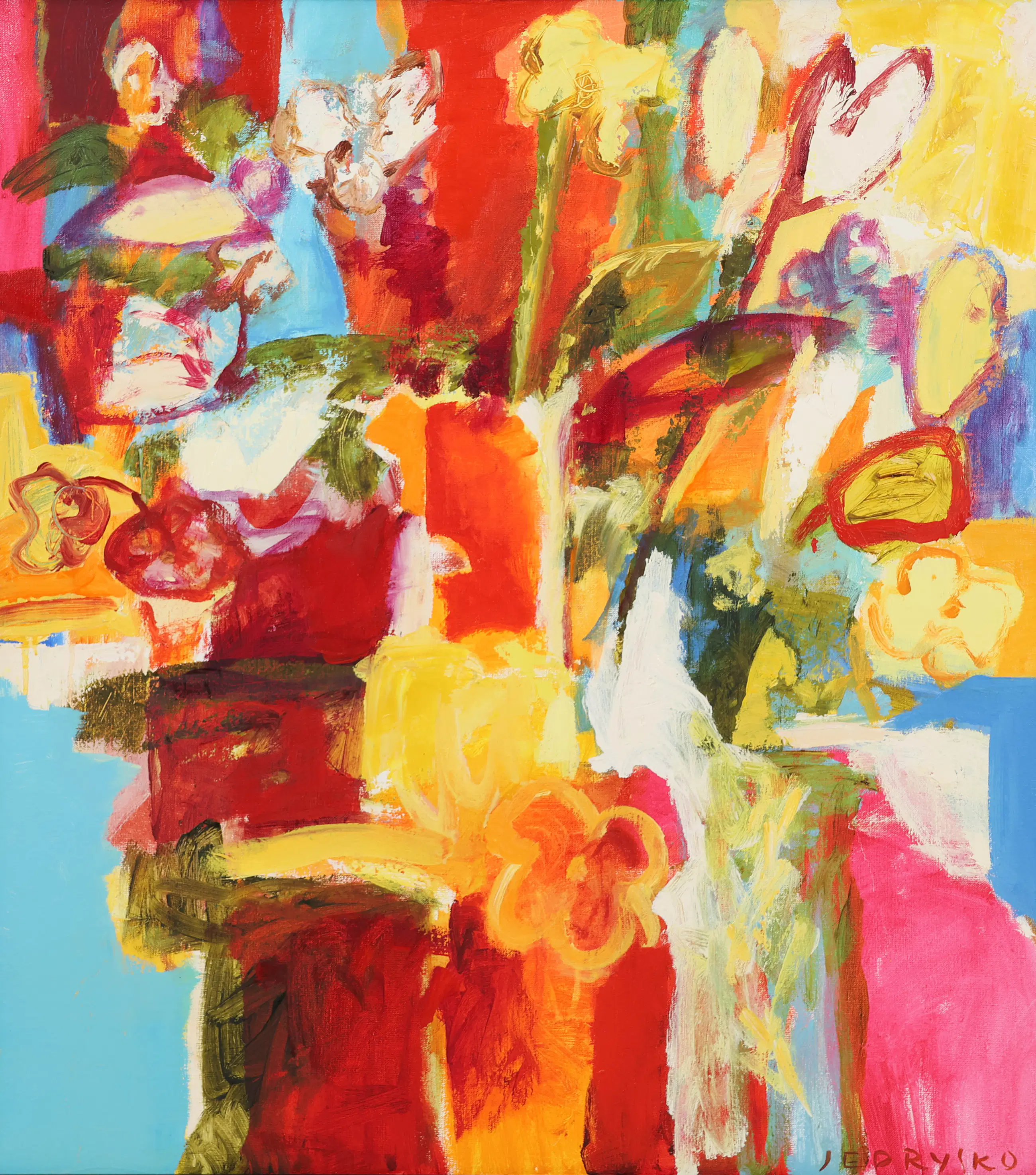 In 1985 verhuisde Jędrysko van Polen naar Nederland. Sindsdien leeft zij, naar eigen zeggen, in gedachten tussen deze twee landen. Het kostte haar vijf jaar van intensief werken en zoeken om een verbinding te vinden tussen de Poolse tradities, haar opleiding aan de kunstacademie van Krakau en haar eigen schilderkundige identiteit. De rijke schildertraditie van Nederland vormde daarbij een belangrijke inspiratiebron. Deze culturele wisselwerking tussen haar Poolse achtergrond en haar leven en werk in Nederland is duidelijk voelbaar in haar oeuvre.