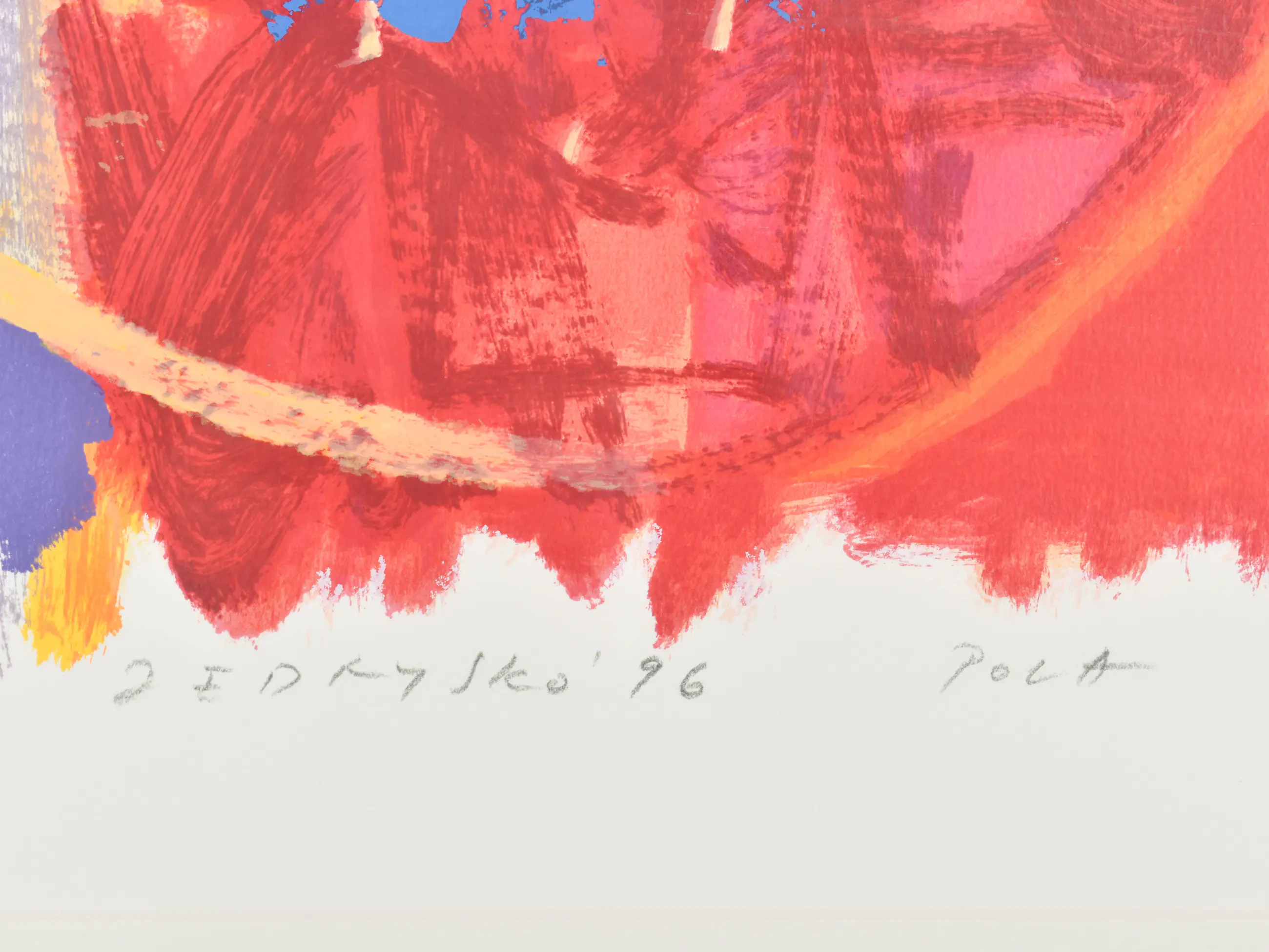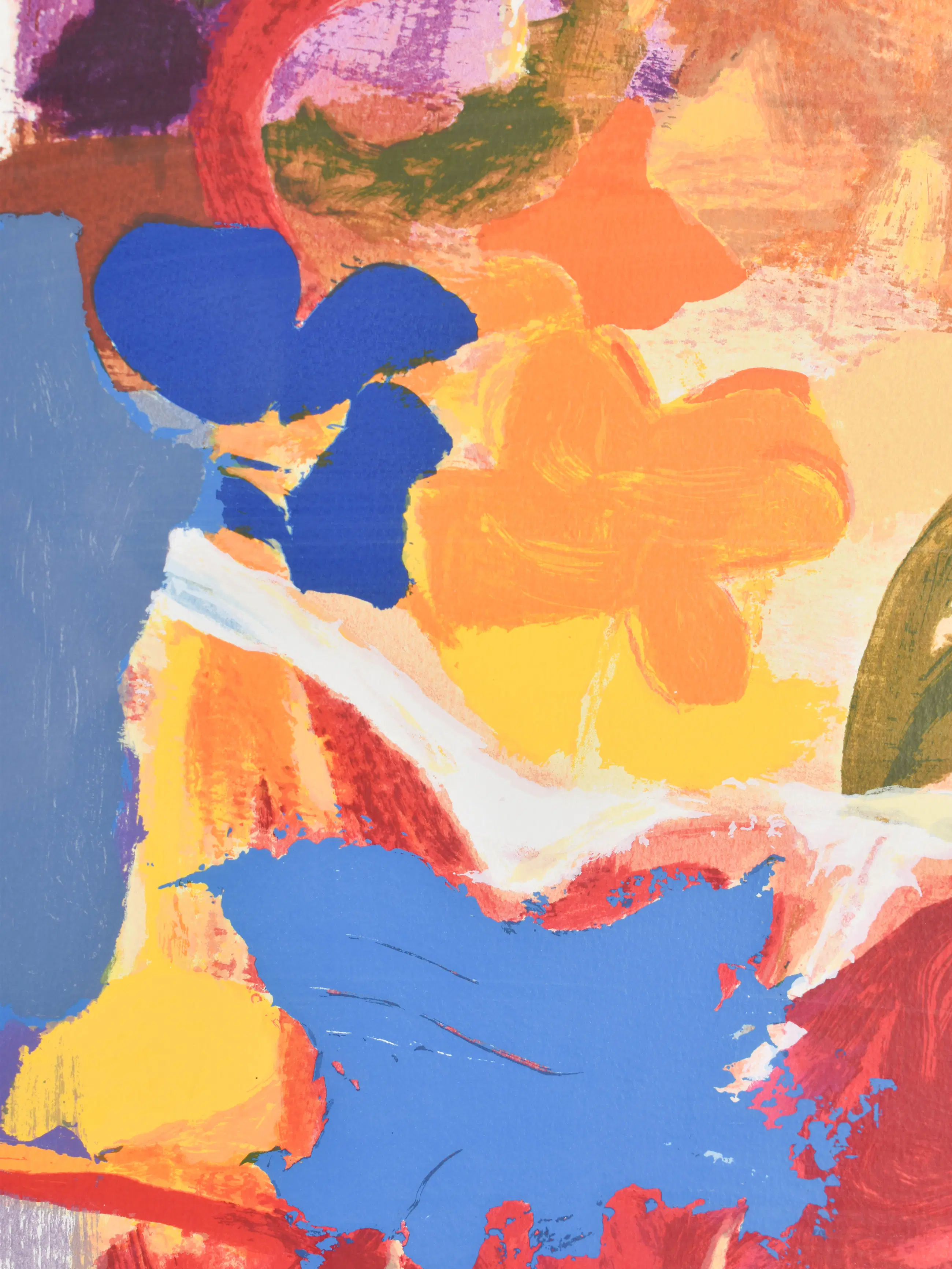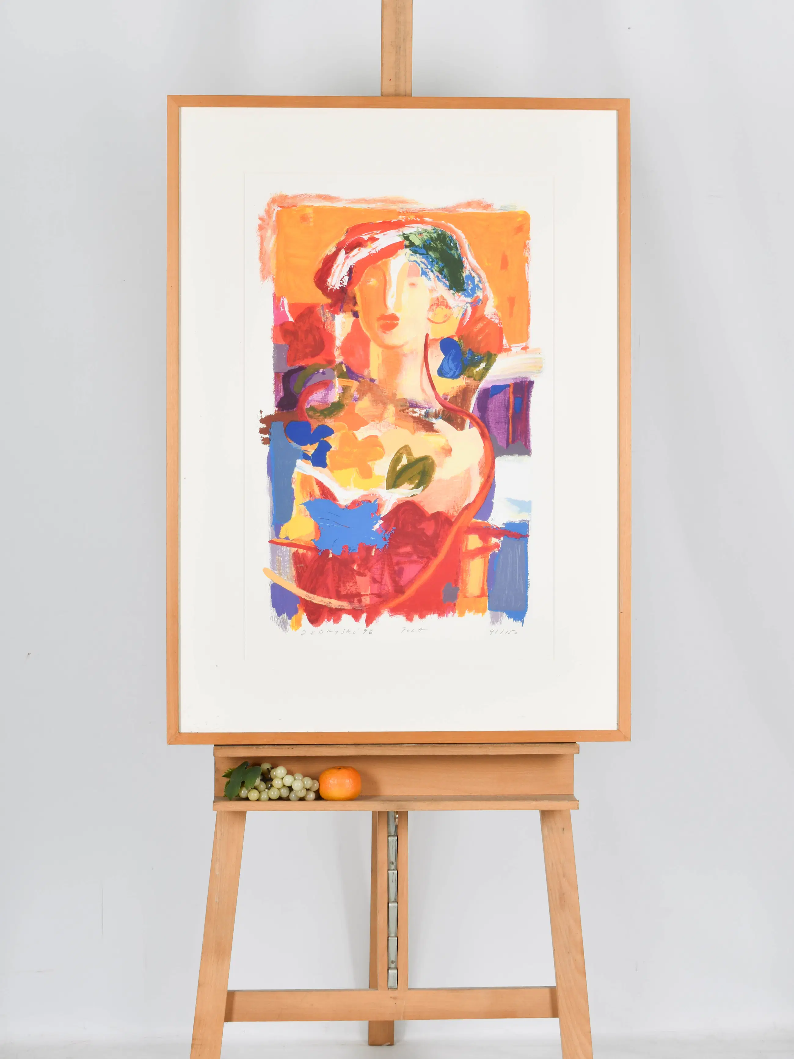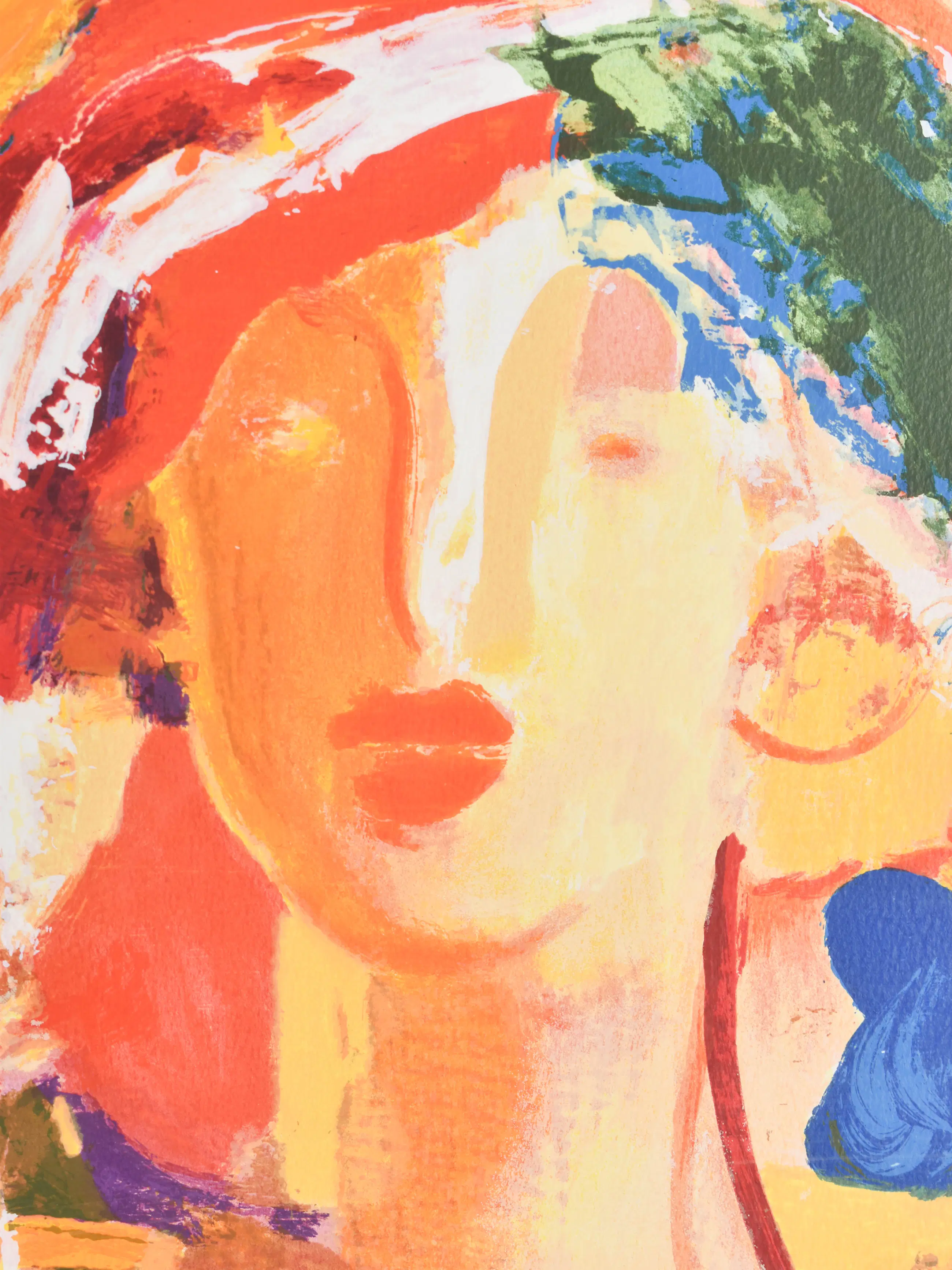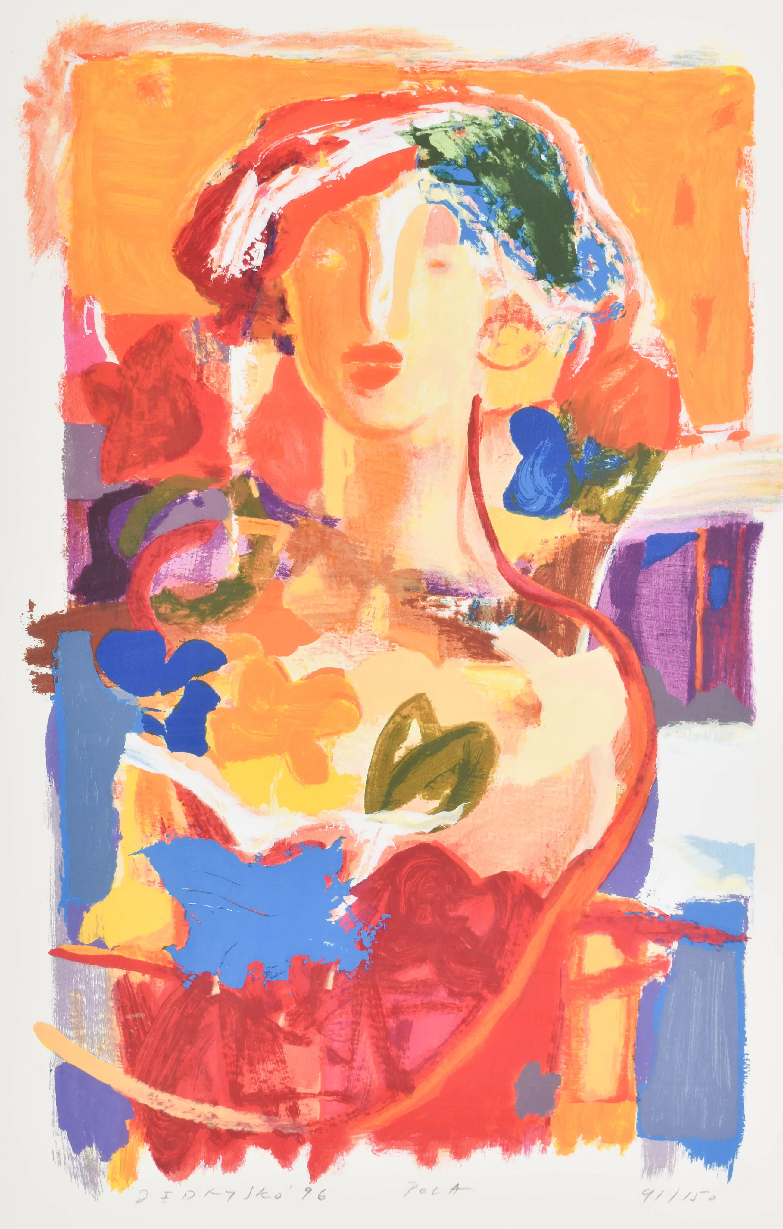 Deze vrolijk gekleurde litho toont een vrouwelijk figuur en is gemaakt door Marta Jedrysko (1959). Haar werk kenmerkt zich door een werveling van felle en warme tinten, waardoor een levendige, bijna zomerse sfeer ontstaat. Jedrysko studeerde cum laude af aan de kunstacademie in Kraków en verhuisde in 1985 naar Nederland. In de loop der jaren ontwikkelde zij zich van abstract expressionist tot een kunstenaar met een warme, bijna impressionistische stijl. Ze combineert realistische tekenvaardigheid met kleurrijke abstractie en staat bekend om haar expressieve, kleurrijke portretten waarin kleurvlakken rust en nadruk geven aan de compositie.