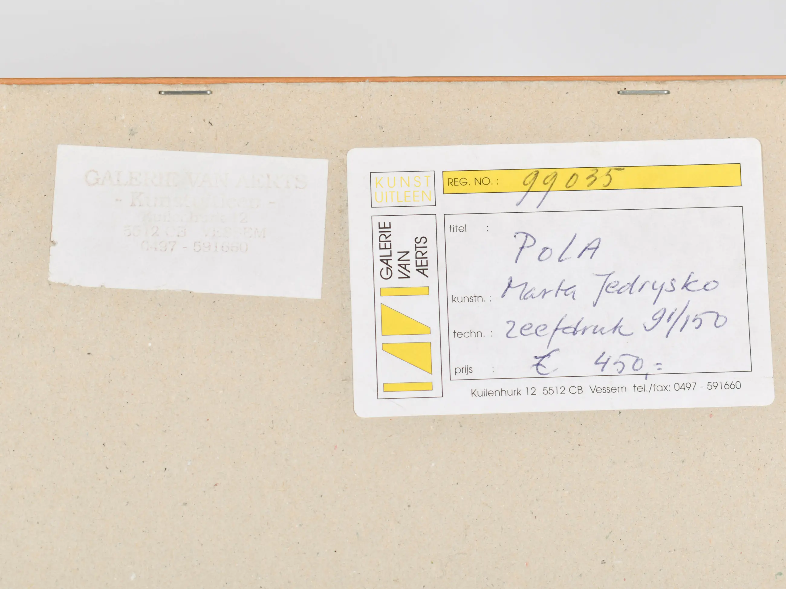 Ben u niet in staat om een werk zelf af te halen, dan kunt u een koeriersdienst inschakelen om het werk te laten afhalen. Klik hier voor meer informatie over hoe dit werkt en bekijk de tarieven.