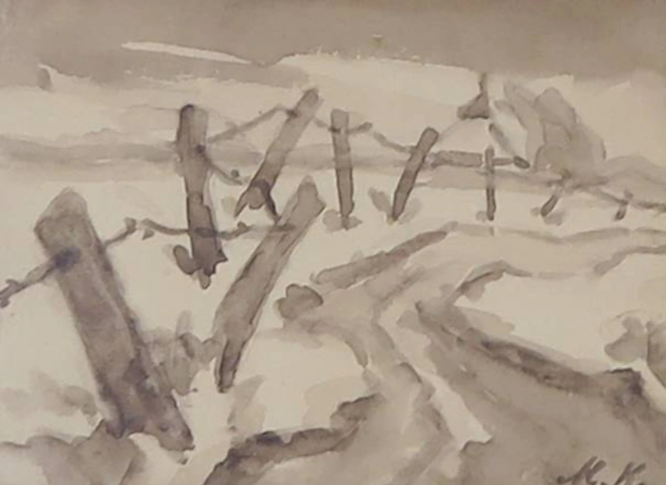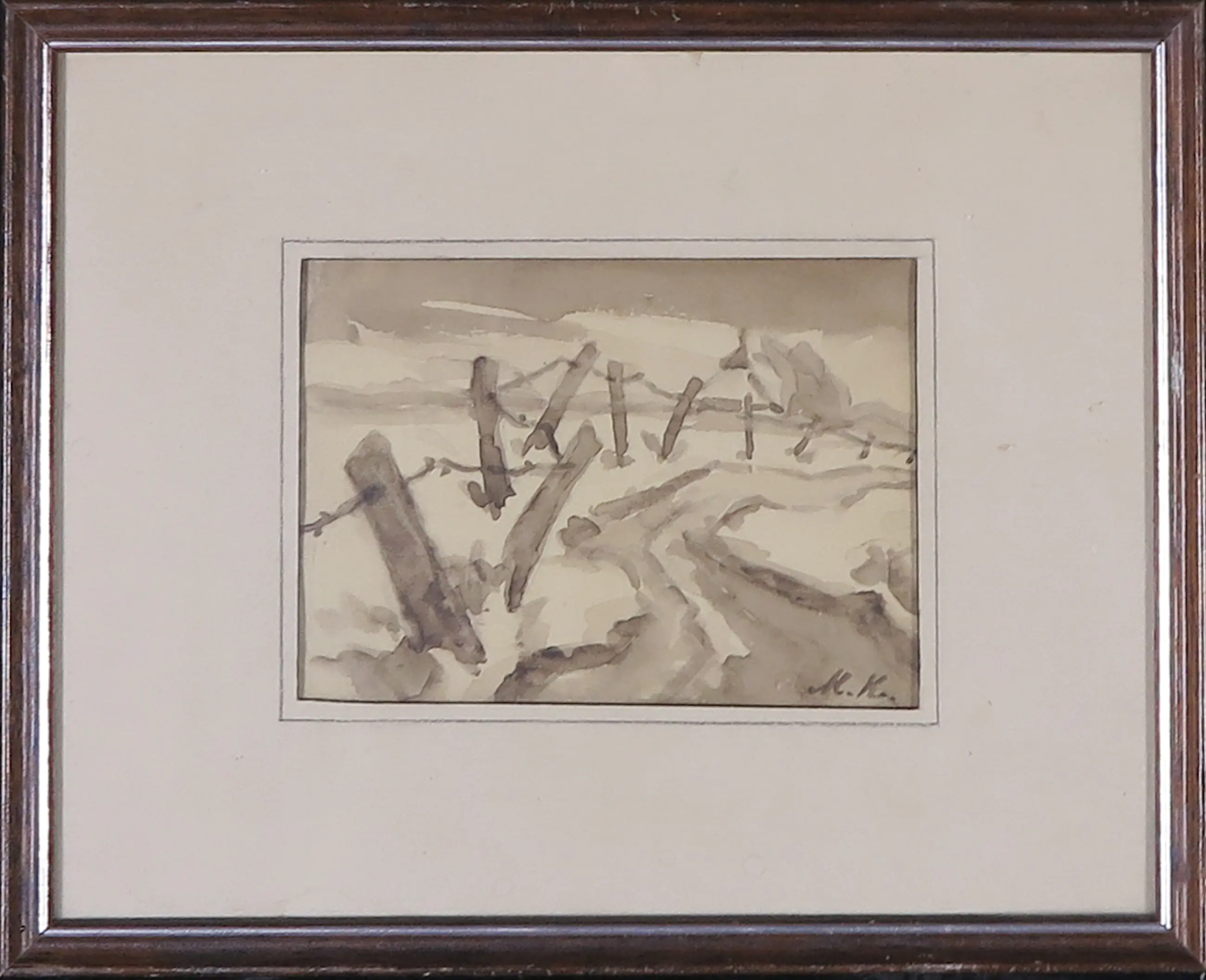 Marten Klompien - Inkttekening, Pad door landschap - Verkocht