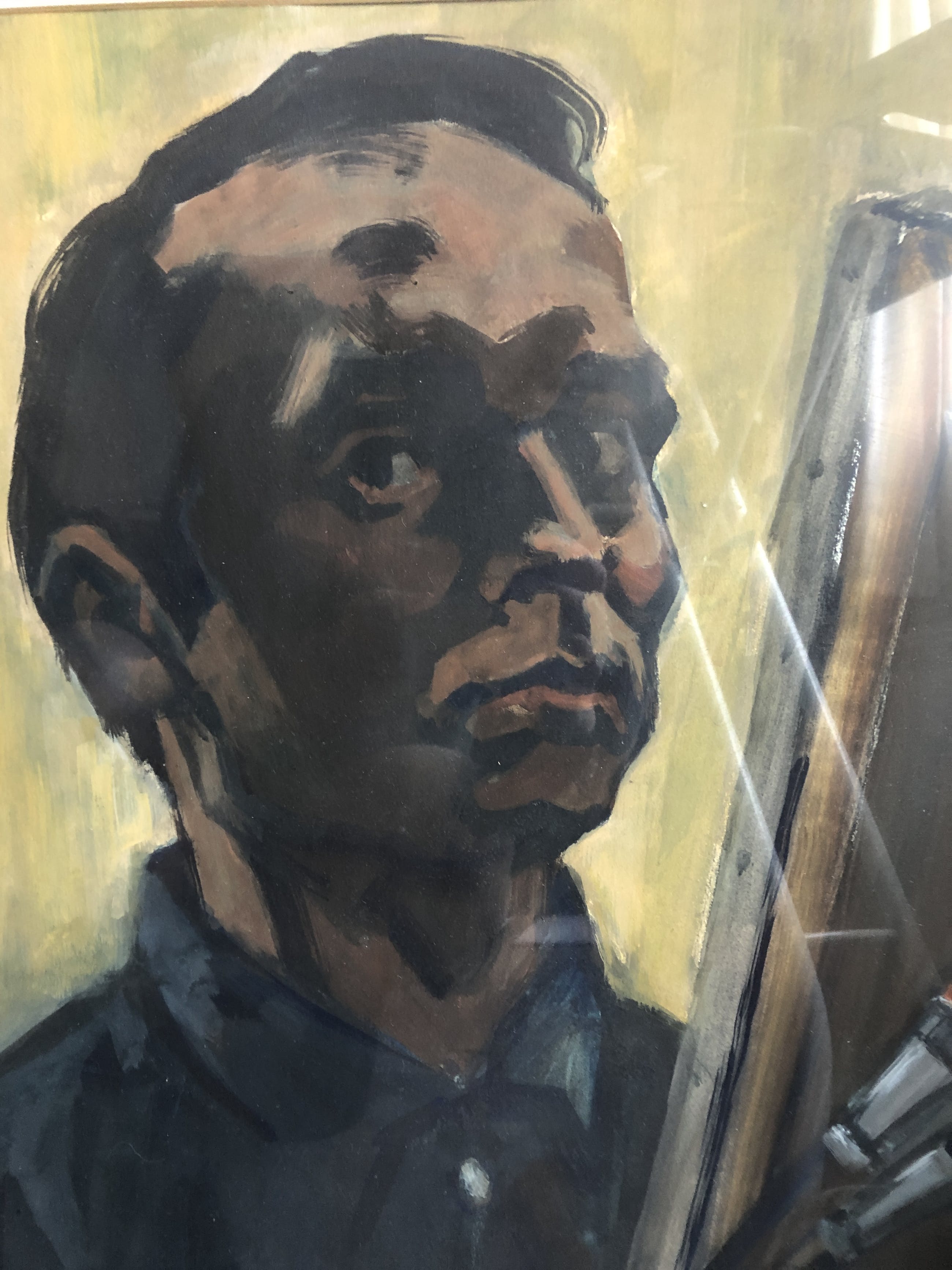 Zeer bijzonder sprekend portret van de kunstschilder Marten Klompien zelf, tegenlicht in prachtig contrast geschilderd.