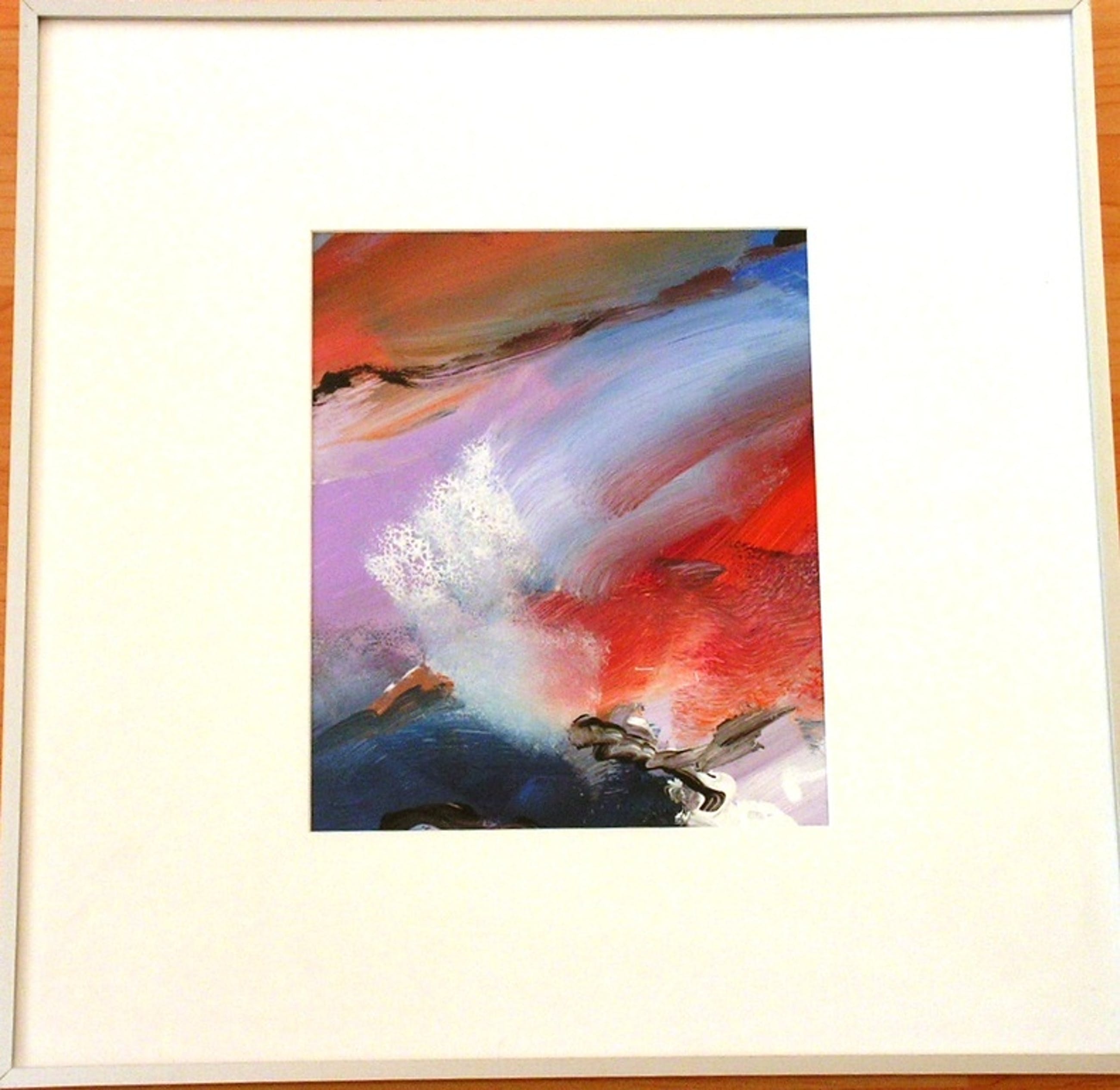 In heldere kleuren, vlot op papier in acryl verf. Zonder titel, gesigneerd linksonder.
