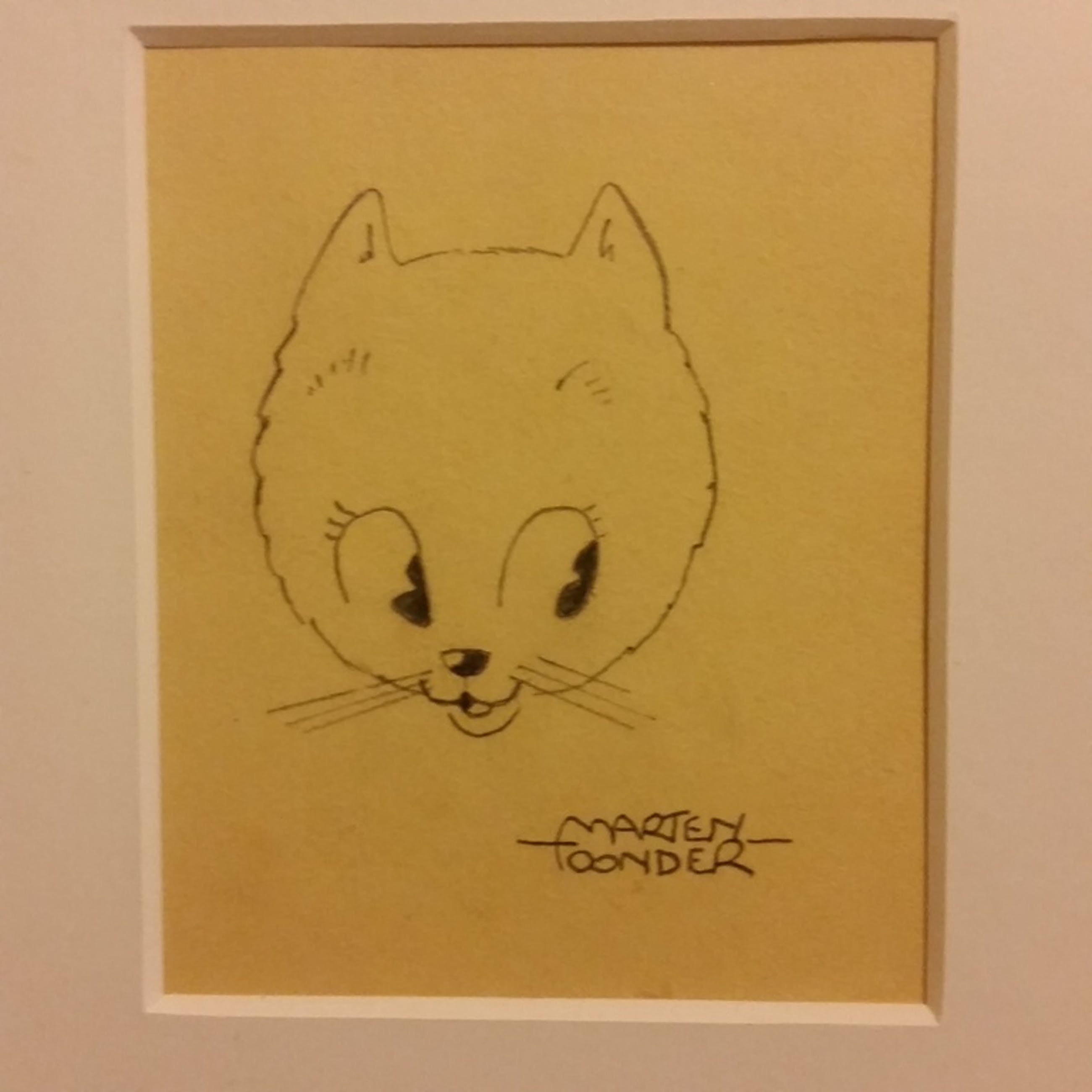 Marten Toonder Tom Poes potlood of houtskool tekening uit de jaren 40 op dik schilders karton fan tekening met achterkant een stempel , in zeer goede staat is proffesioneel stofvrij gemaakt