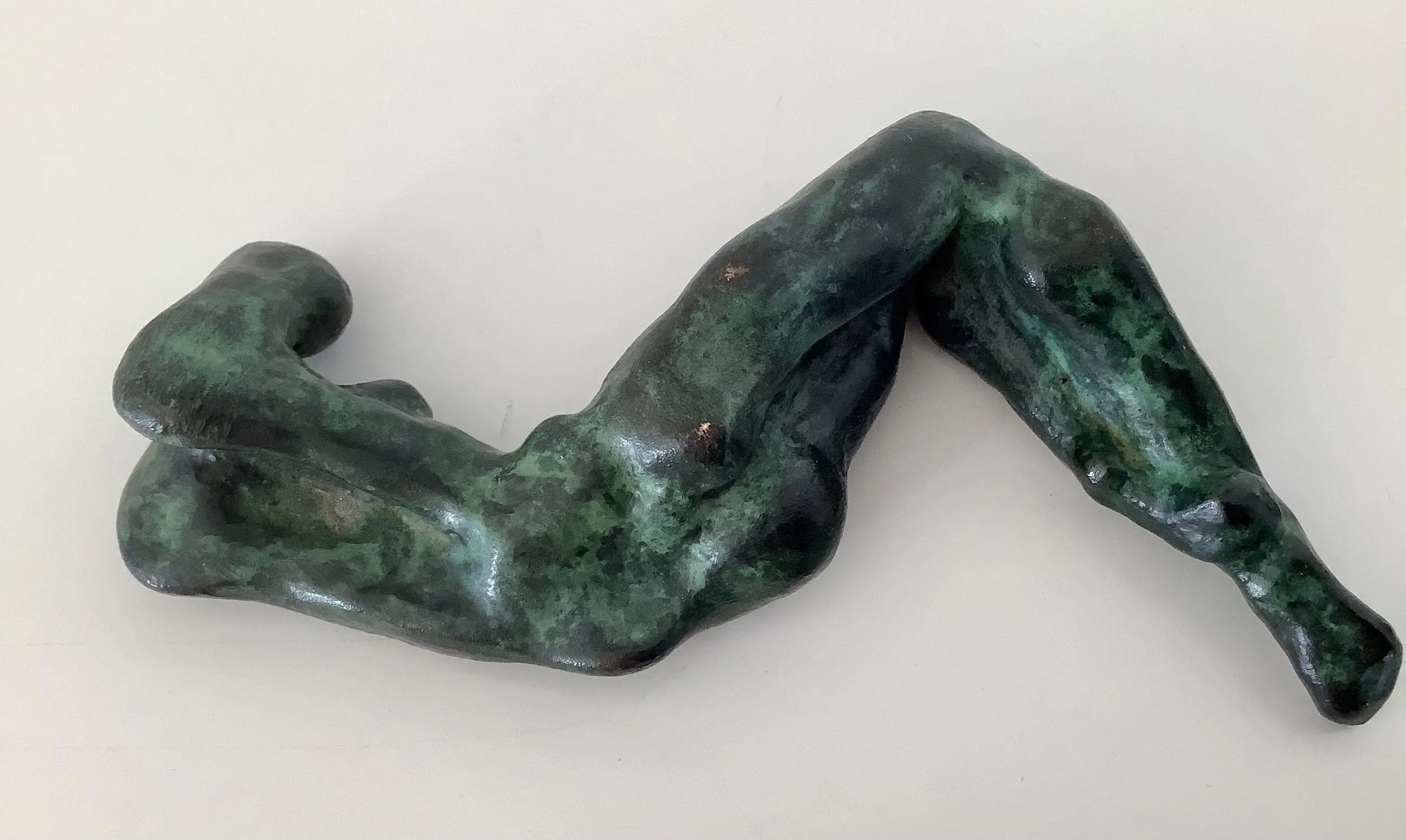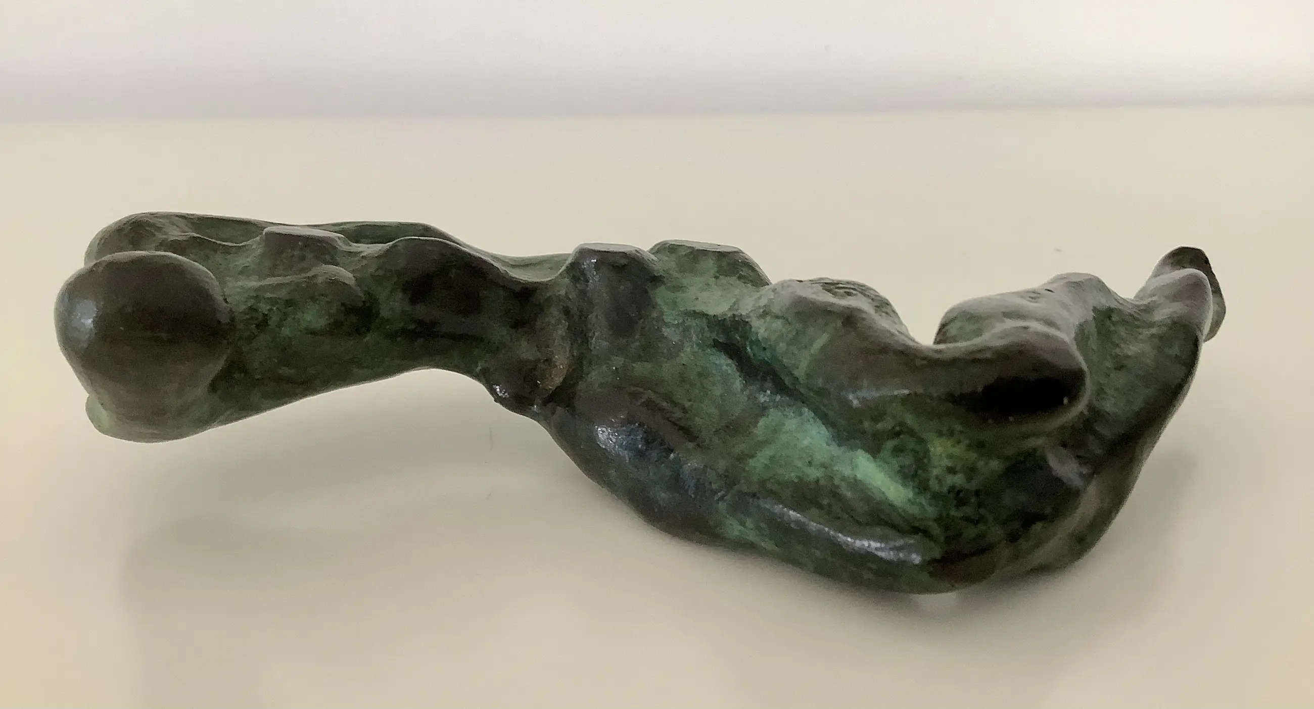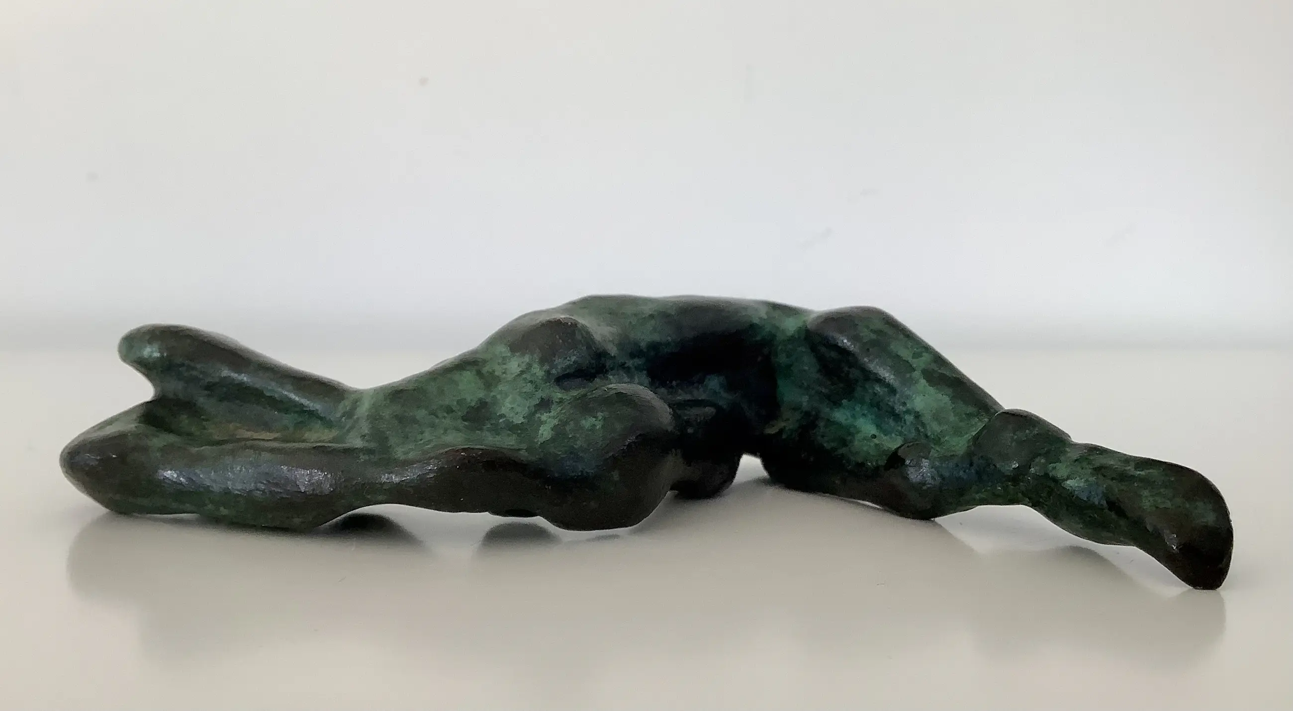 Massief bronzen sculptuur van een bijna abstract liggend naakt. Fraaie dramatische voorstelling met mooie patina.