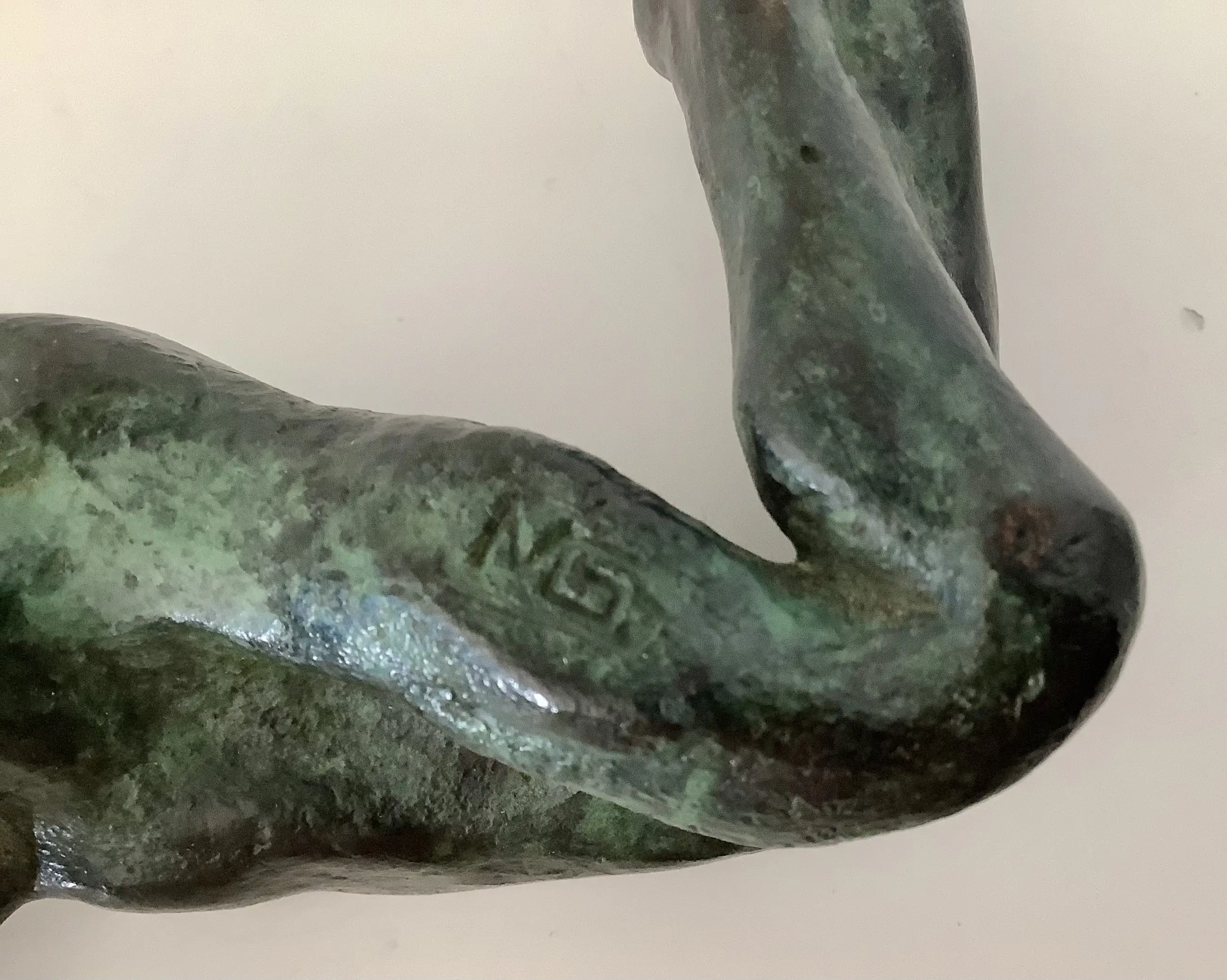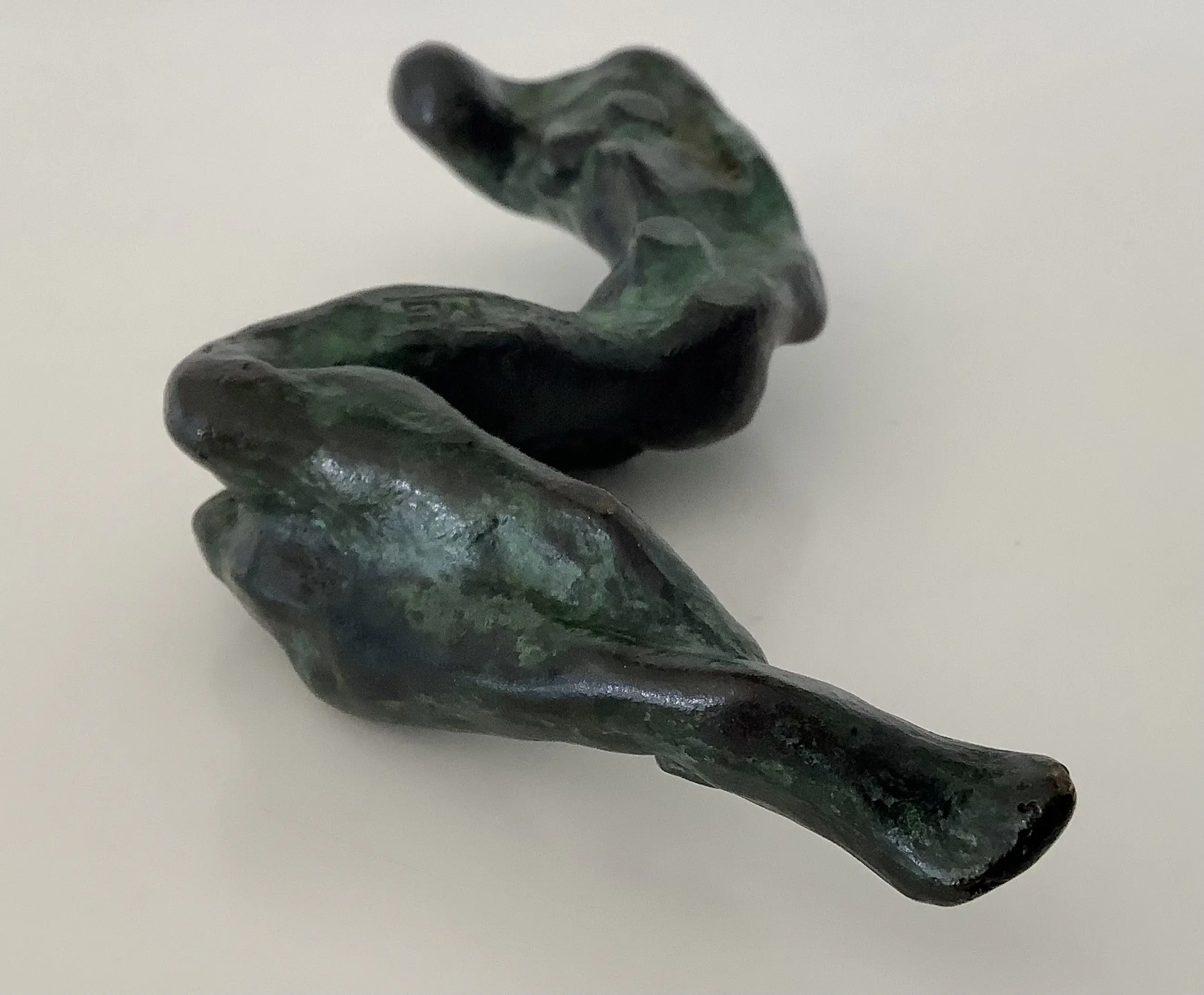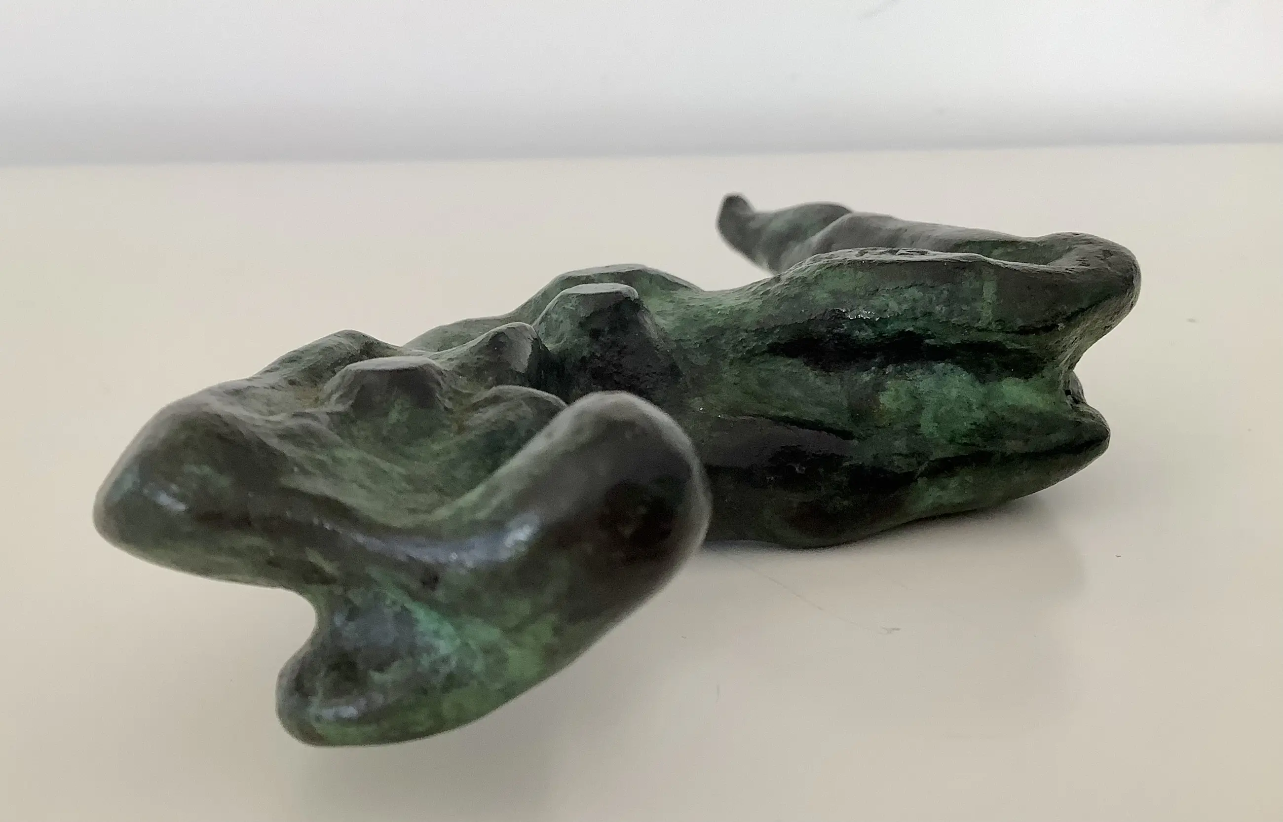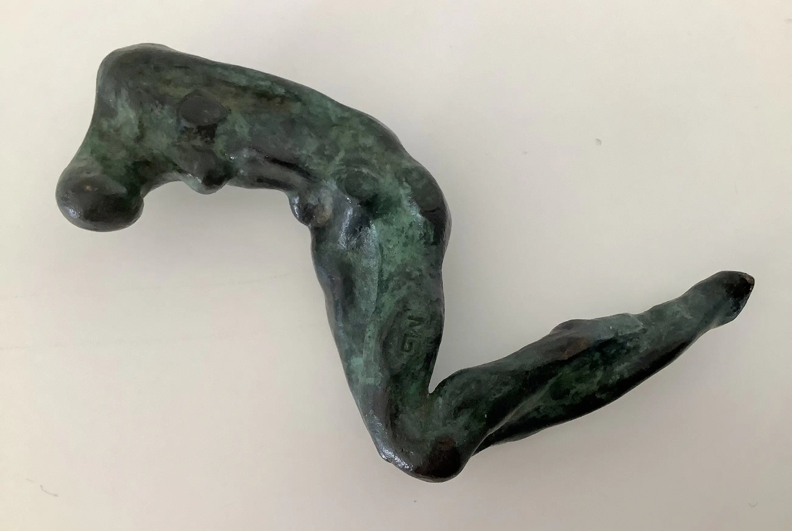 Massief bronzen sculptuur van een bijna abstract liggend naakt. Fraaie dramatische voorstelling met mooie patina.