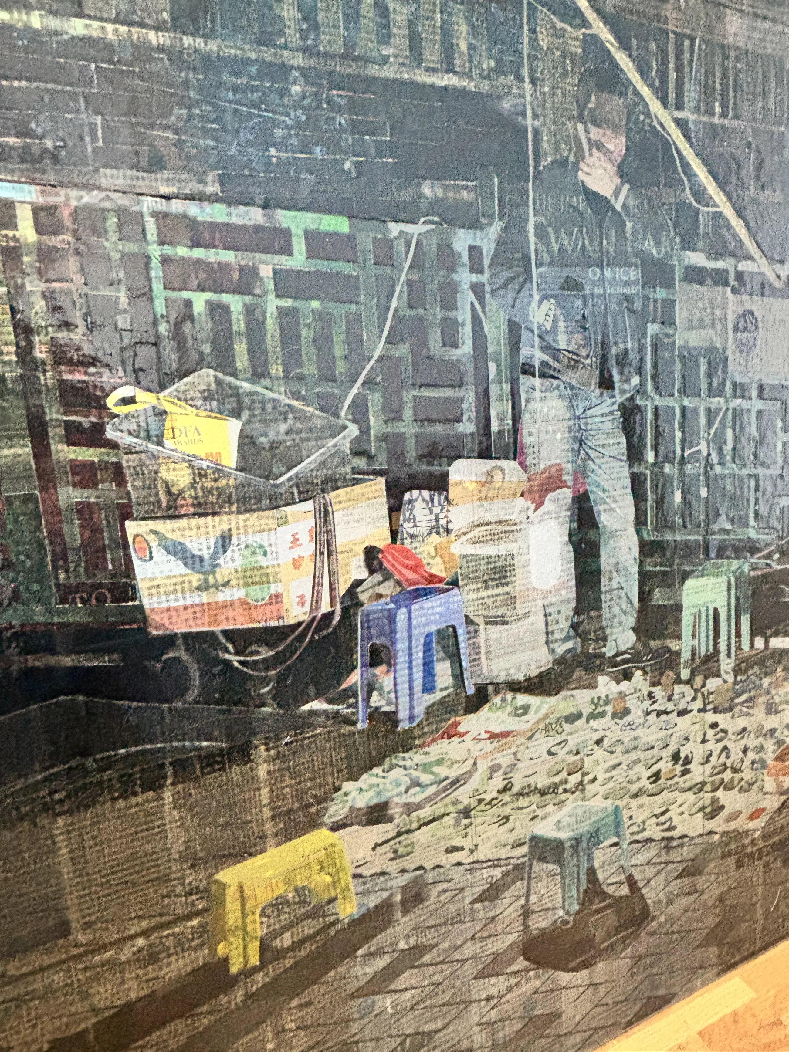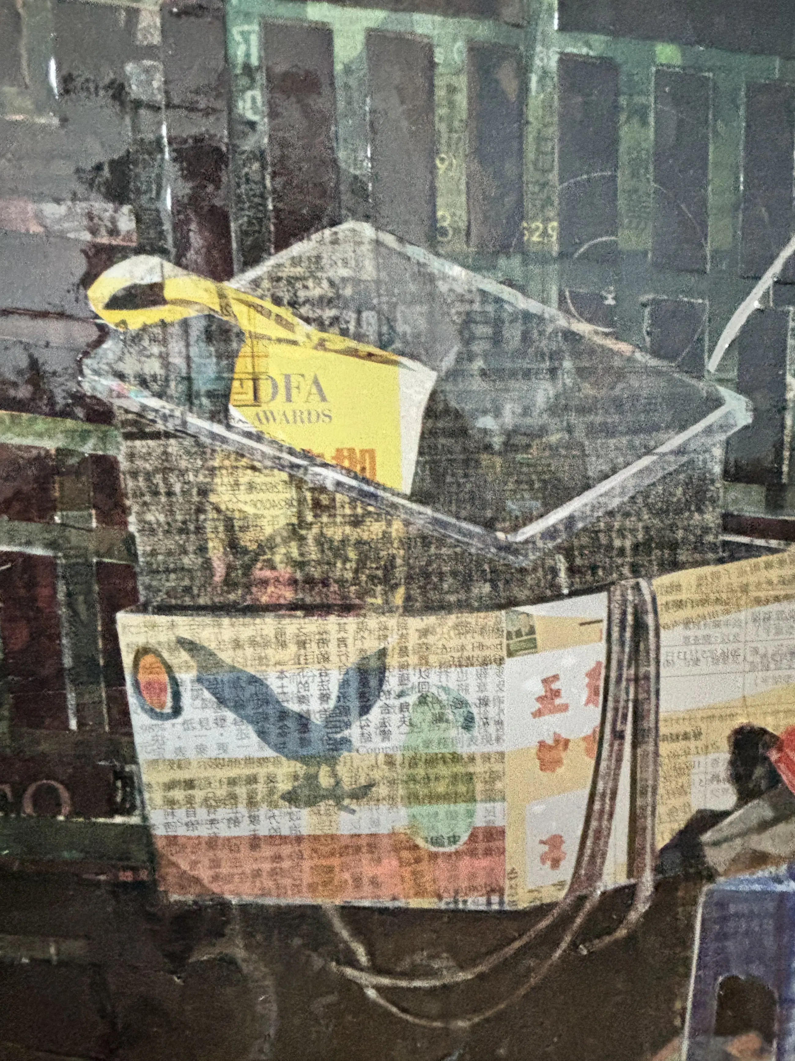 De techniek gebruikt door Martijn Hesseling is een eigen techniek waarbij kranten de plaats van verf hebben ingenomen. De kranten zijn behandeld met lak op transparant plexiglas. Het papier van de kranten wordt doorzichtig door de lak, hierdoor ontstaat de illusie van diepte in een twee-dimensionaal vlak, dat ook in de schilderkunst te vinden is. De kunstwerken bestaan uit reliëf, overlapping en juxtapositie van de kranten, maar er wordt tevens een nieuw beeld opgebouwd. Dit komt door de transparantie van de achtergrond en de dikte van de aangebrachte lagen. Zo krijgen de kranten waarmee de collage is opgebouwd ook de kwaliteit van verf. Vandaar dat het werk, ondanks de afwezigheid van verf en linnen als een voortzetting van de schilderkunst is te zien. De afbeeldingen en teksten uit een krant representeren een ander gevoel van realiteit dan verf. Ze vullen het beeld met onderhuids leven. Van dichtbij gezien krioelen de letters, koppen en beelden door elkaar, soms in harmonie, soms chaotisch en elkaar verdringend, maar uiteindelijk vormen ze samen één beeld.