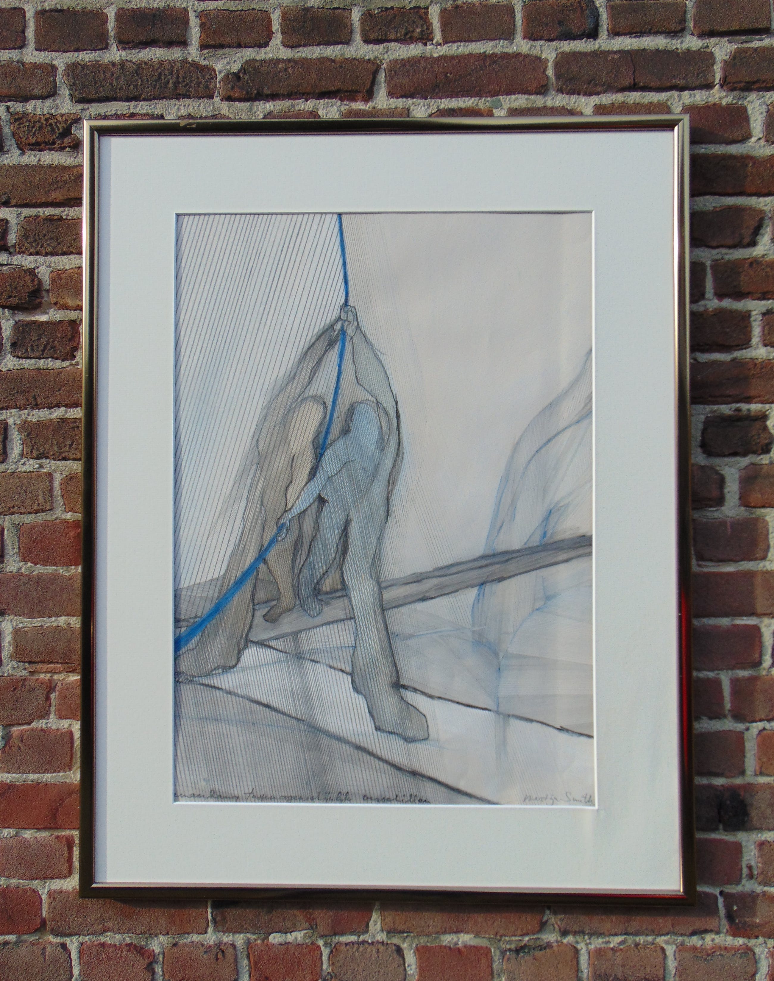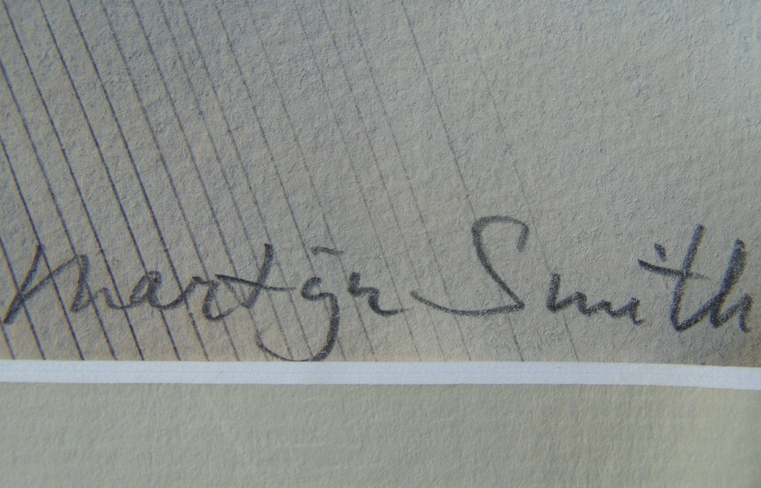Dit werk is rechtsonder gesigneerd. Het werk is ingelijst met passe-partout en zit achter glas.