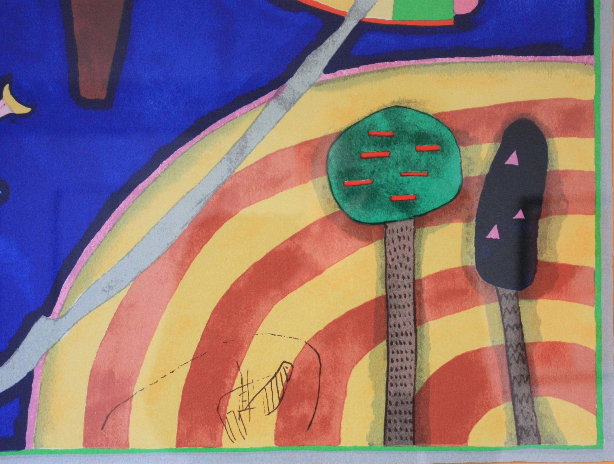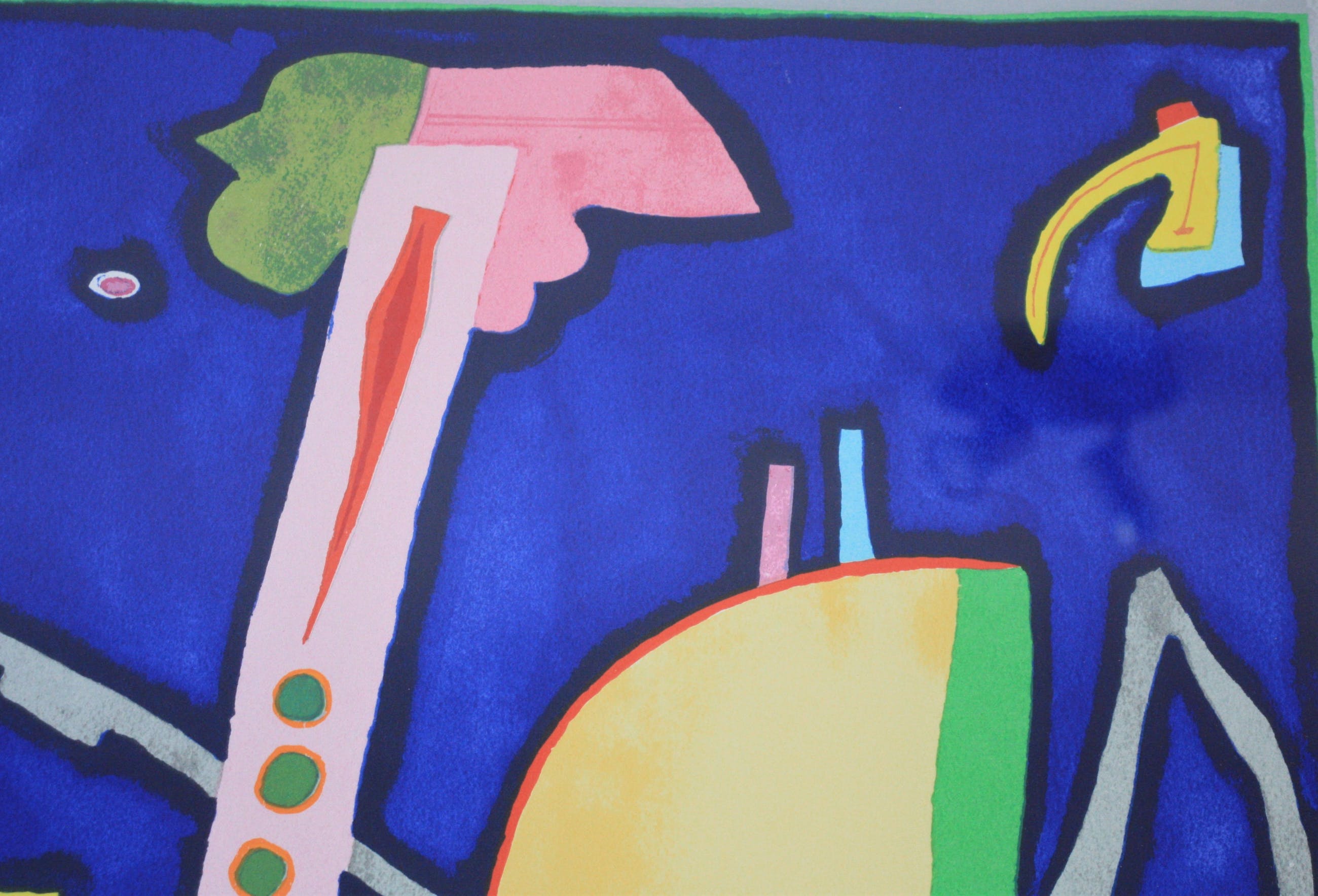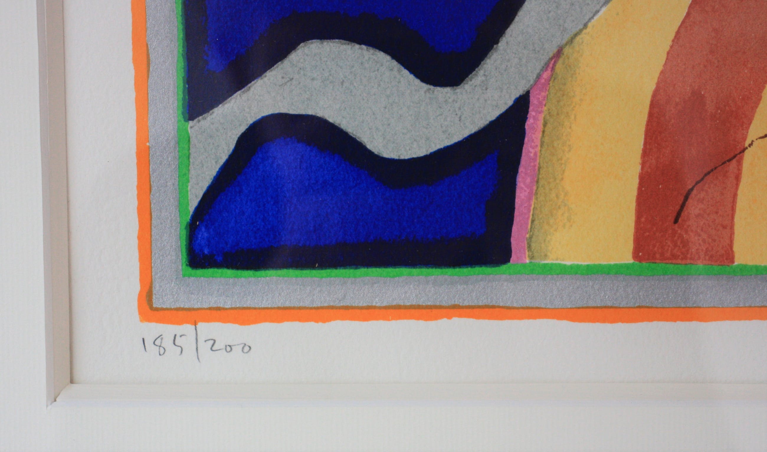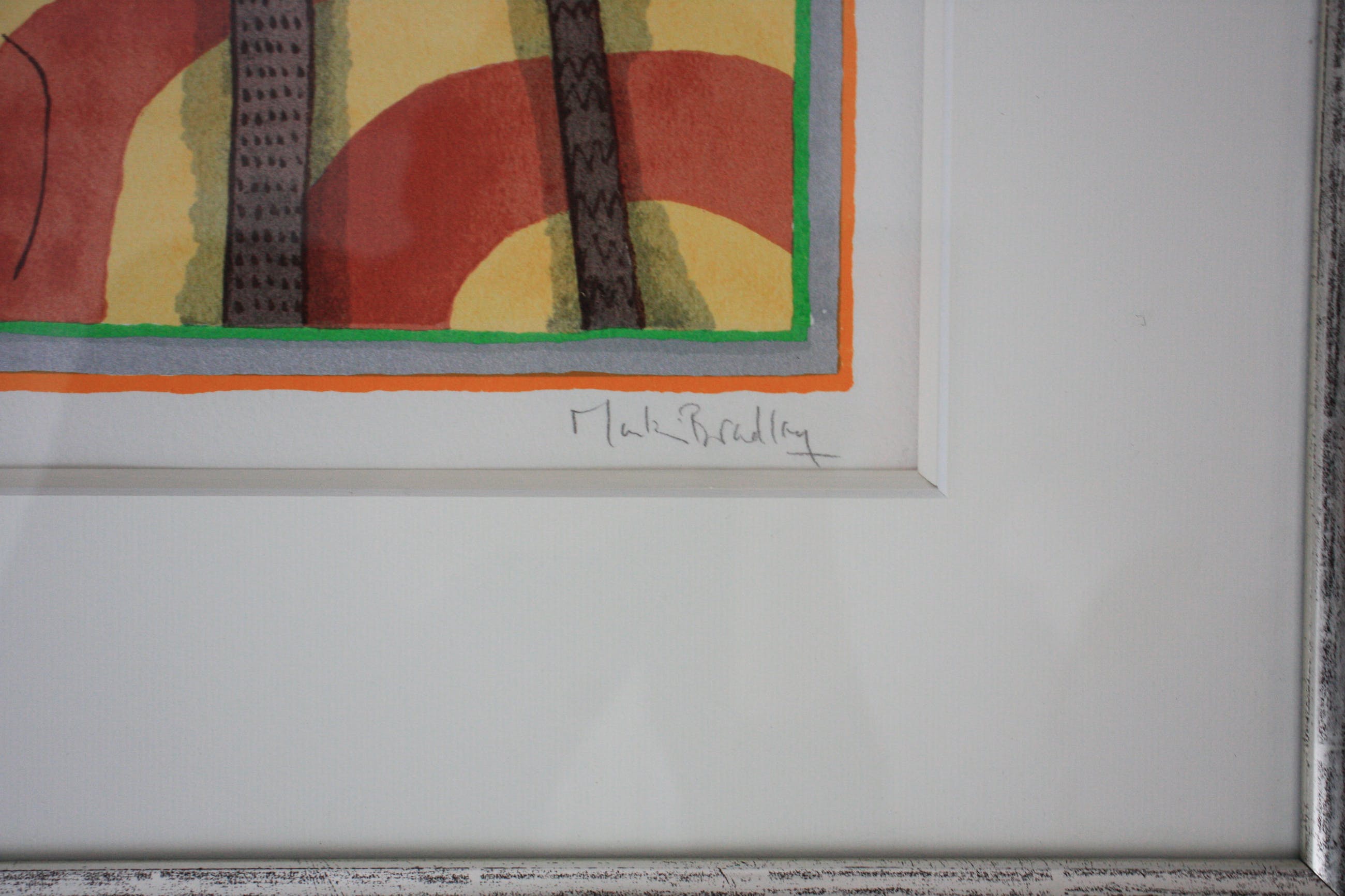 Dit werk is van de Britse kunstenaar Martin Bradley. Op de druk is een abstracte voorstelling te zien. Het werk is in zeer goede staat, rechtsonder gesigneerd en linksonder genummerd 185/200. Het werk is netjes ingelijst in passe-partout en achter glas.