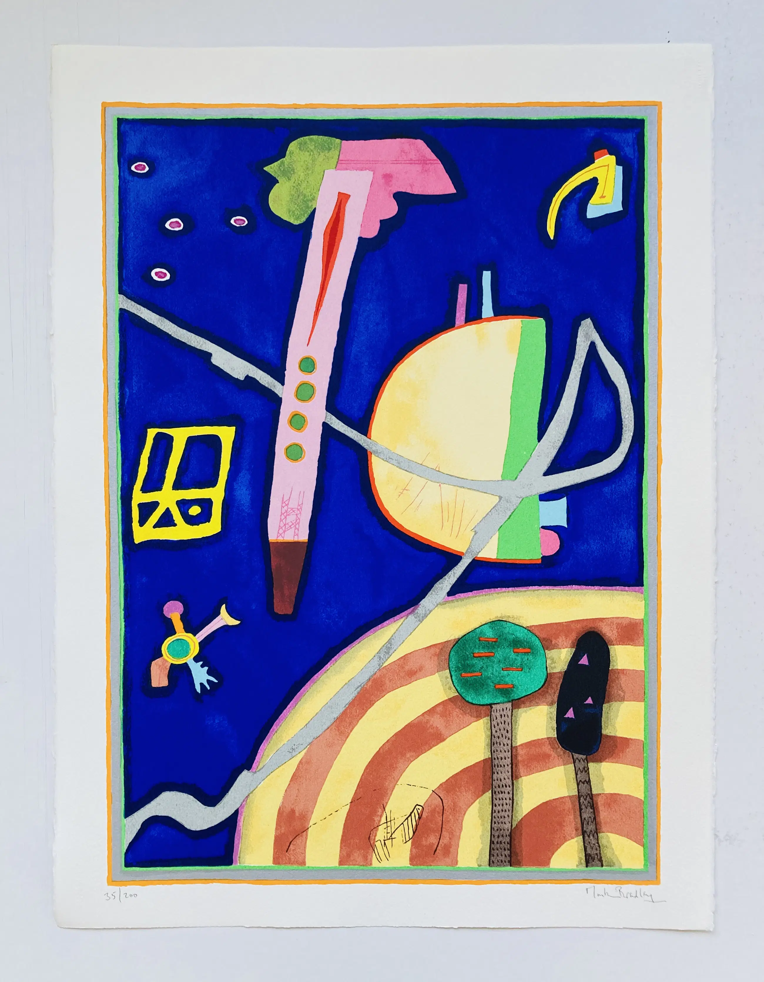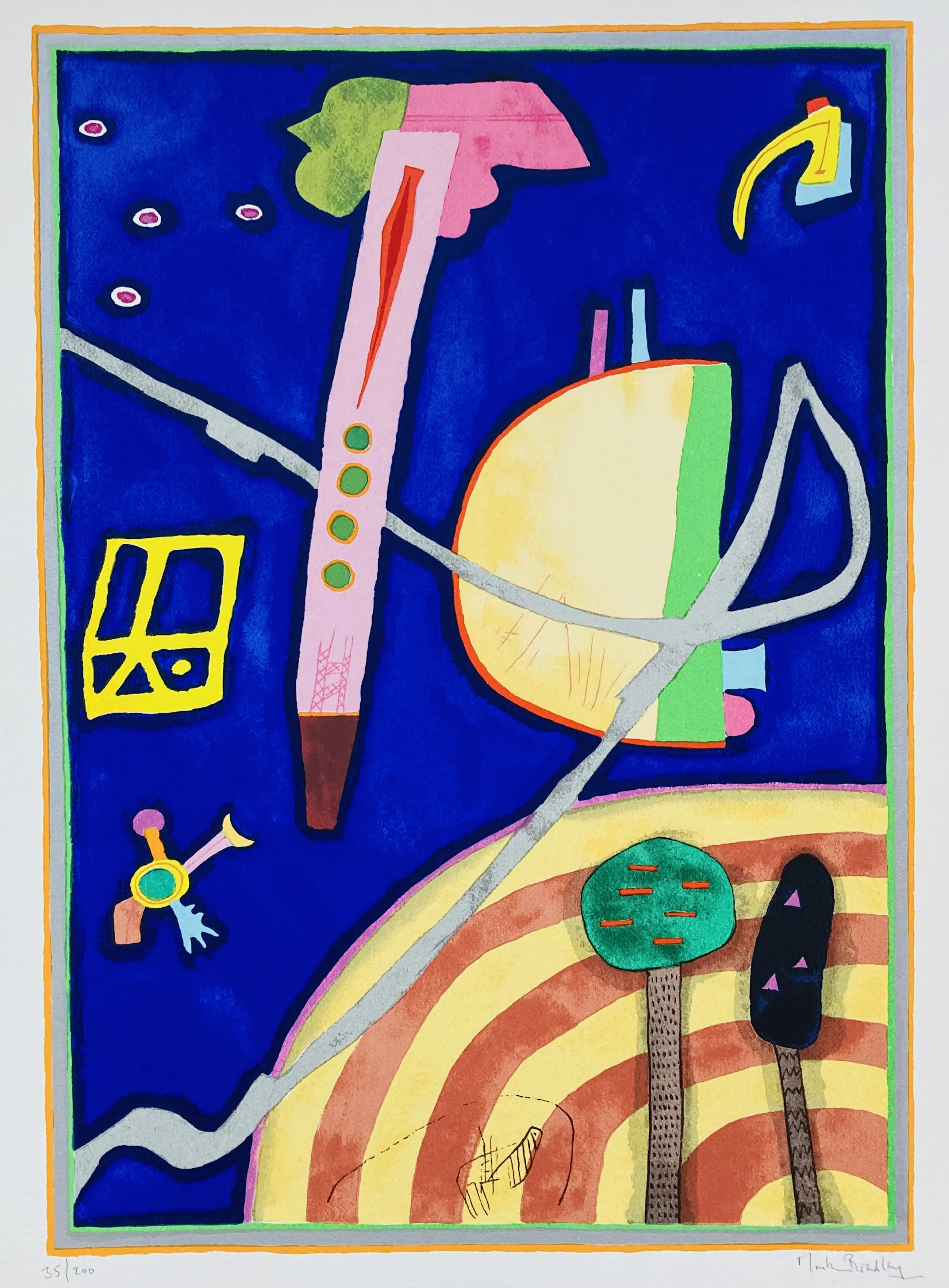 Een prachtige zeefdruk van de Britse kunstenaar Martin Bradley. Het werk verkeert in uitstekende conditie en is handgesigneerd en genummerd door de kunstenaar.