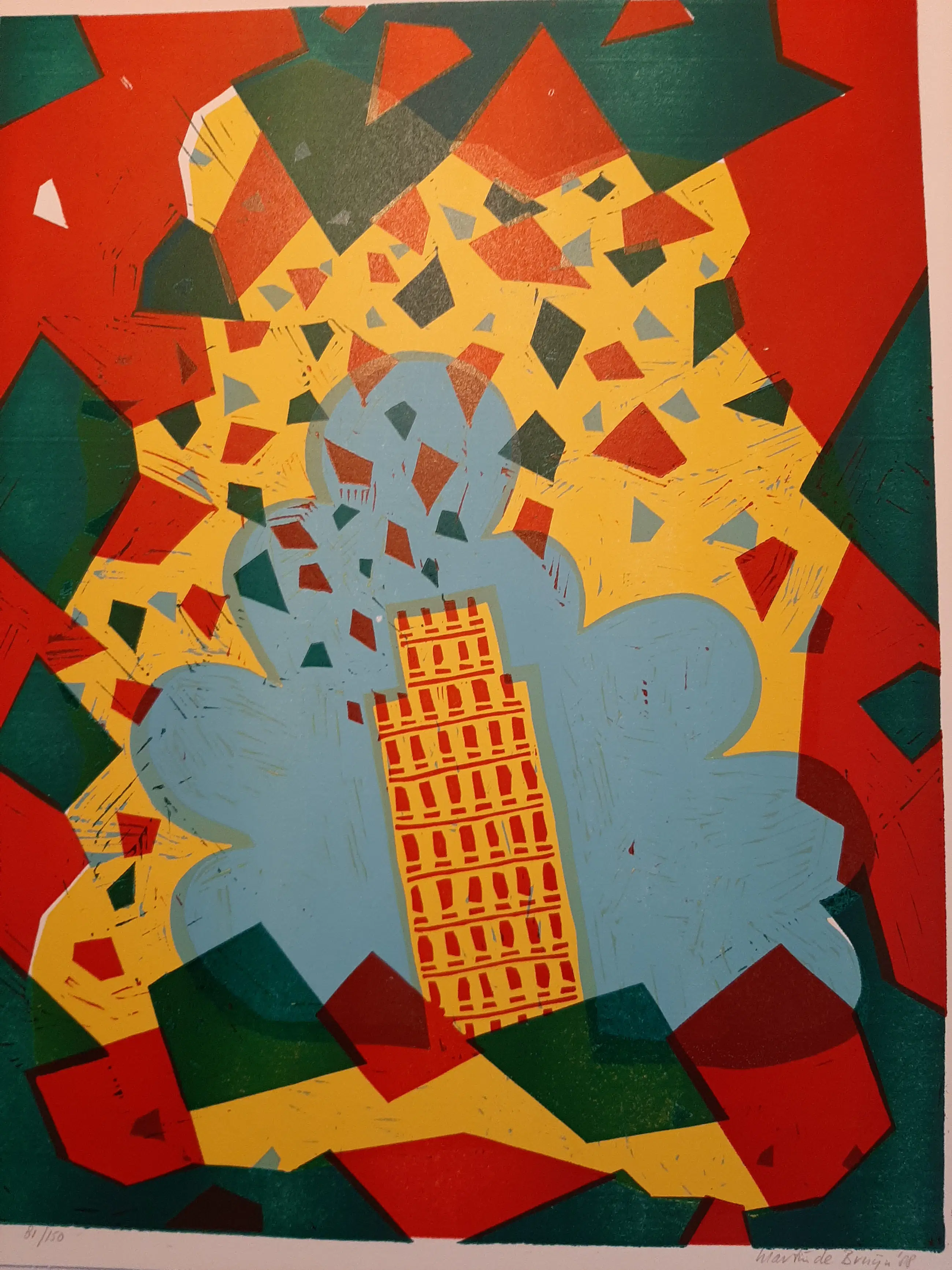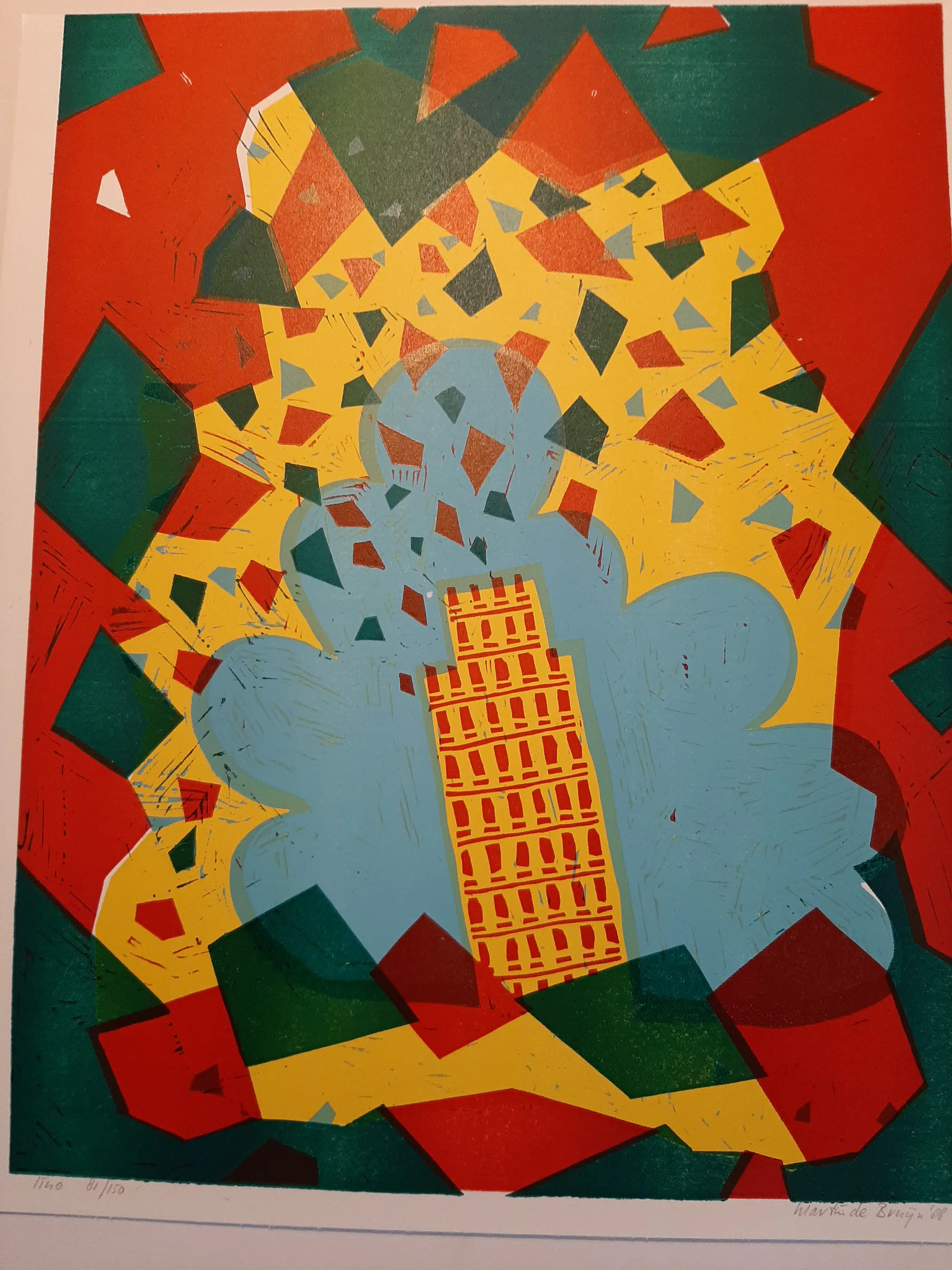 Martin de Bruijn - Litho, Toren van Pisa. uit 1988