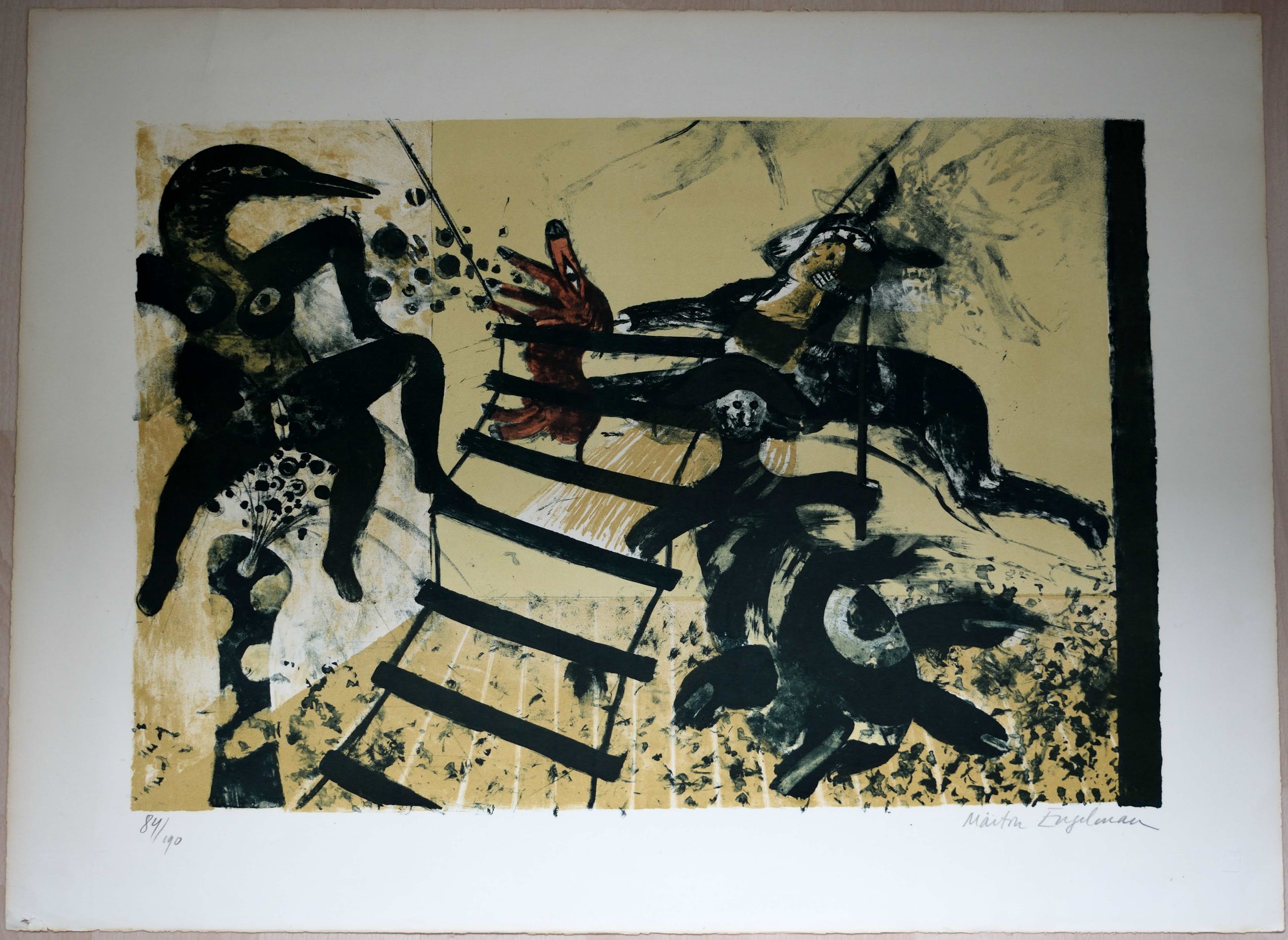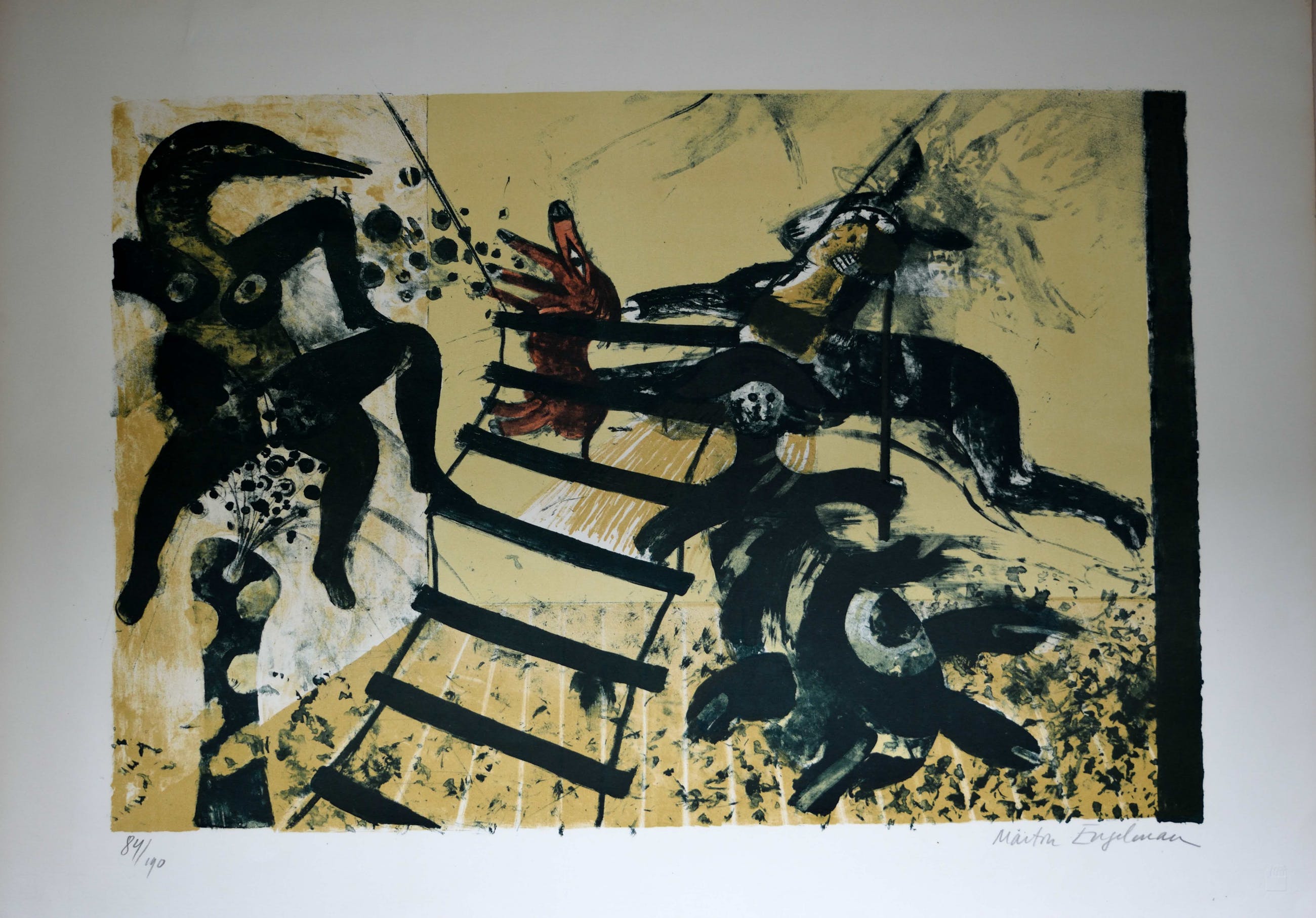 Een grote kleurenlitho uit ca 1965 van de Nederlandse kunstenaar Martin Engelman (1924-1992).