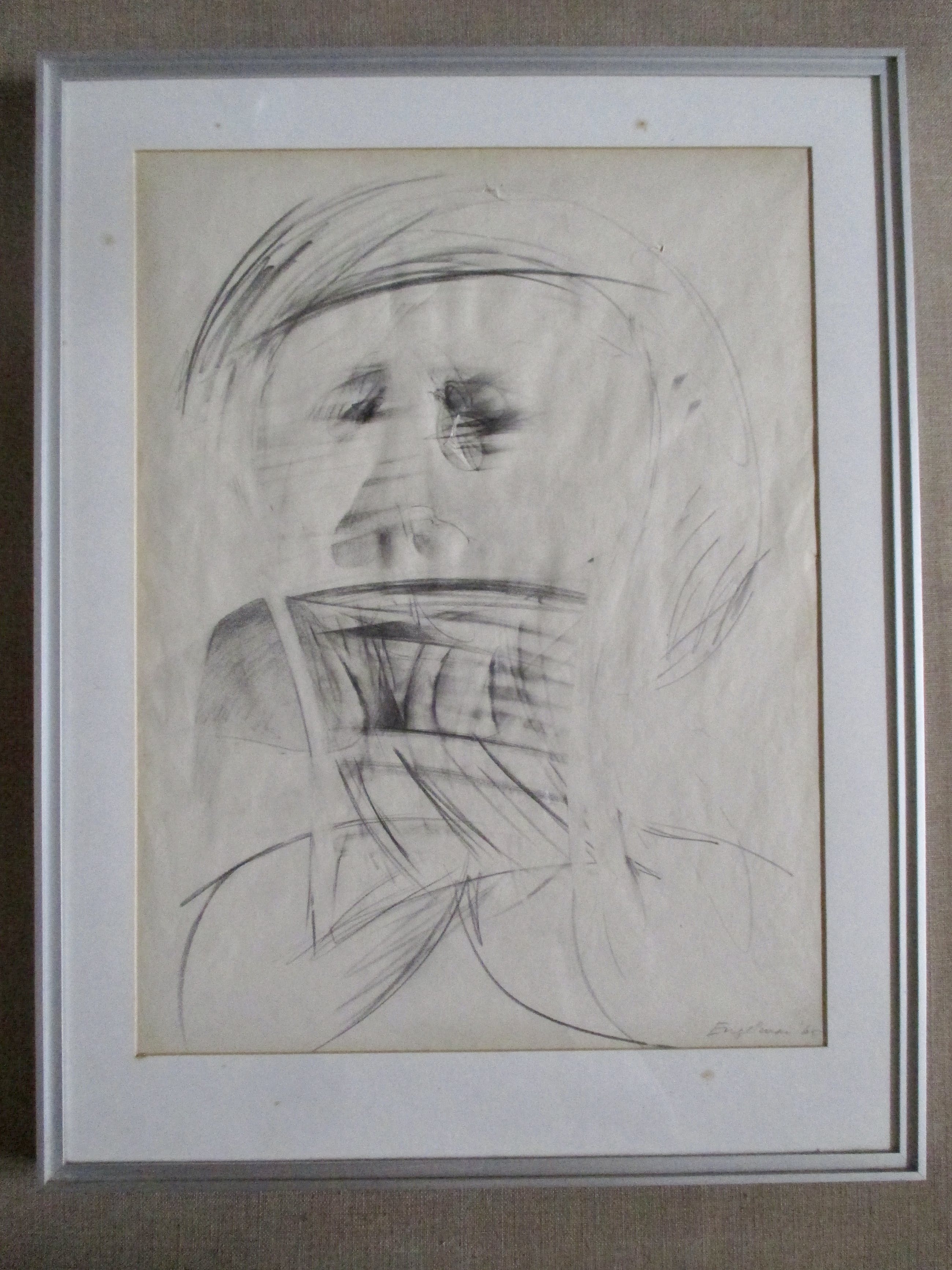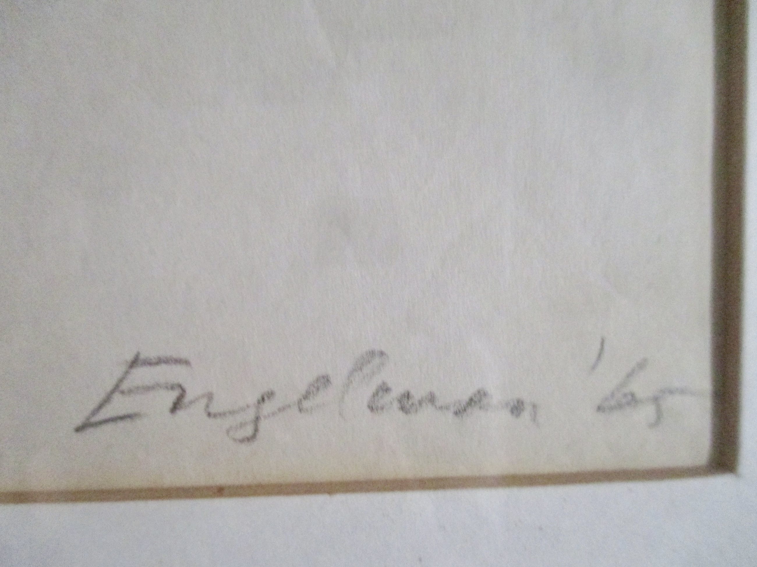 Tekening van martin Engelman, r.o gesigneerd en gedateerd. Ingelijst achter pass-partout en glas in zware aluminium lijst.