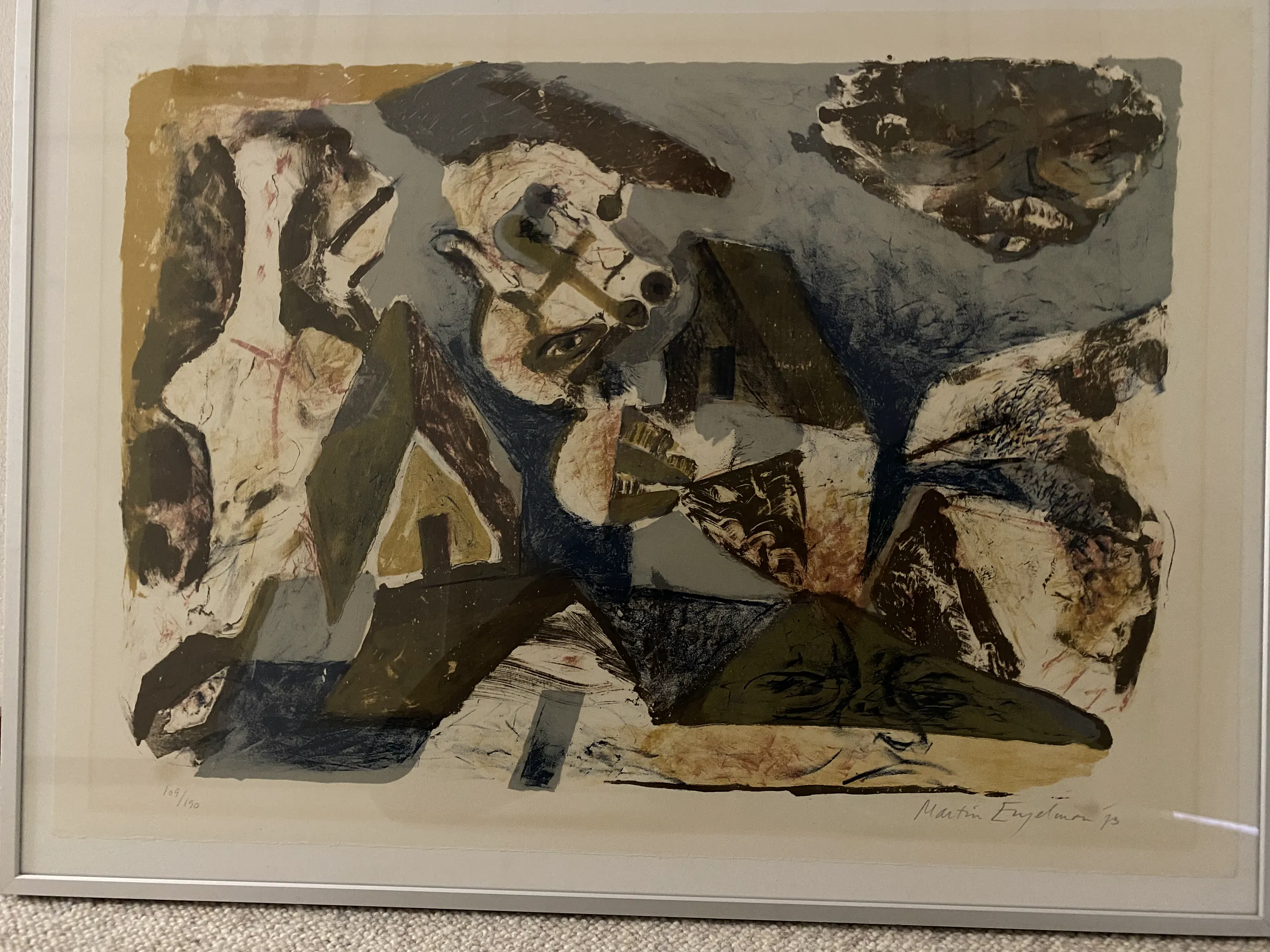 Karakteristiek werk van Engelman. Abstract maar met figuratieve elementen. Je blijft er nieuwe elementen in zien.