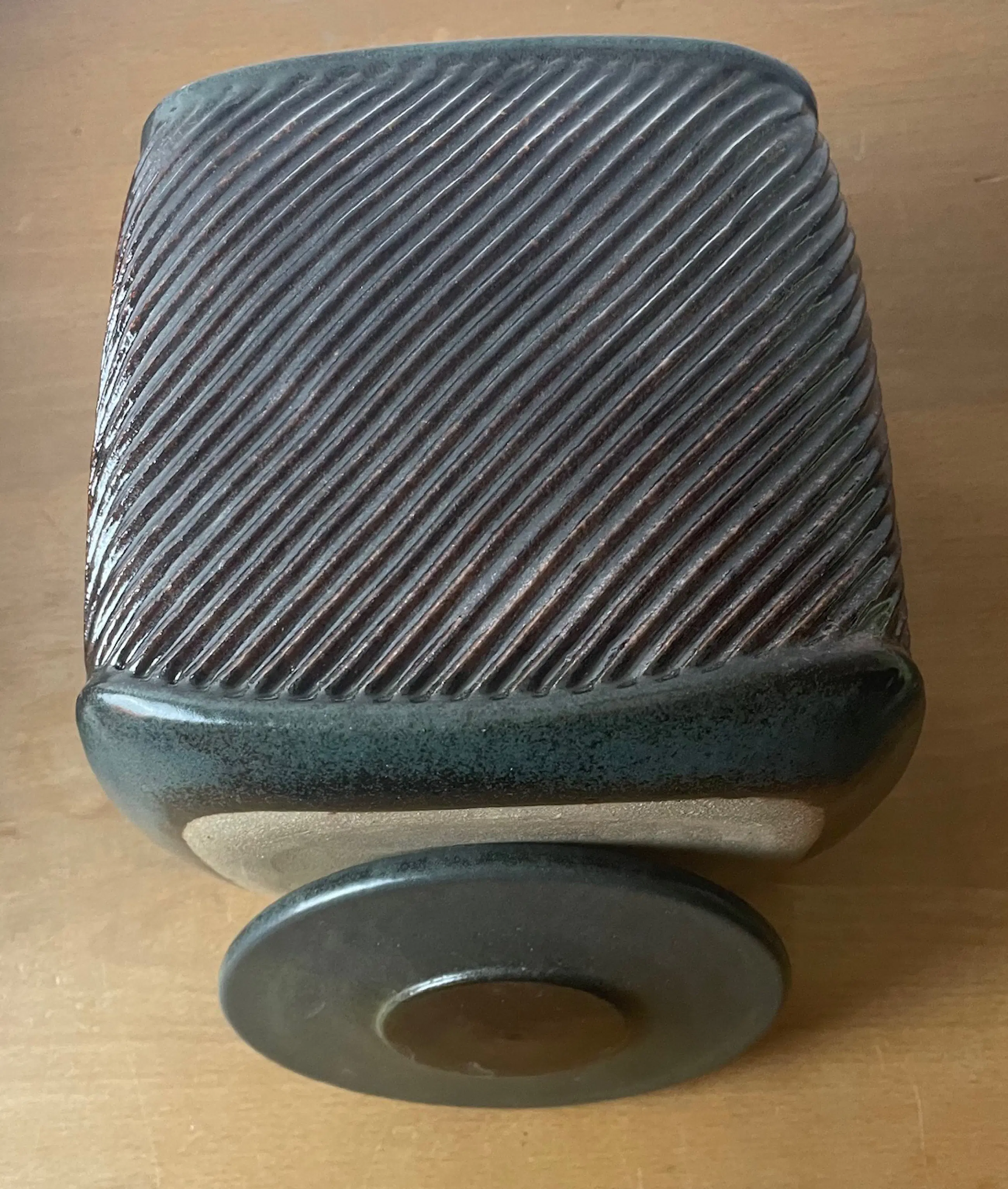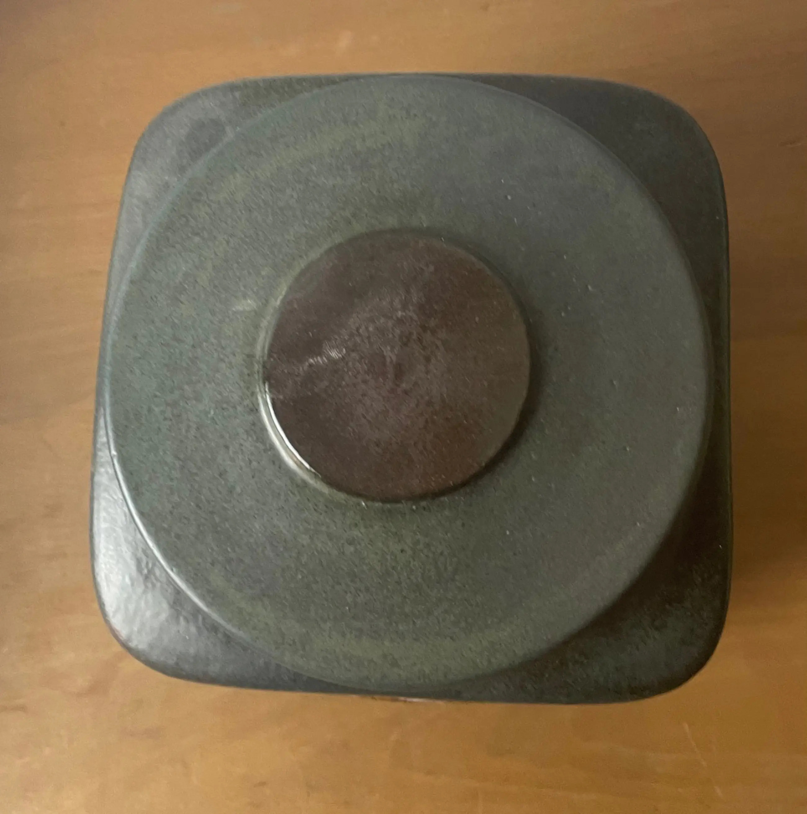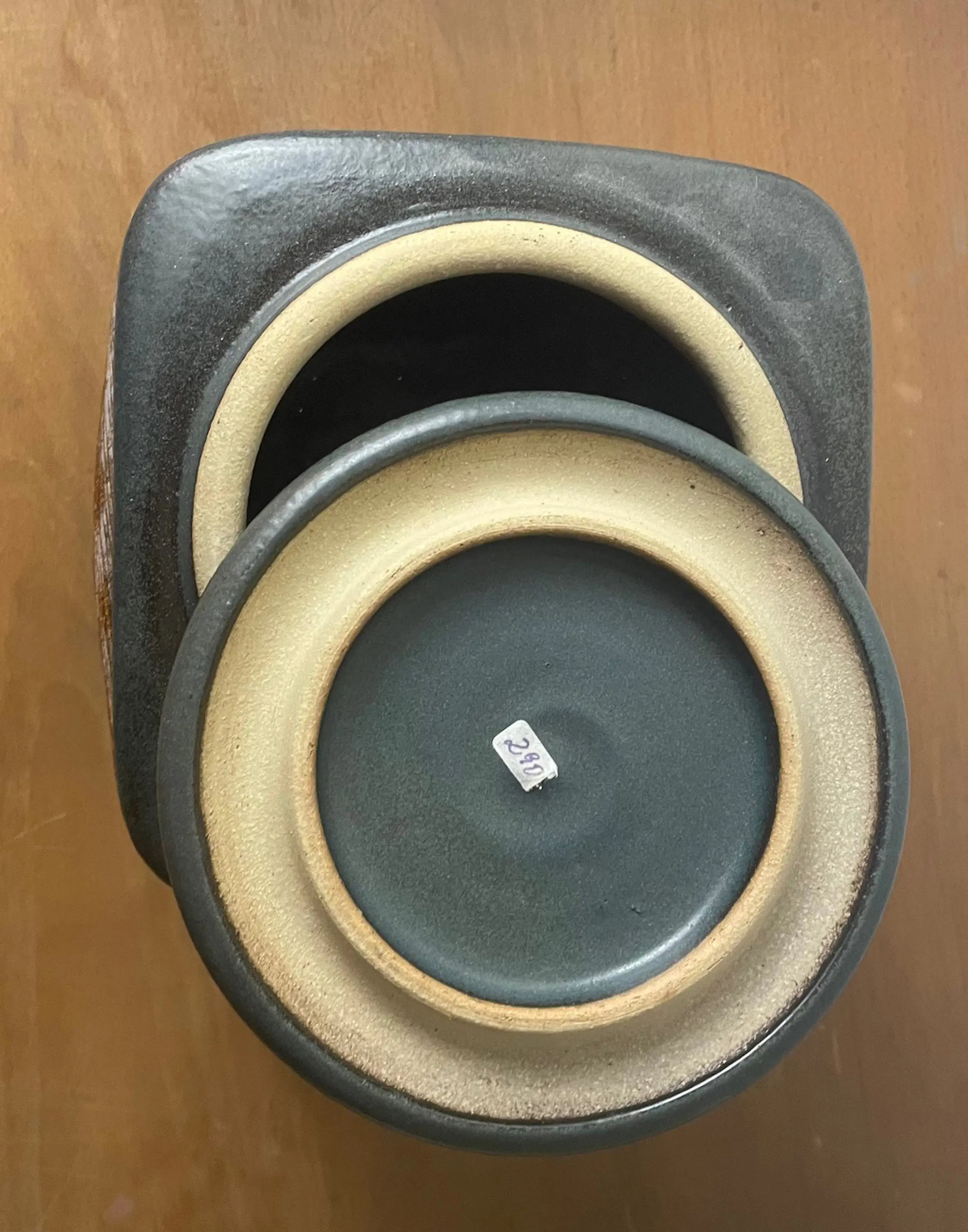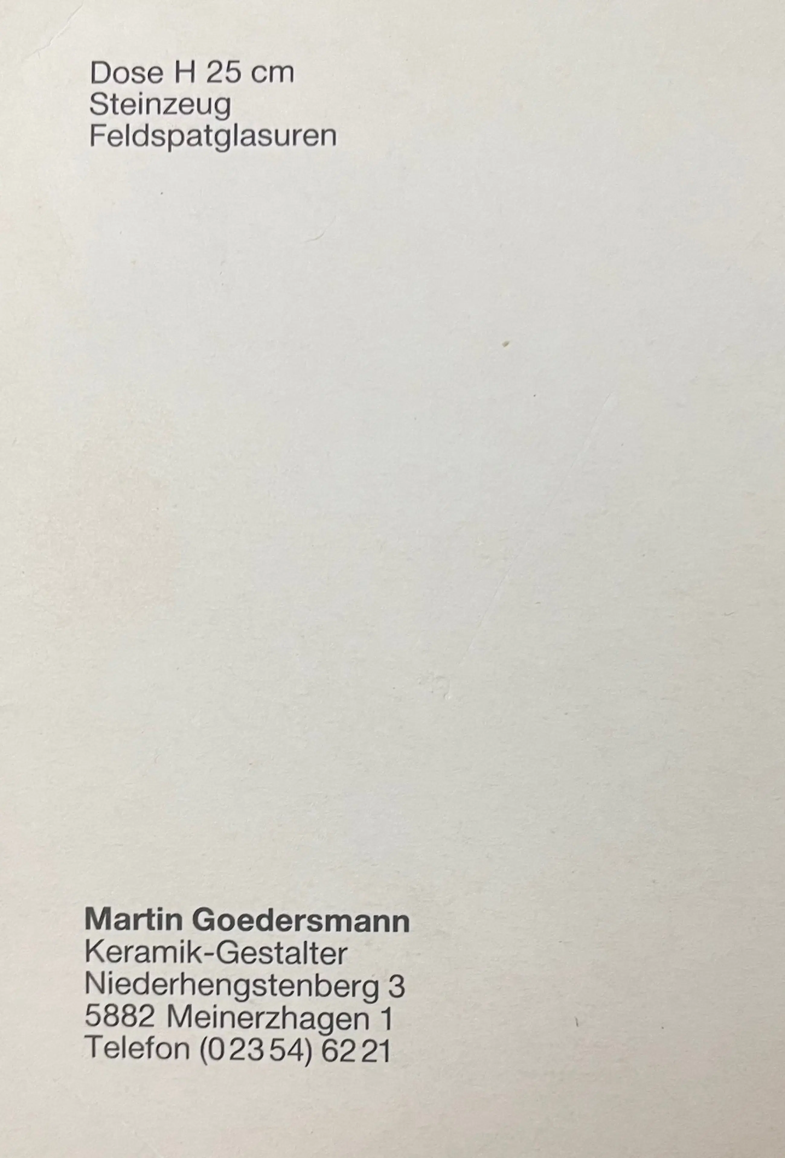 Doos met deksel van steengoed met veldspaatglazuur, Ontwerper Martin Goedersmann, geboren in 1956 Uitstekende staat!