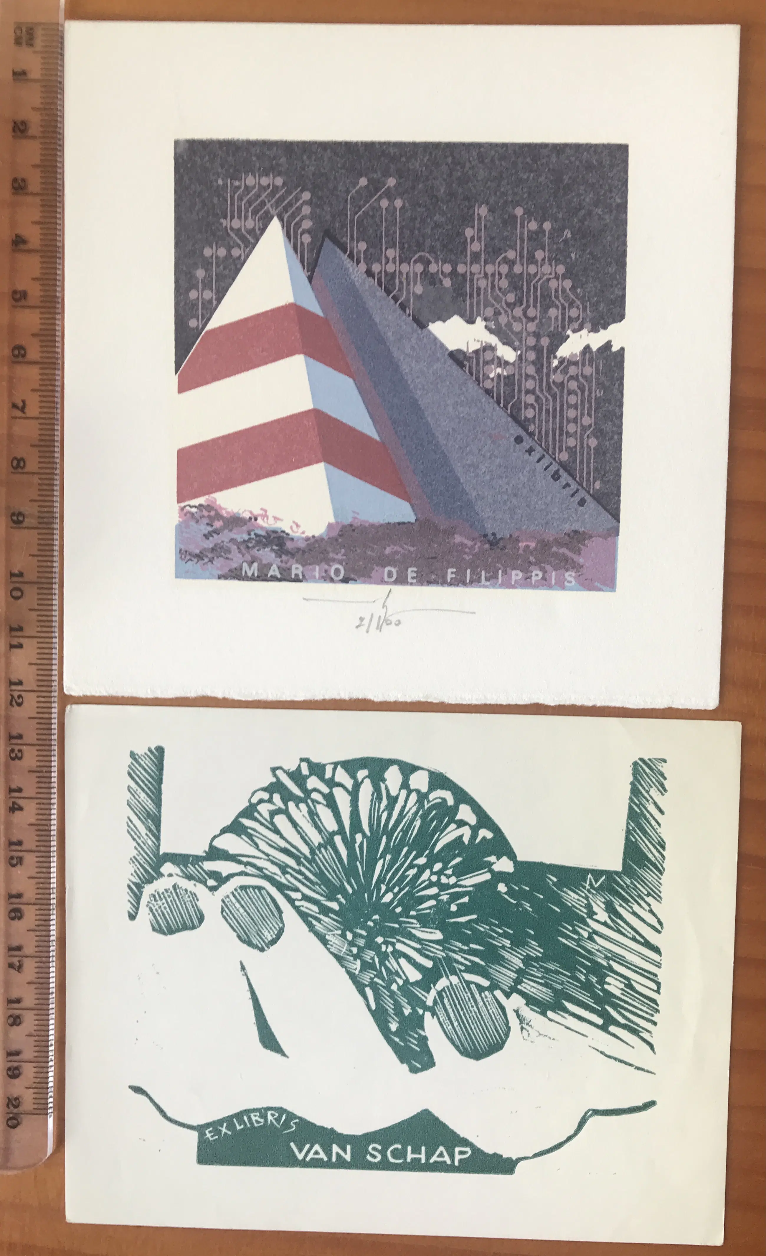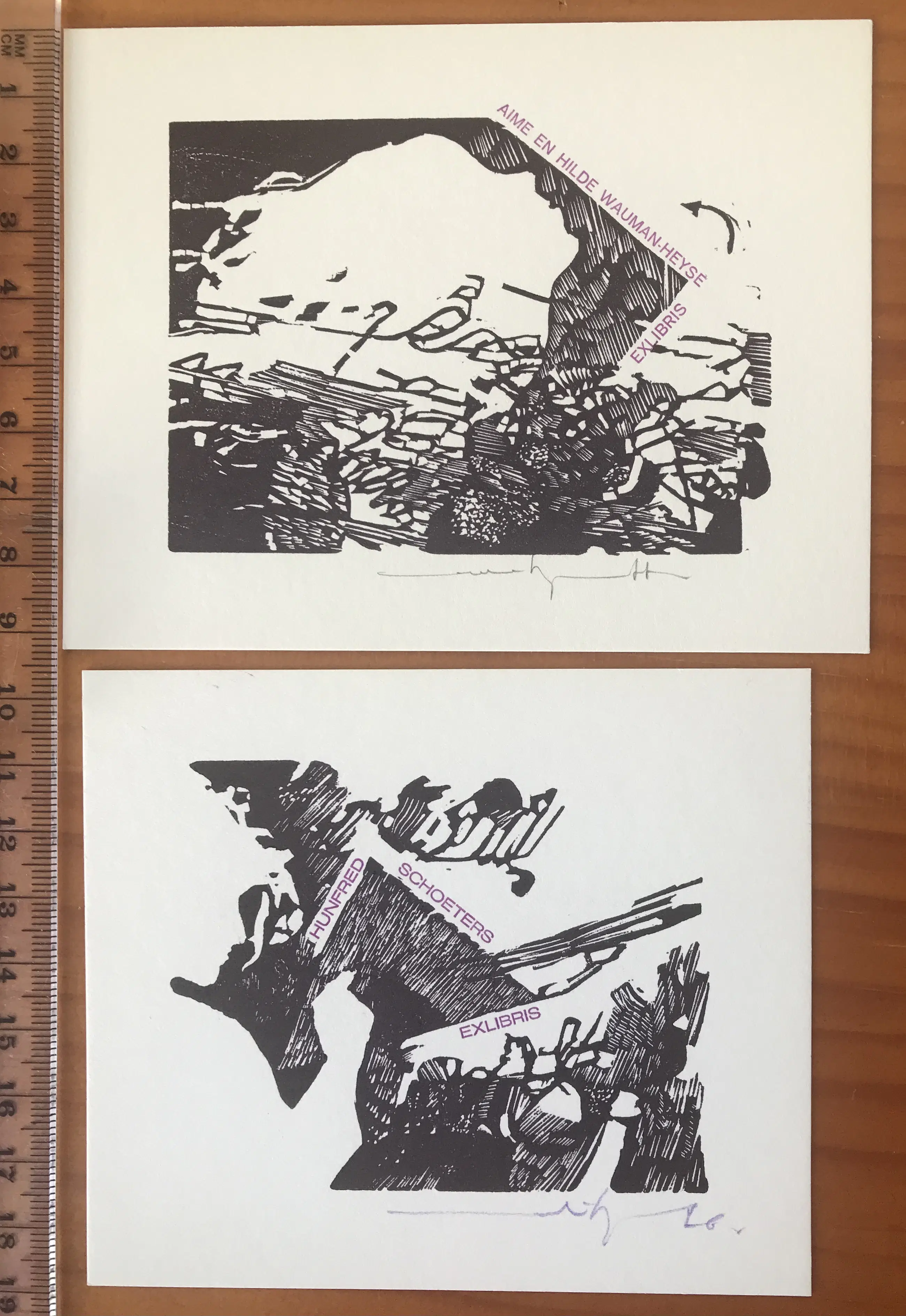 Lot van 16 ex-libris en gravures van de Belgische kunstenaar Martin Baeyens. 15 ex-libris zijn met potlood met de hand gesigneerd.