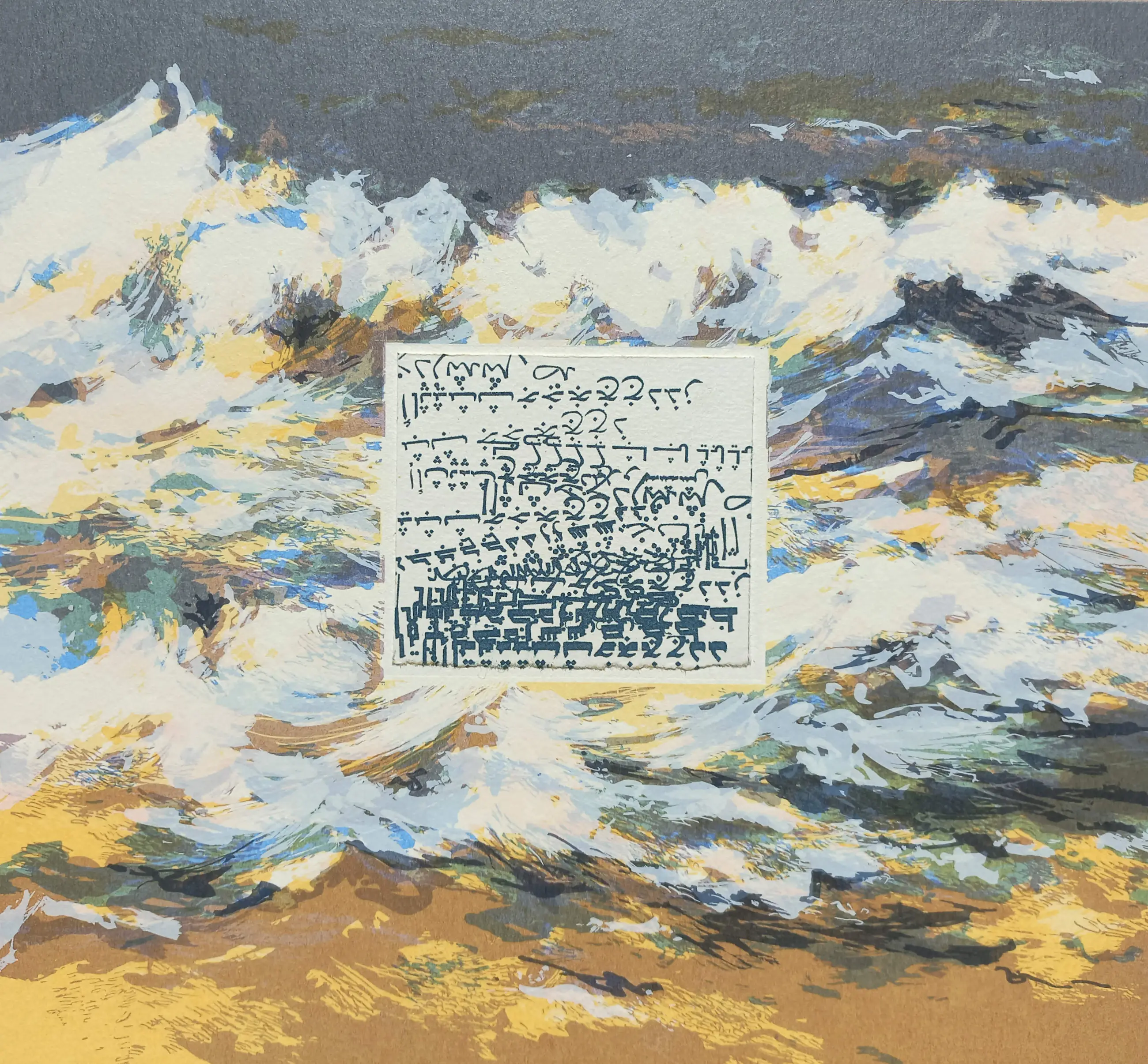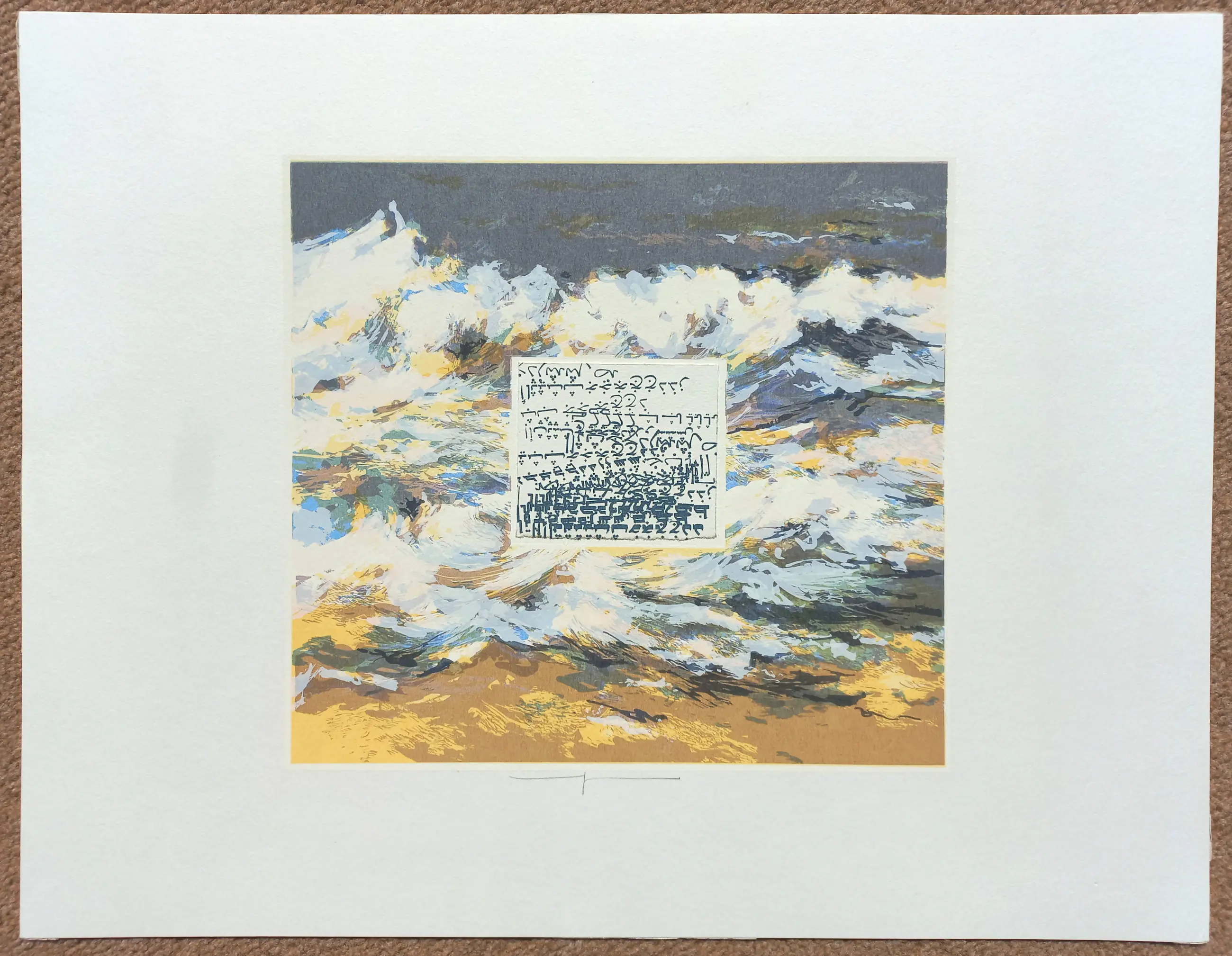 Zeer mooi werk van Martin Baeyens uit 1991. Gemengde druktechniek met collage op geschept papier, met potlood gesigneerd. In zeer goede conditie.