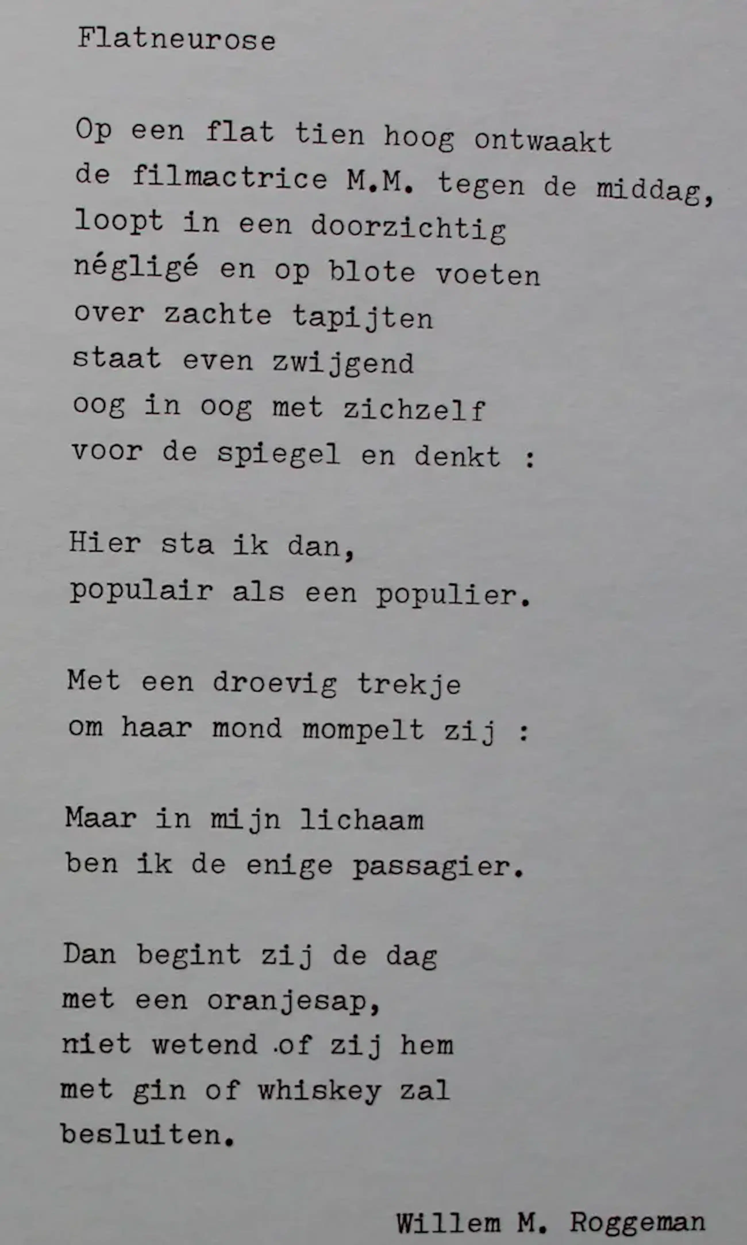 Zeefdruk van Martin R. Bayens, met een gedicht van Willem M. Roggeman. Jaar: 1976. Titel: Flatneurose. Oplage: 25/200. Afmetingen blad: H30 x b24cm. Afmetingen voorstelling: H26.5 x b20cm. Het werk is rechts onderaan gesigneerd door de kunstenaar. De authenticiteit van het, aangeboden, werk wordt volledig gegarandeerd. Een certificaat van echtheid kan, op aanvraag, worden gemaild.