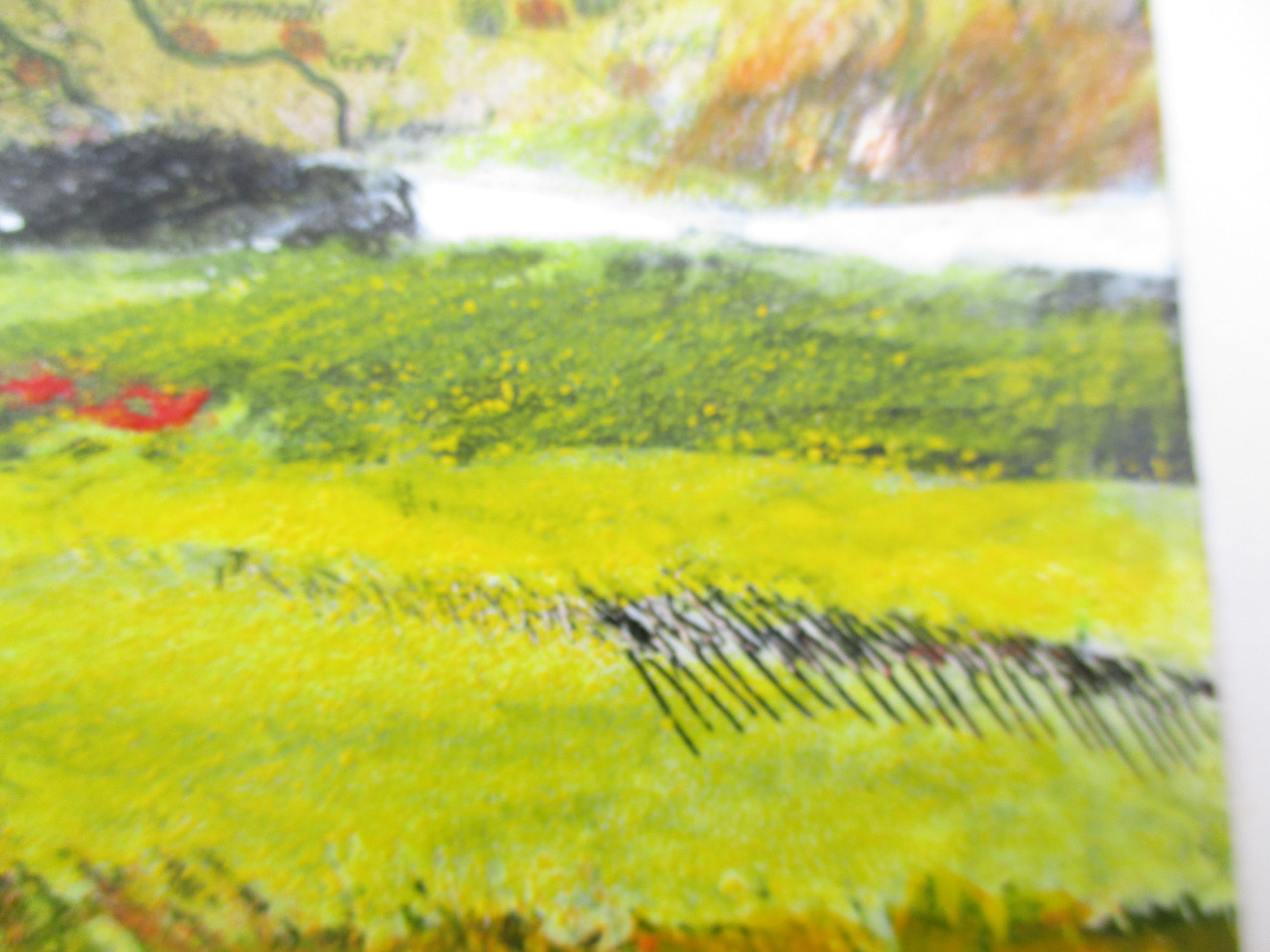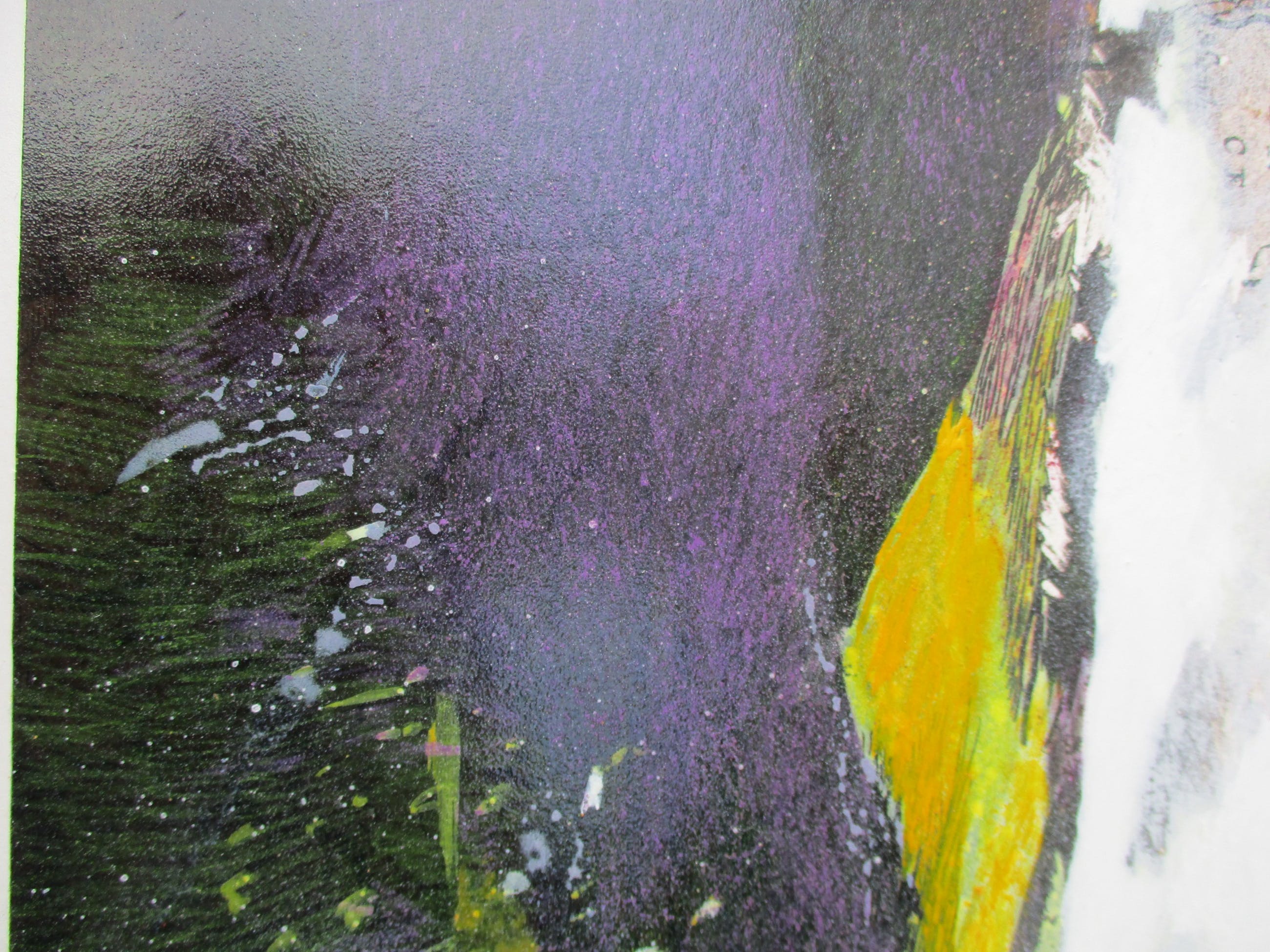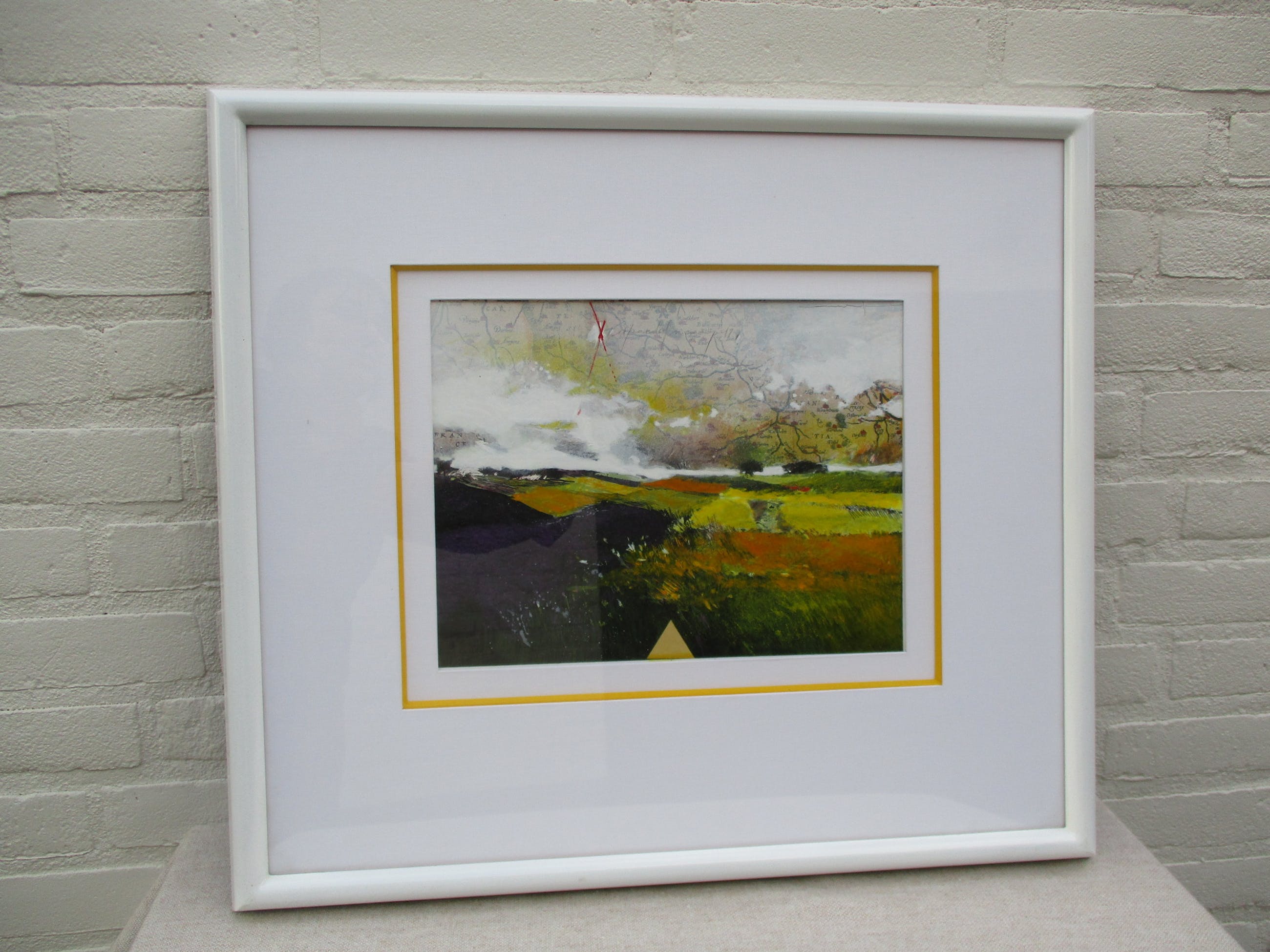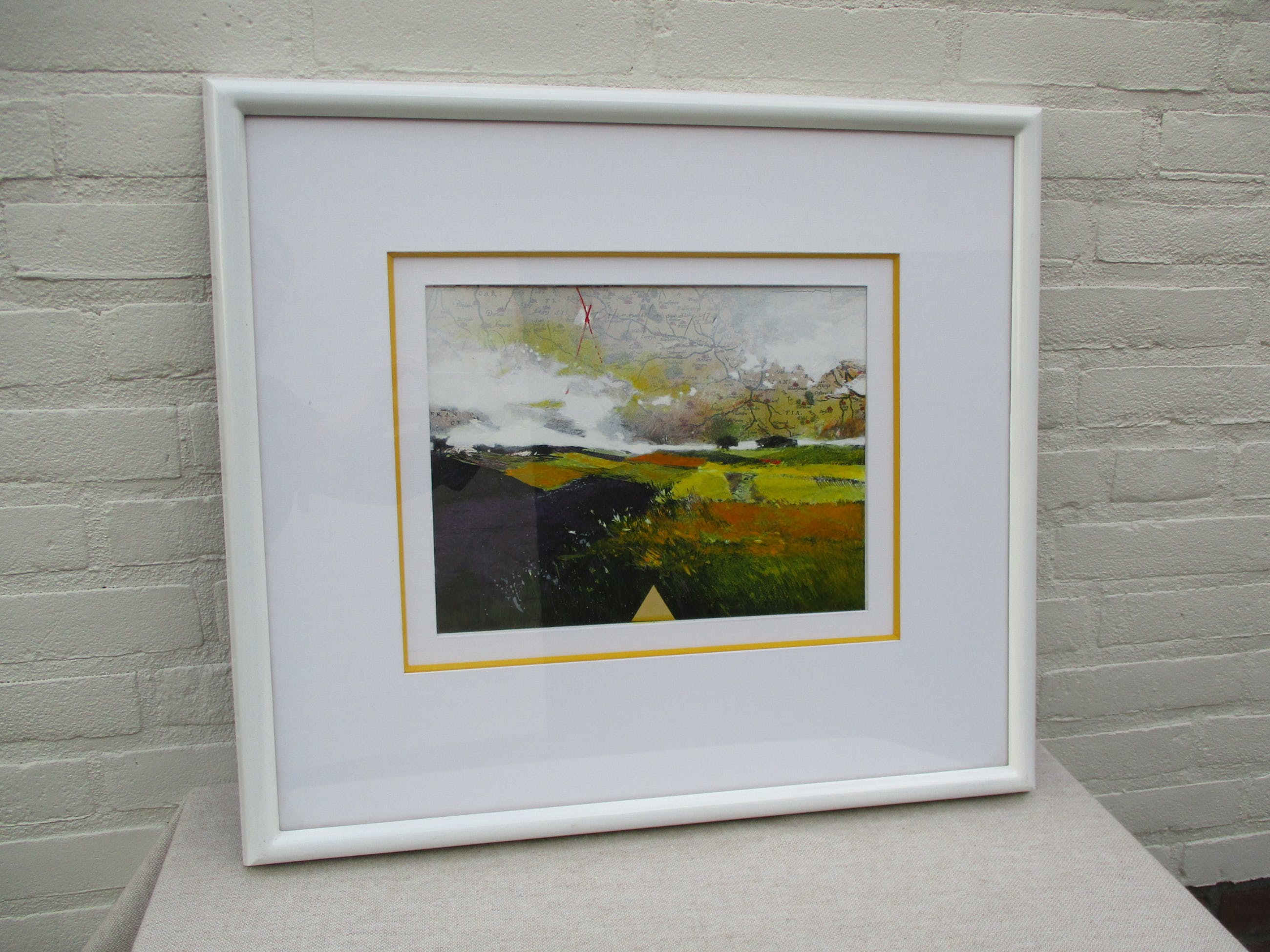 Dit originele werk is rechtsboven gesigneerd. In dit werk is met acrylverf en andere technieken gewerkt. Het werk is mooi ingelijst met een dubbele passepartout.