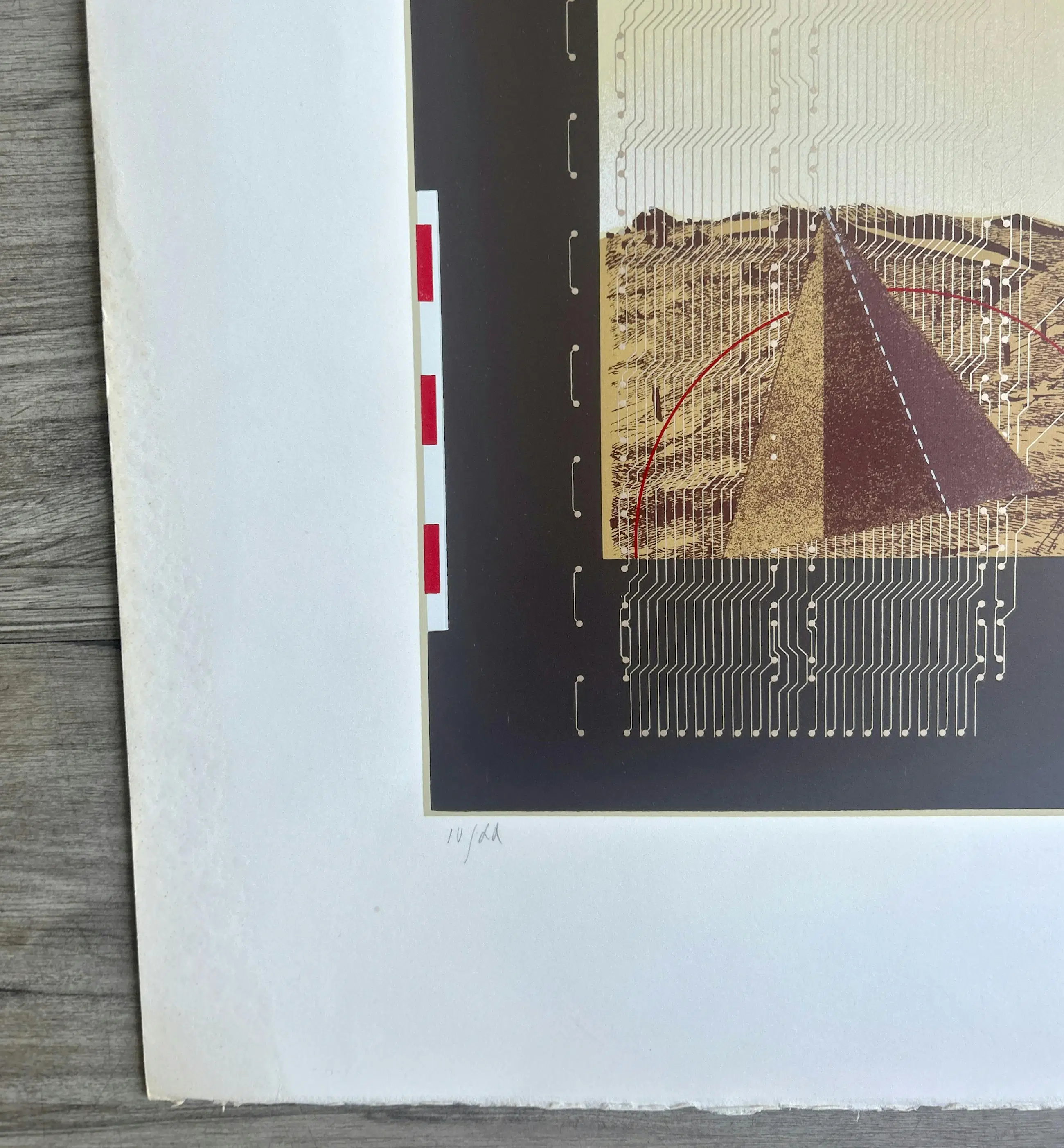 Conditie: zeer goed. Vel heeft vlekjes en verkleuring en deuk in afbeelding, zie foto's. Oplage: IV/XX. Afmeting: afbeelding 40 x 40 cm. Wordt verzekerd verzonden in een stevige kartonnen koker.