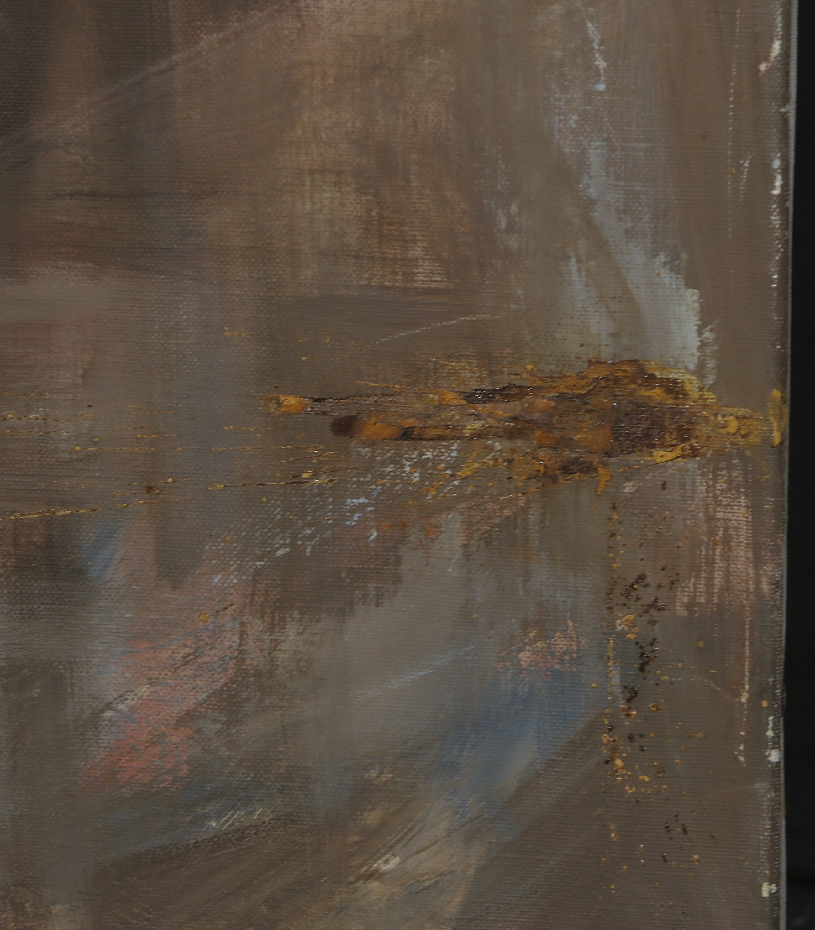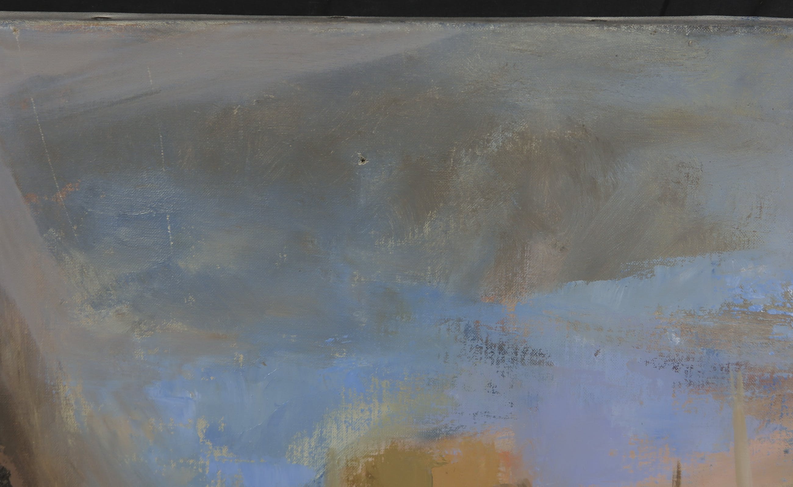 | Het werk heeft een aantal lichte beschadigingen: waaronder bovenin een gaatje in het doek en wat oppervlakkige krasjes op de verflaag (zie verder de foto's) | |